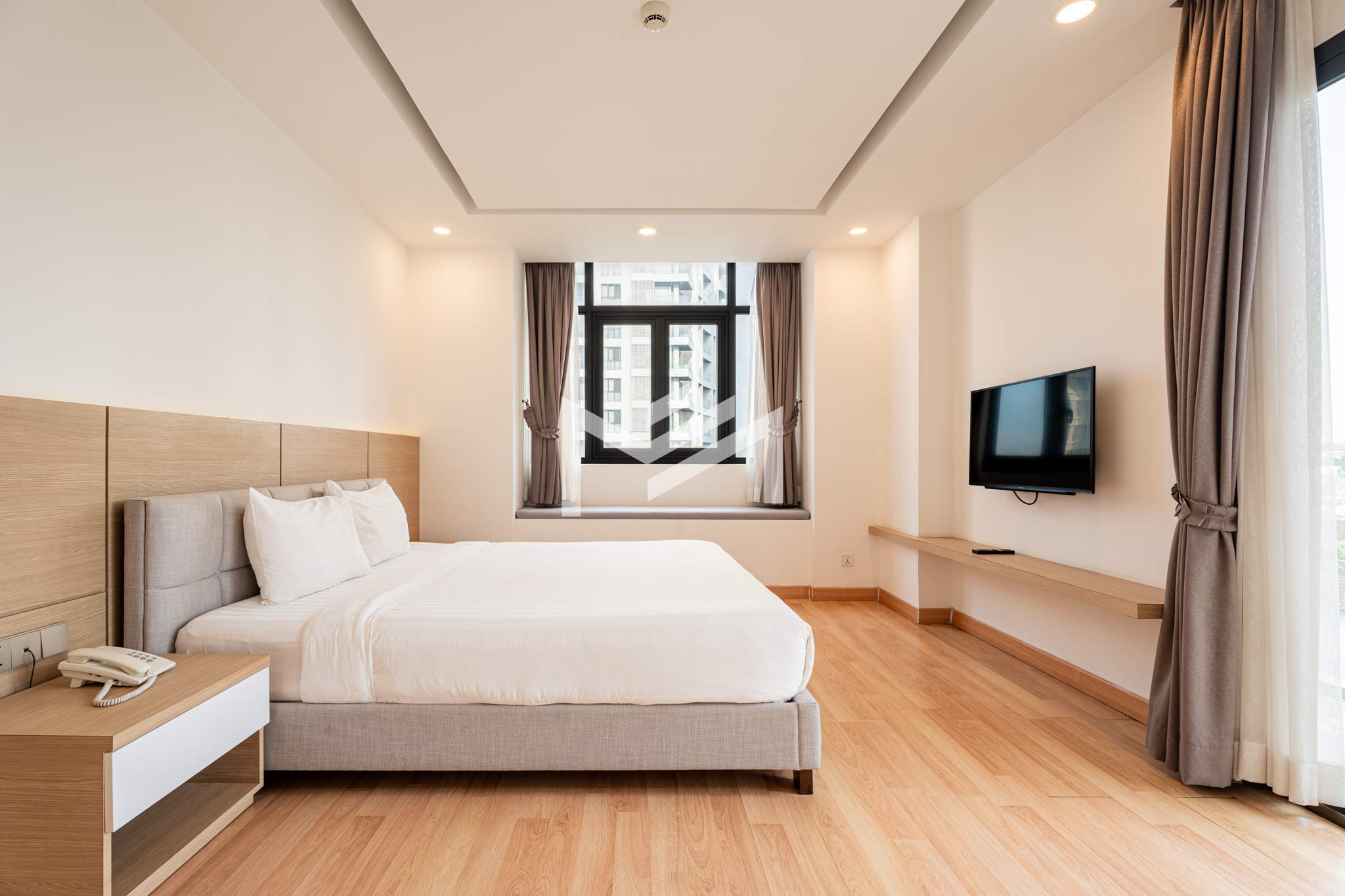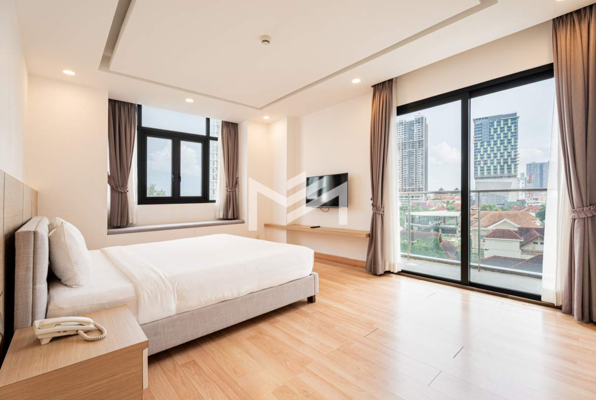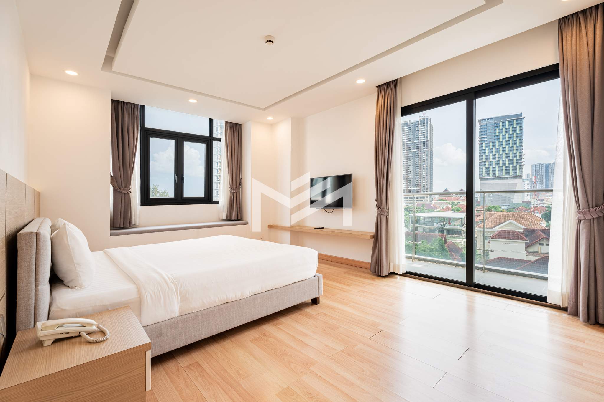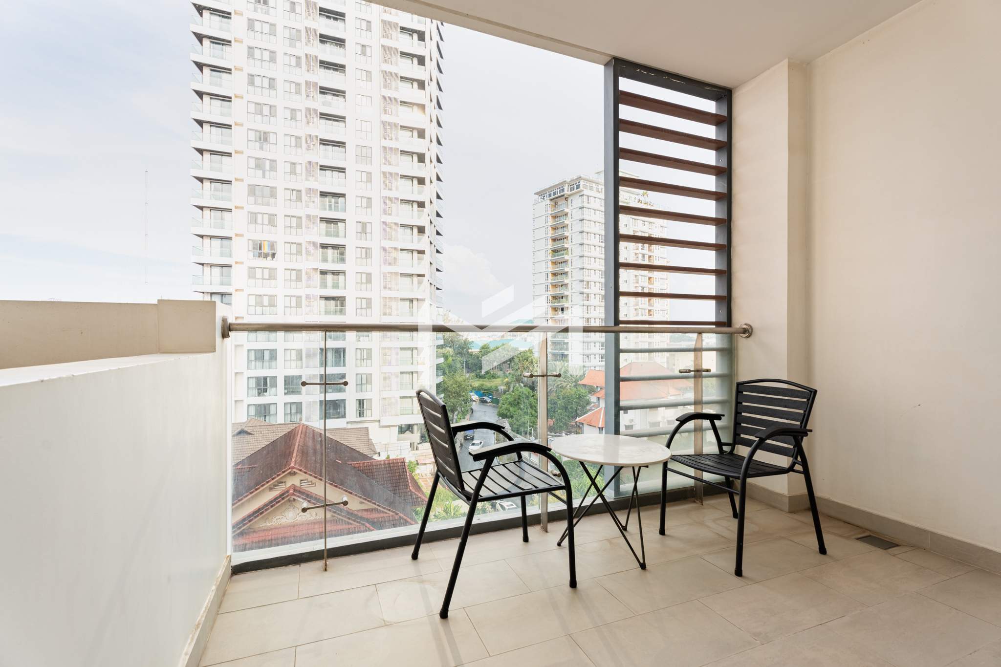 Cozy and bright unit featuring an open kitchen with a built-in oven, a private balcony with a patio, a good-sized bedroom, and a bathroom with an overhead shower. Perfect for a single, couple, or small family.Residents benefit from rooftop facilities including gym, swimming pool, and concierge service. Located in a peaceful residential area just off Norodom Boulevard, the neighborhood is quiet yet convenient, south of BKK1 and close to several embassies such as the Embassy of Malaysia, Embassy of Japan, and the Royal Thai Embassy.