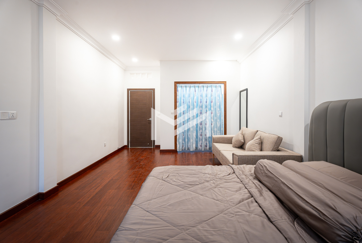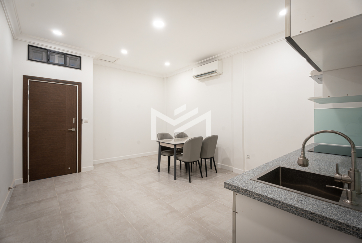 Renovated apartment in a townhouse-style property with ground-floor retail space and two apartments on each upper floor. This back-unit layout is available on the Ground Floor, 1st Floor, and 2nd Floor, all with the same setup. Fully furnished and move-in ready, located in a convenient and central area in South BKK1. Internet and cleaning are included; utilities are paid separately. An affordable and comfortable living option in one of the most desirable neighborhoods in Phnom Penh.