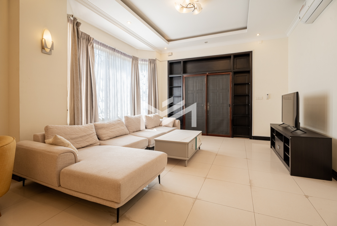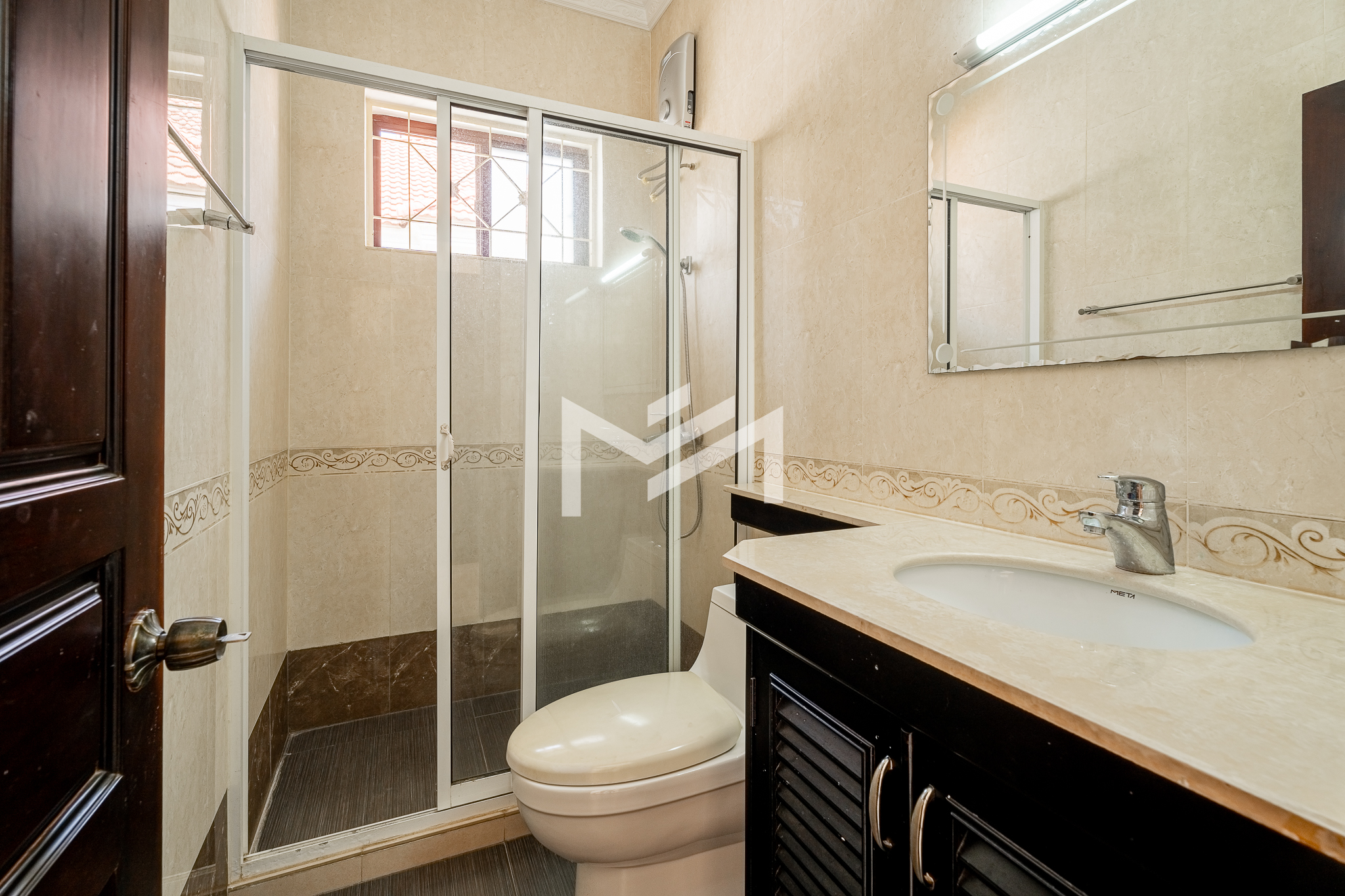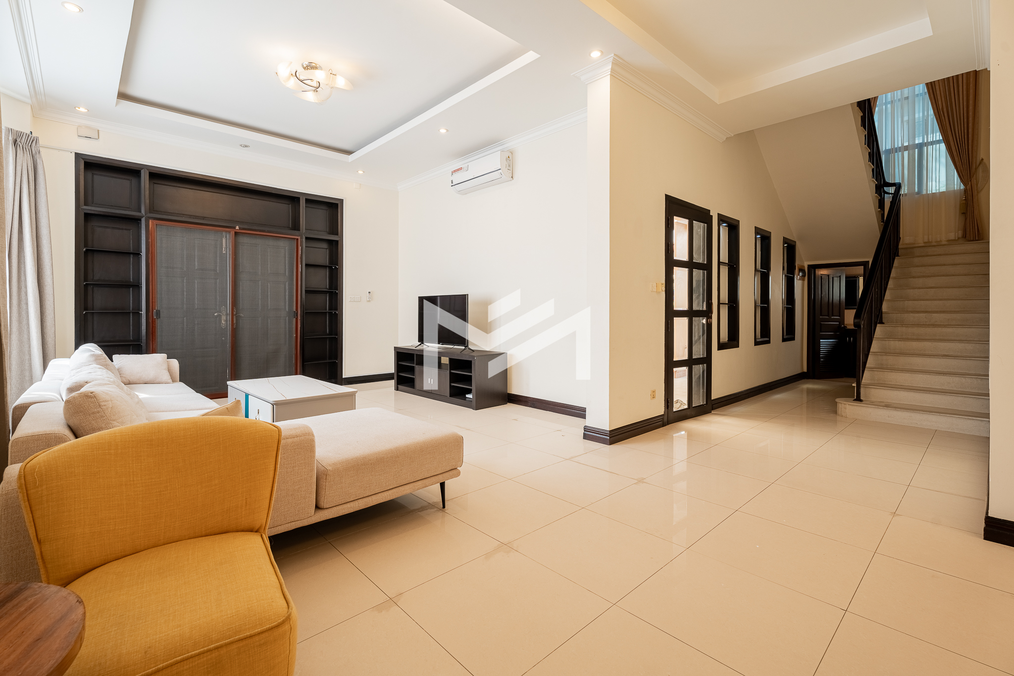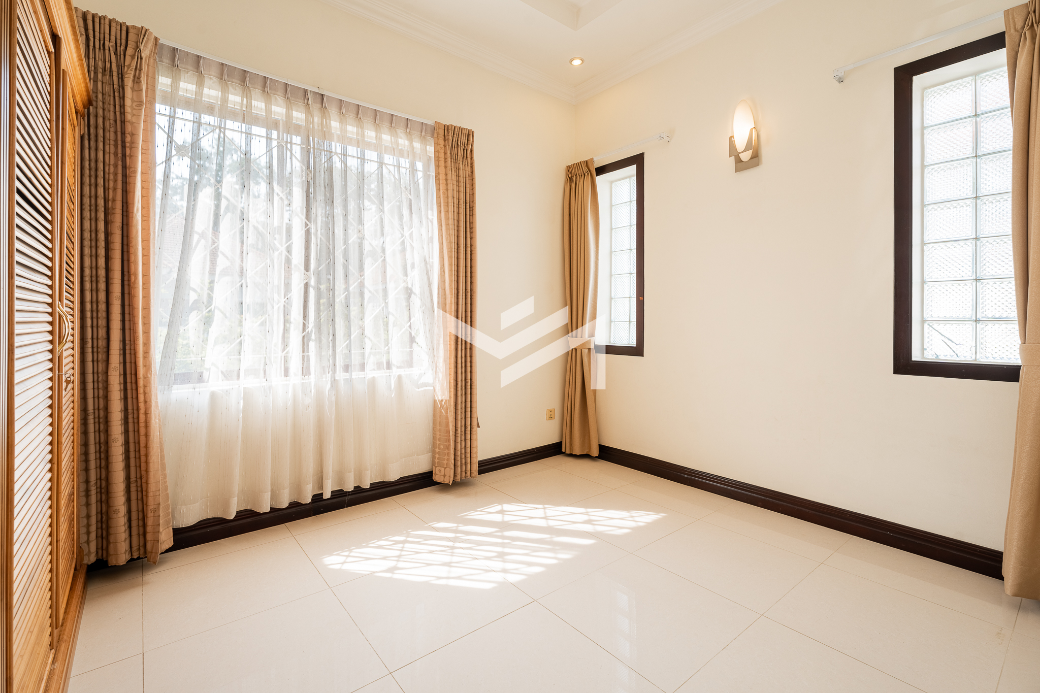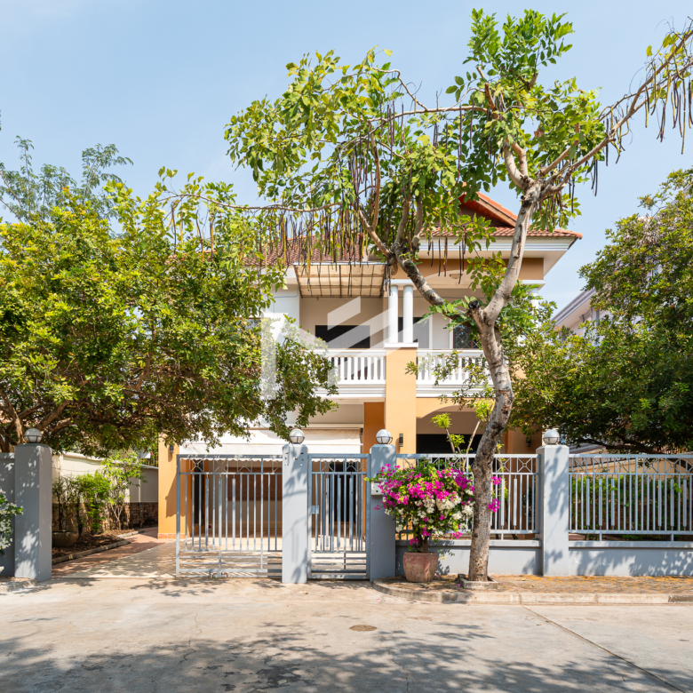 Typical classical standalone villa located in the gated community of Bassac Garden City, one of the rare opportunities to own or rent a standalone villa in the city center. The ground floor offers an open and welcoming layout for the living and kitchen areas, ideal for family living and entertaining. A separate helper’s room with its own toilet is located outside, ensuring privacy and functionality. All four bedrooms are situated on the first floor, providing a clear separation between living and resting areas. The villa comes fully furnished and is located within a safe and secure compound with 24-hour security. The community features quiet internal roads, perfect for children to play safely and for families to connect with neighbors in a peaceful environment. With convenient access to retail outlets within the same community and an excellent central location near AEON Mall Phnom Penh, this villa offers both comfort and prime city living.