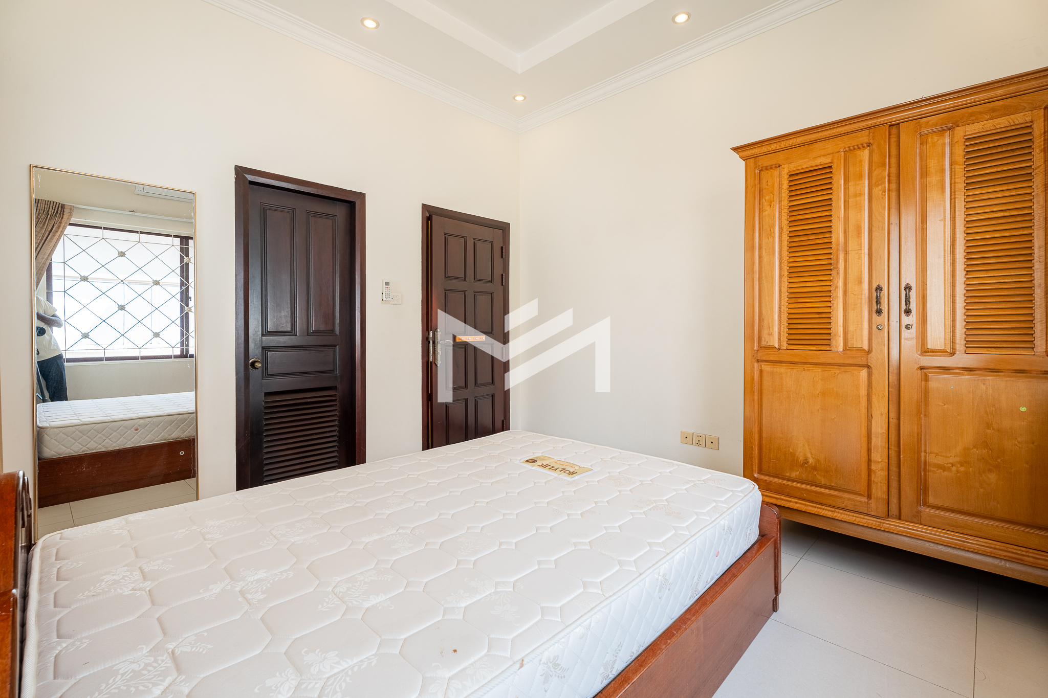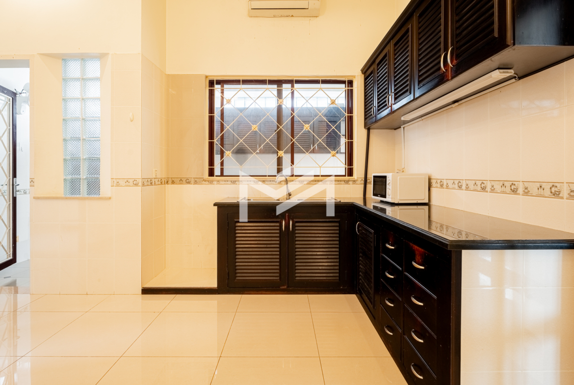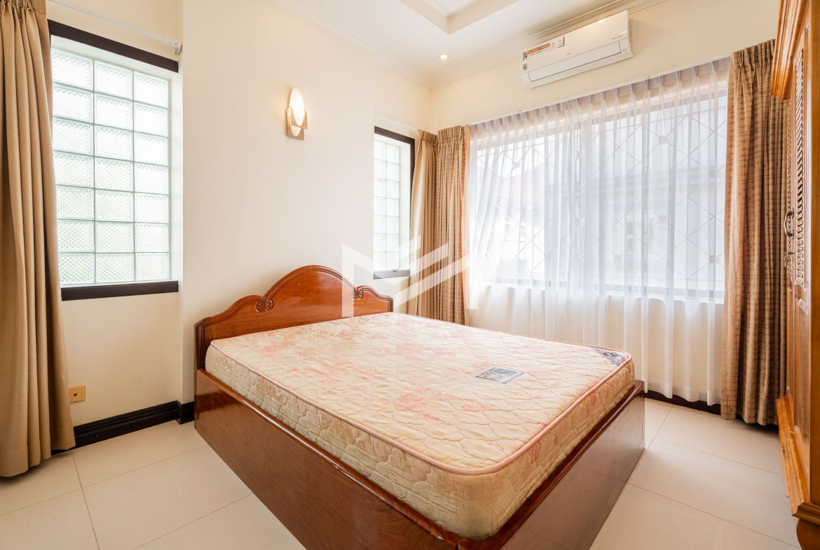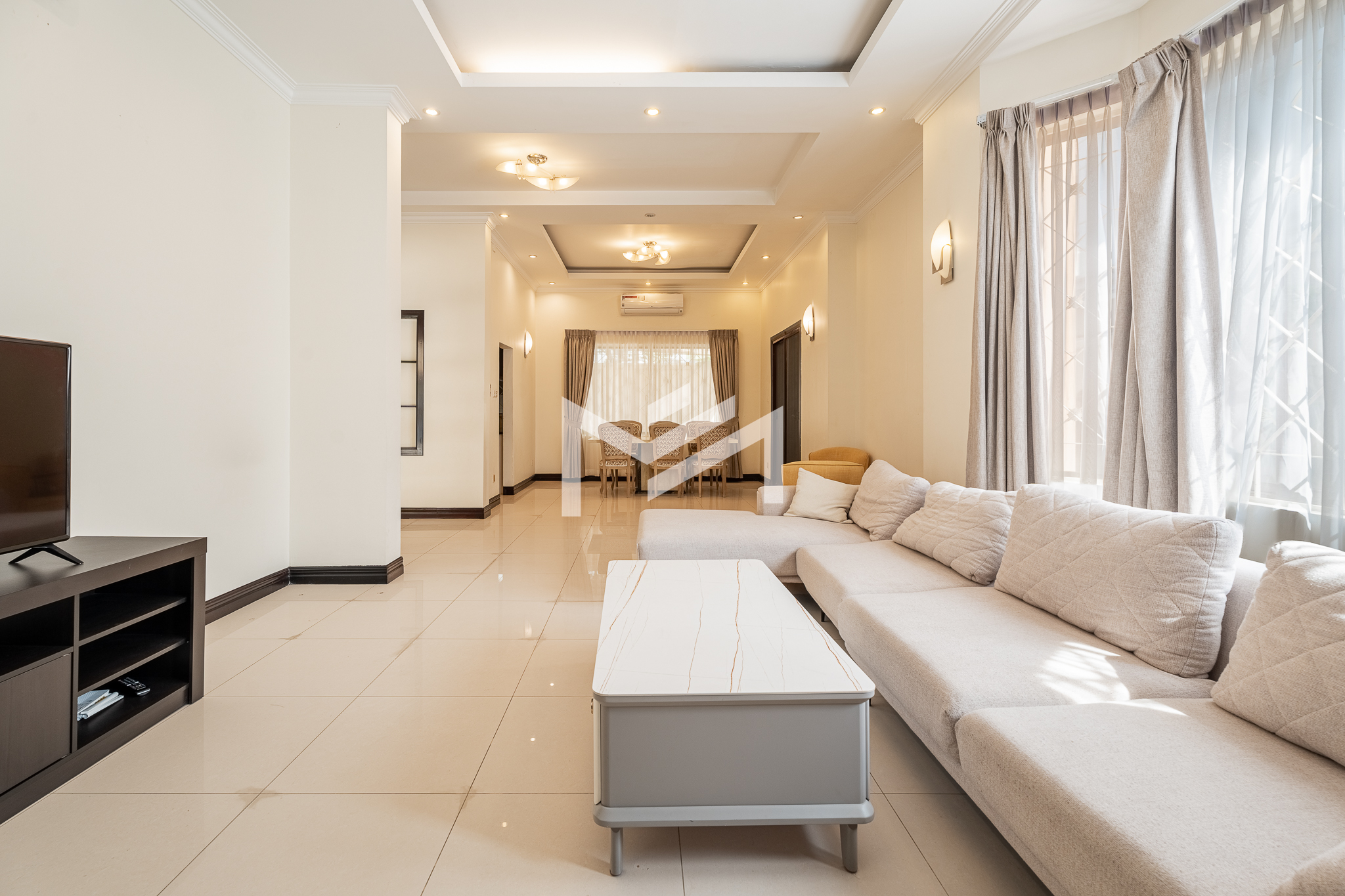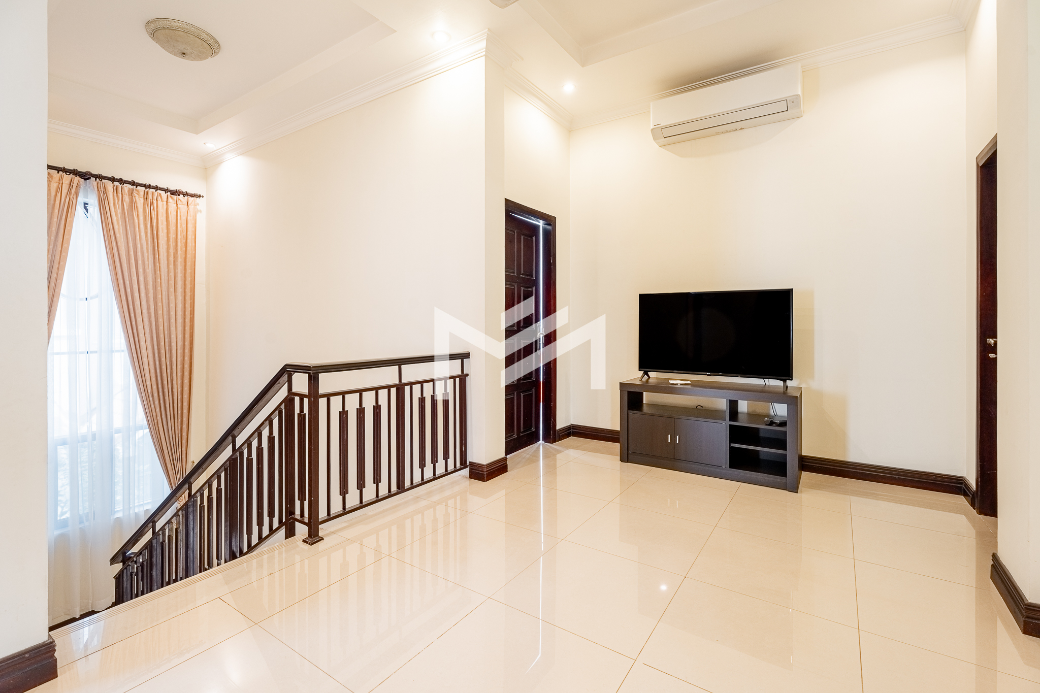 Typical classical standalone villa located in the gated community of Bassac Garden City, one of the rare opportunities to own or rent a standalone villa in the city center. The ground floor offers an open and welcoming layout for the living and kitchen areas, ideal for family living and entertaining. A separate helper’s room with its own toilet is located outside, ensuring privacy and functionality. All four bedrooms are situated on the first floor, providing a clear separation between living and resting areas. The villa comes fully furnished and is located within a safe and secure compound with 24-hour security. The community features quiet internal roads, perfect for children to play safely and for families to connect with neighbors in a peaceful environment. With convenient access to retail outlets within the same community and an excellent central location near AEON Mall Phnom Penh, this villa offers both comfort and prime city living.