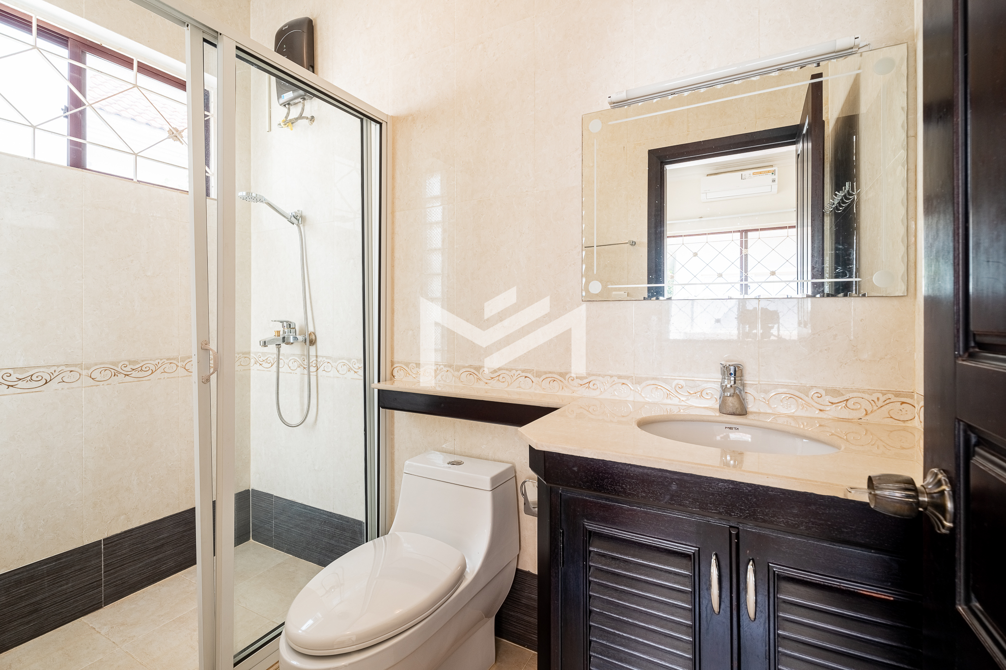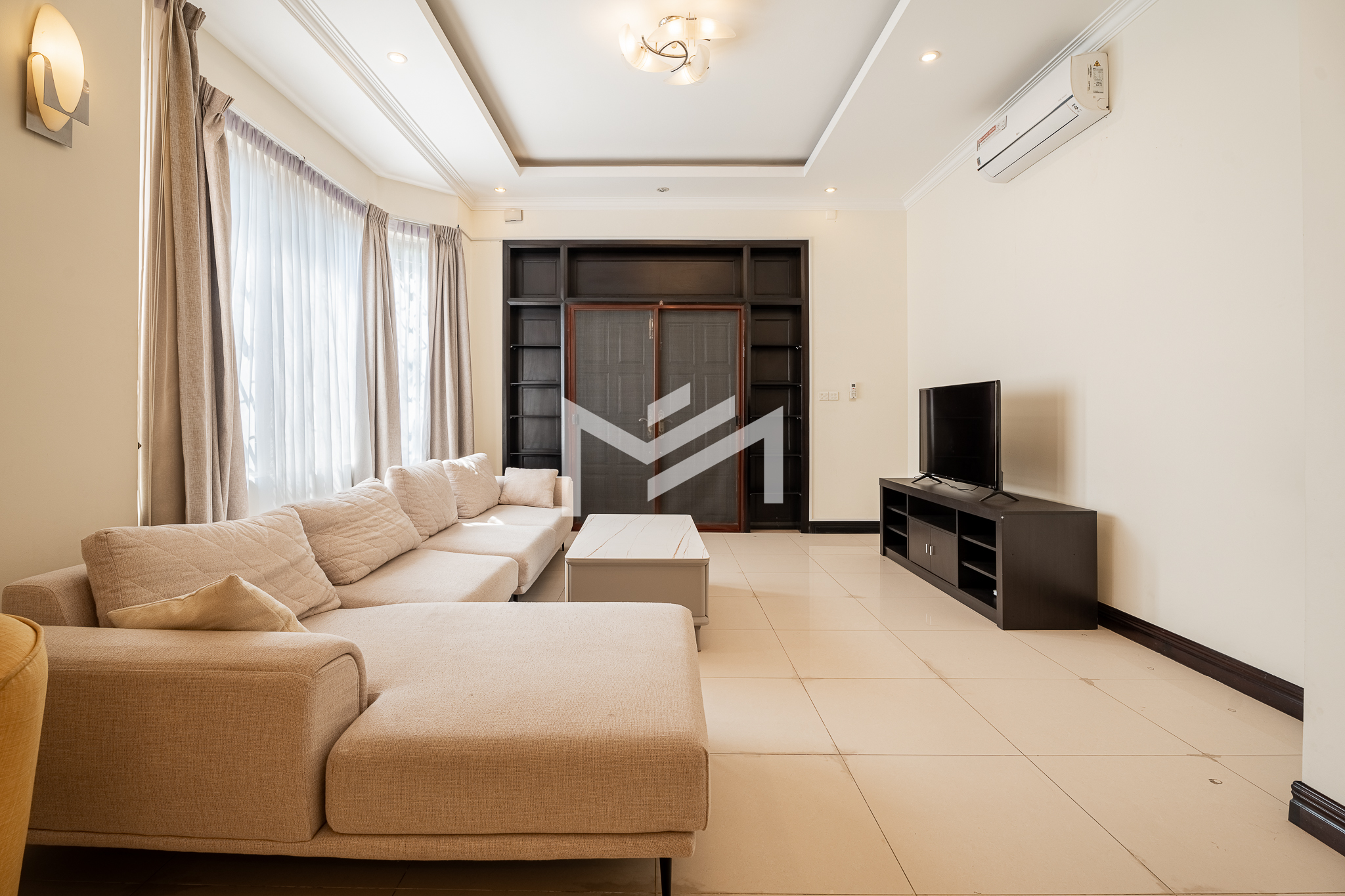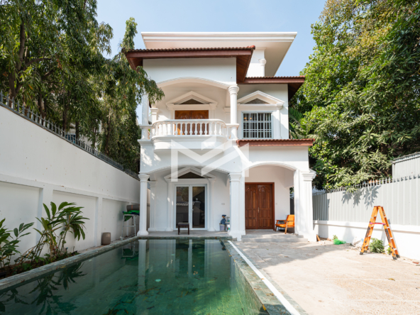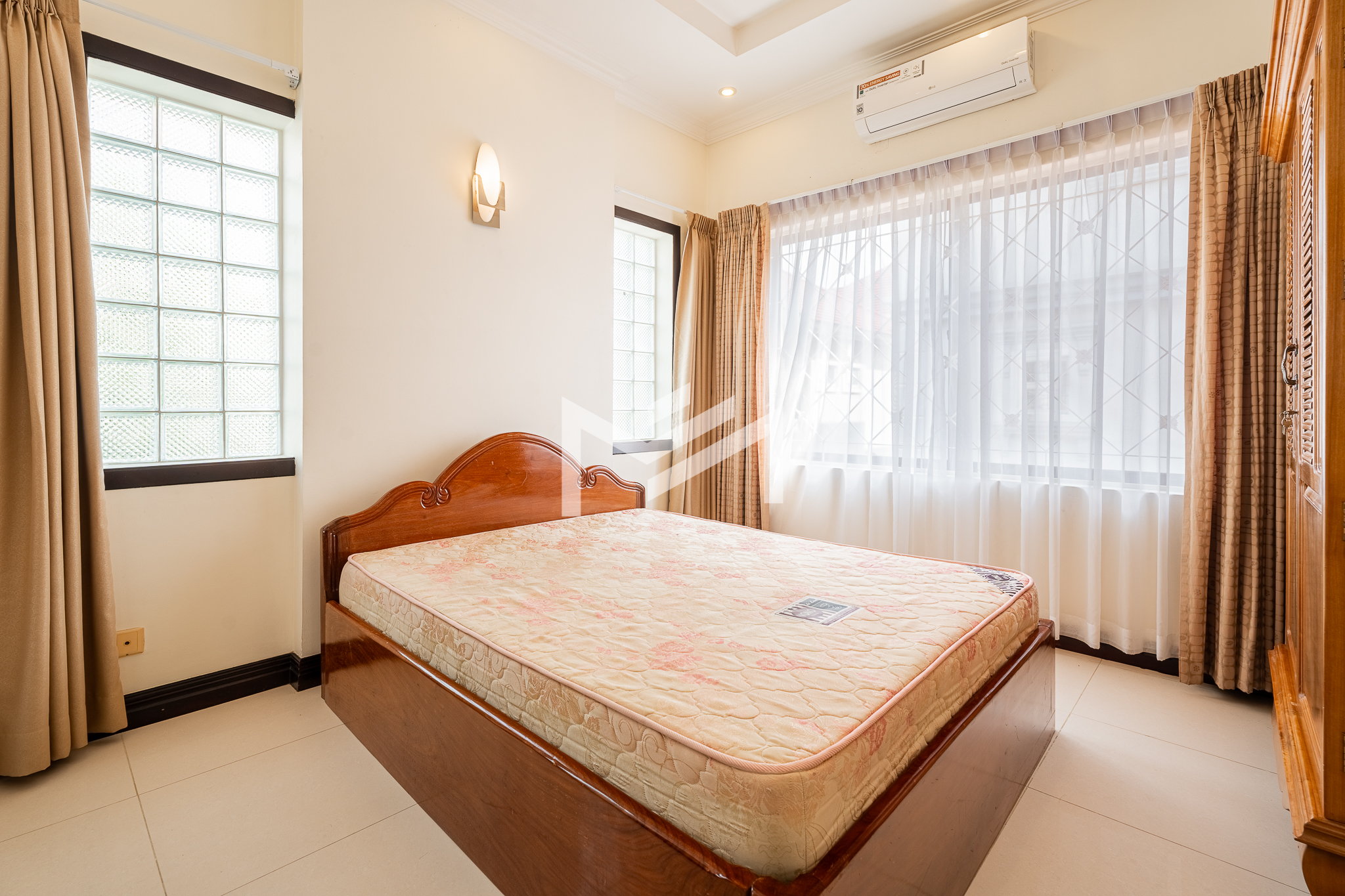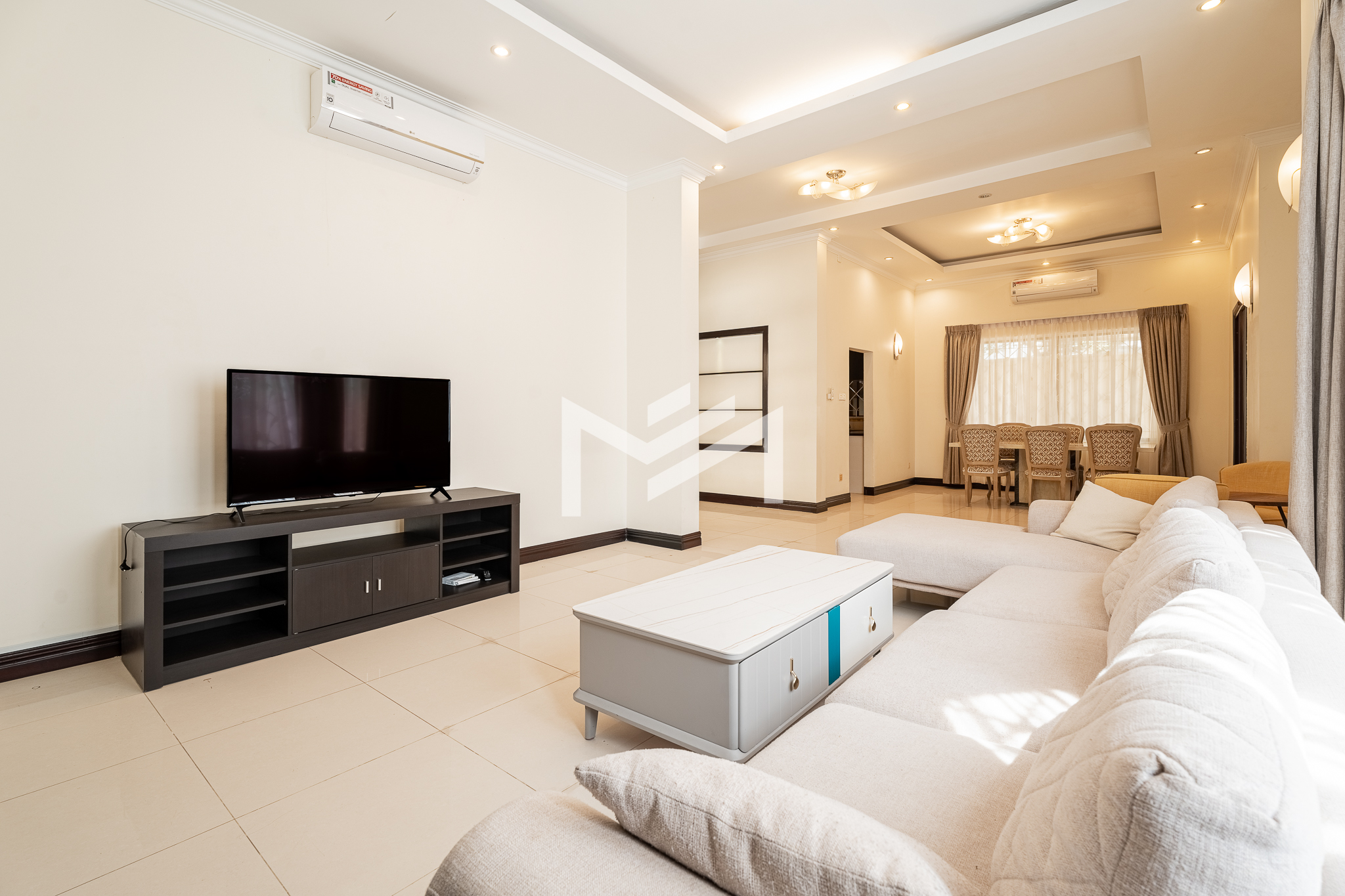 Typical classical standalone villa located in the gated community of Bassac Garden City, one of the rare opportunities to own or rent a standalone villa in the city center. The ground floor offers an open and welcoming layout for the living and kitchen areas, ideal for family living and entertaining. A separate helper’s room with its own toilet is located outside, ensuring privacy and functionality. All four bedrooms are situated on the first floor, providing a clear separation between living and resting areas. The villa comes fully furnished and is located within a safe and secure compound with 24-hour security. The community features quiet internal roads, perfect for children to play safely and for families to connect with neighbors in a peaceful environment. With convenient access to retail outlets within the same community and an excellent central location near AEON Mall Phnom Penh, this villa offers both comfort and prime city living.