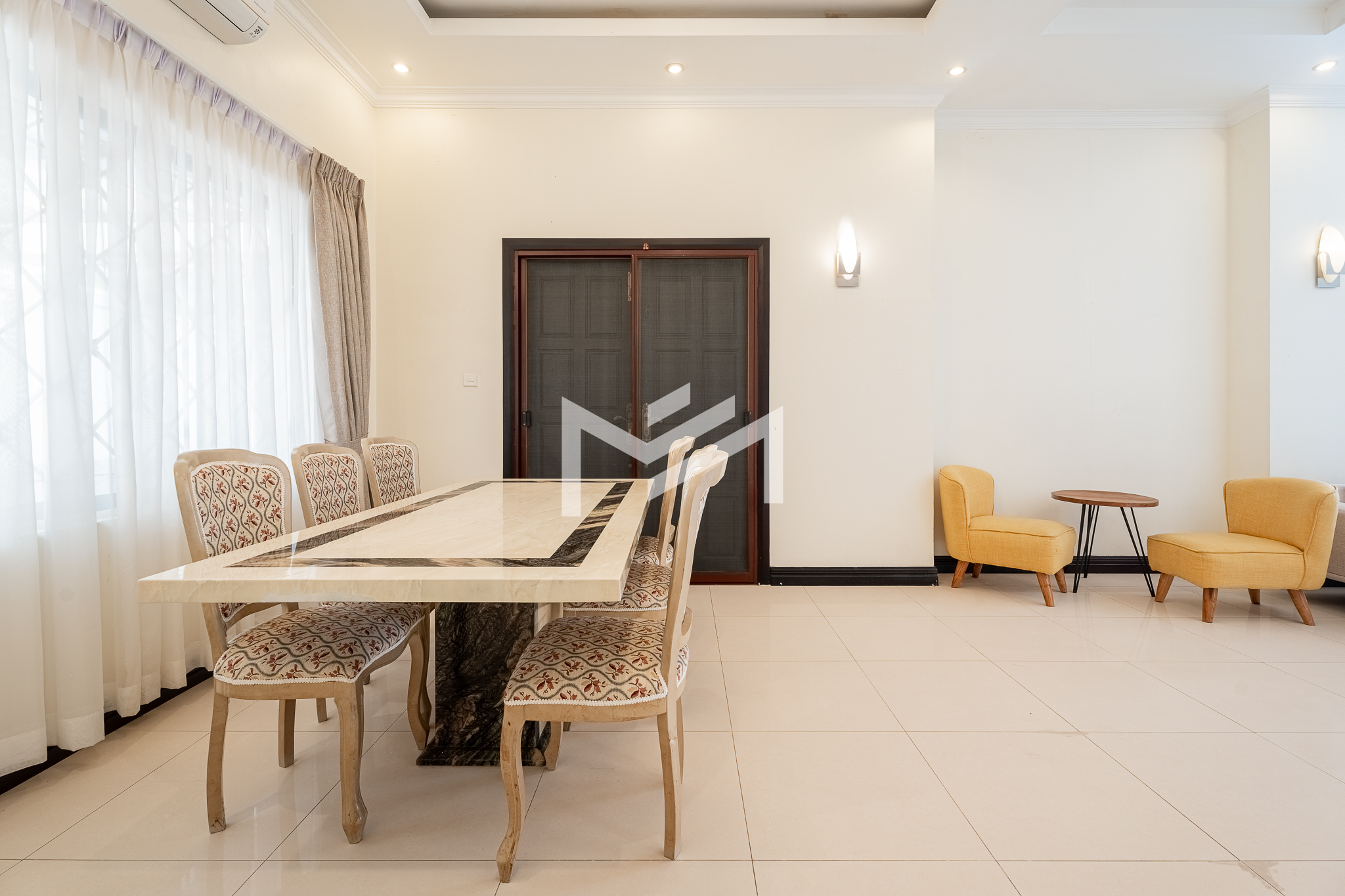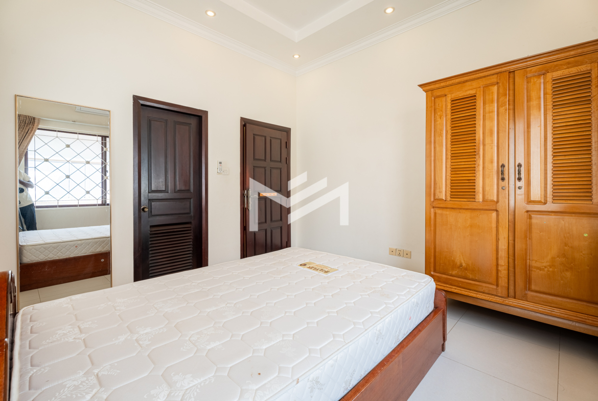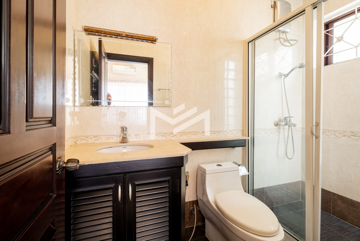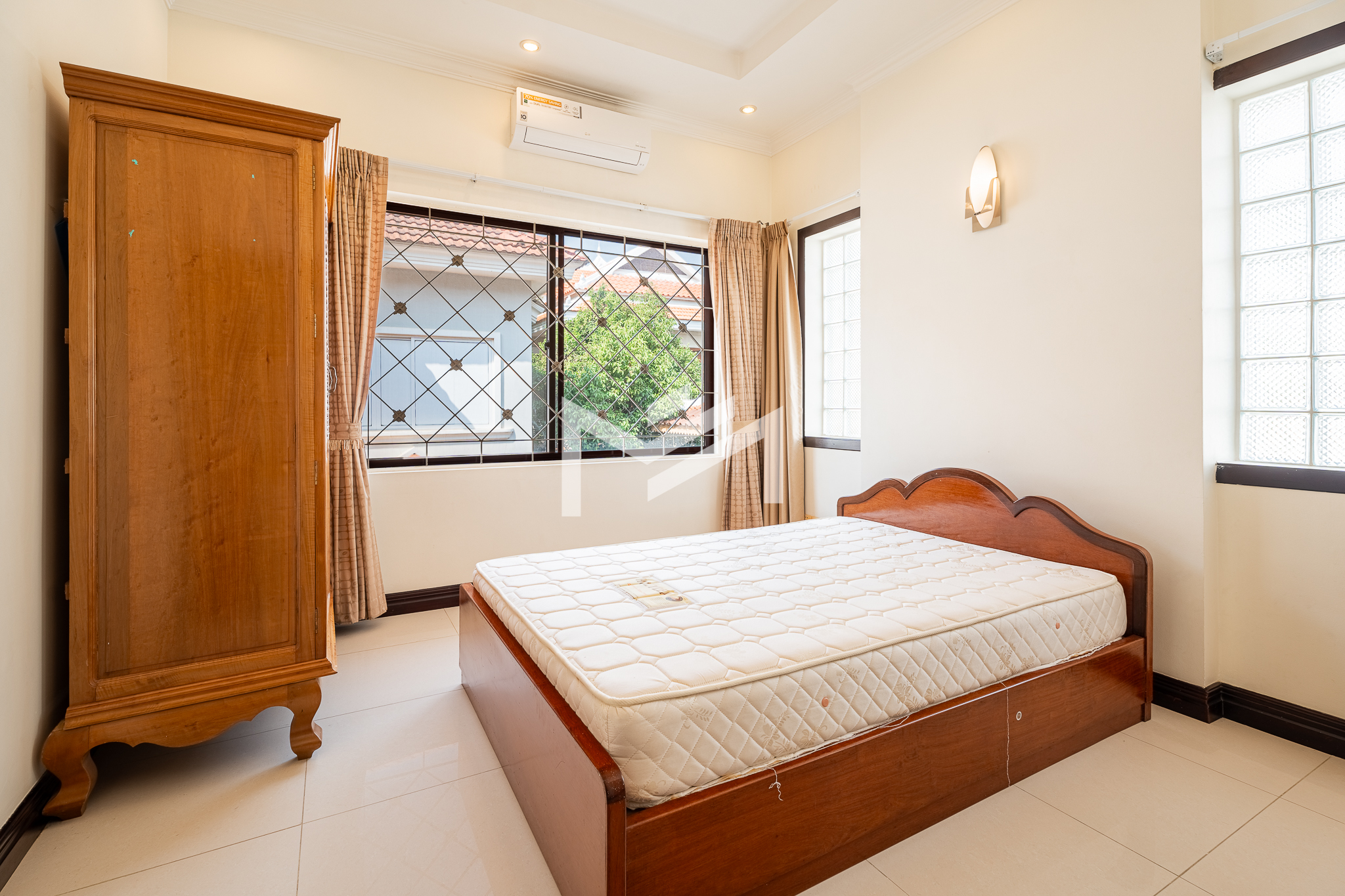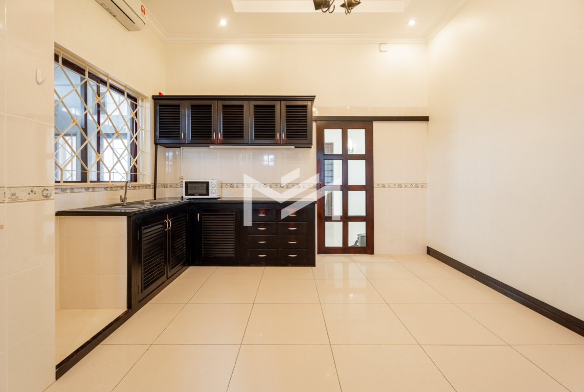 Typical classical standalone villa located in the gated community of Bassac Garden City, one of the rare opportunities to own or rent a standalone villa in the city center. The ground floor offers an open and welcoming layout for the living and kitchen areas, ideal for family living and entertaining. A separate helper’s room with its own toilet is located outside, ensuring privacy and functionality. All four bedrooms are situated on the first floor, providing a clear separation between living and resting areas. The villa comes fully furnished and is located within a safe and secure compound with 24-hour security. The community features quiet internal roads, perfect for children to play safely and for families to connect with neighbors in a peaceful environment. With convenient access to retail outlets within the same community and an excellent central location near AEON Mall Phnom Penh, this villa offers both comfort and prime city living.