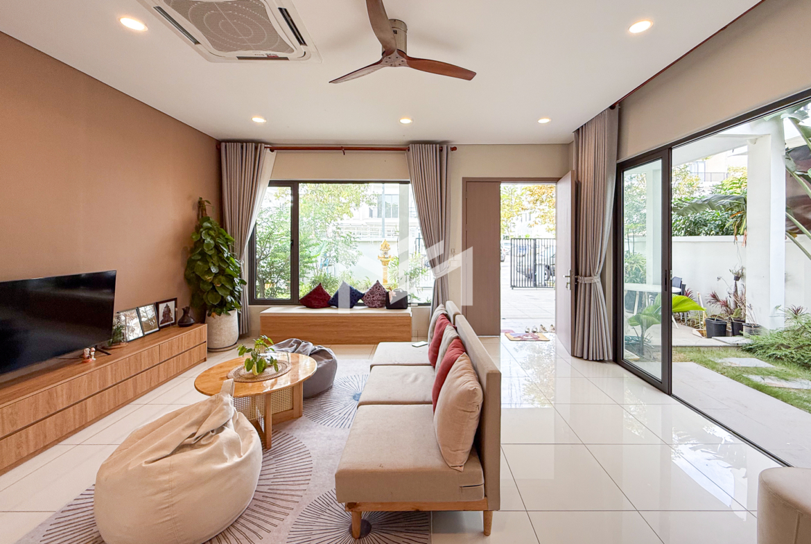 Located near AEON Mall 3 and Phnom Penh New International Airport, this villa offers a well-designed layout with brand-new furniture, situated in a gated community with excellent facilities. The ground floor includes a spacious living room, a kitchen, and a multipurpose room that can serve as an office, guest room, or playroom. The second and third floors each feature two bedrooms, providing ample space and privacy for family members. Outside, there is a separate helper’s room with its own toilet. The villa comes with brand-new furniture and an open-plan layout, creating a comfortable living environment. Residents will enjoy the benefits of a gated community with security and access to a central park. A large shopping mall is right at the main entrance of the community, adding exceptional convenience and lifestyle value. This home is ideal for families seeking space, privacy, and a strategic location with strong future growth potential in Borey Chankiri.