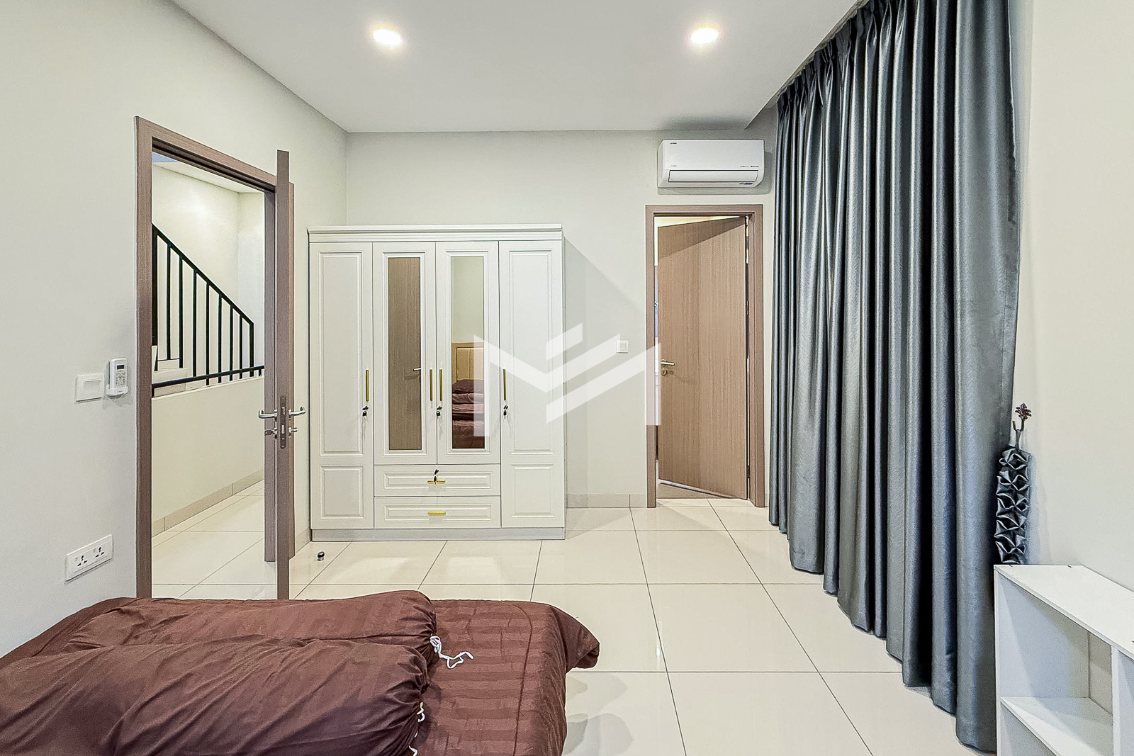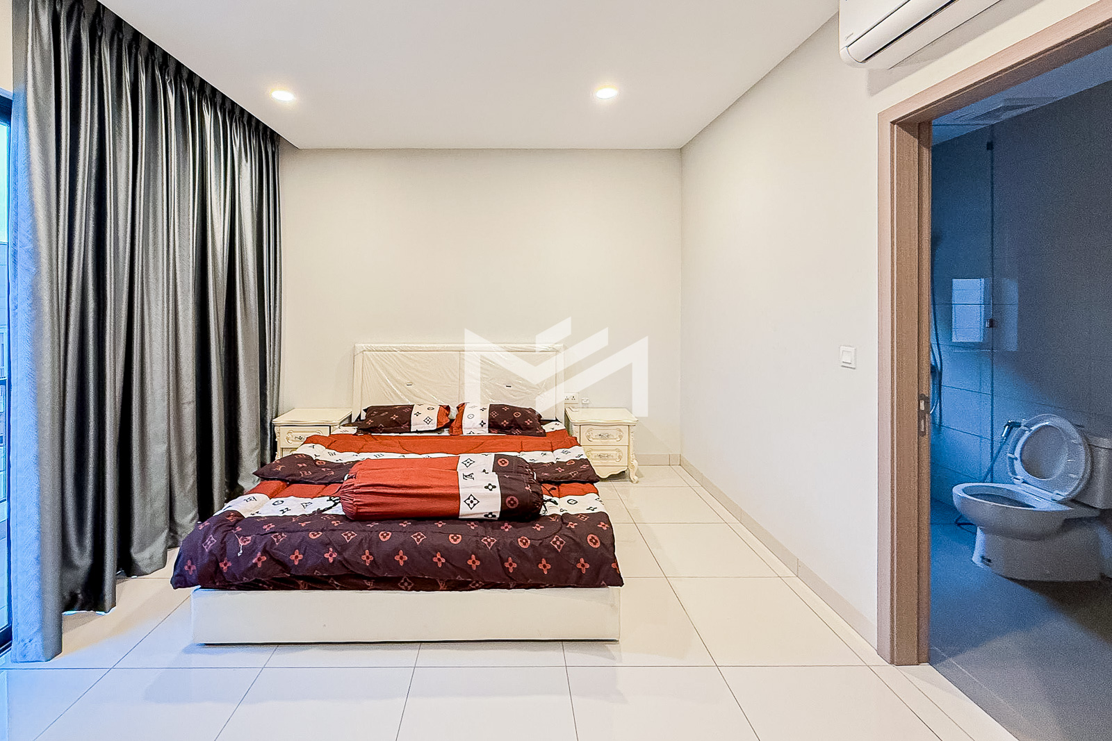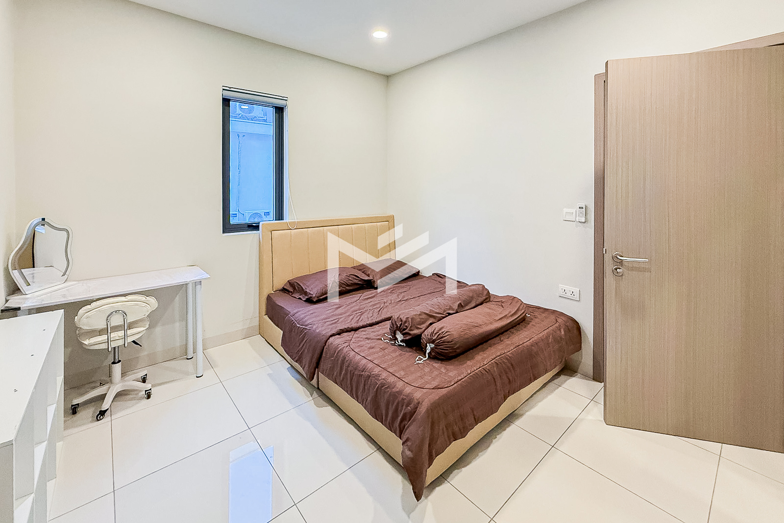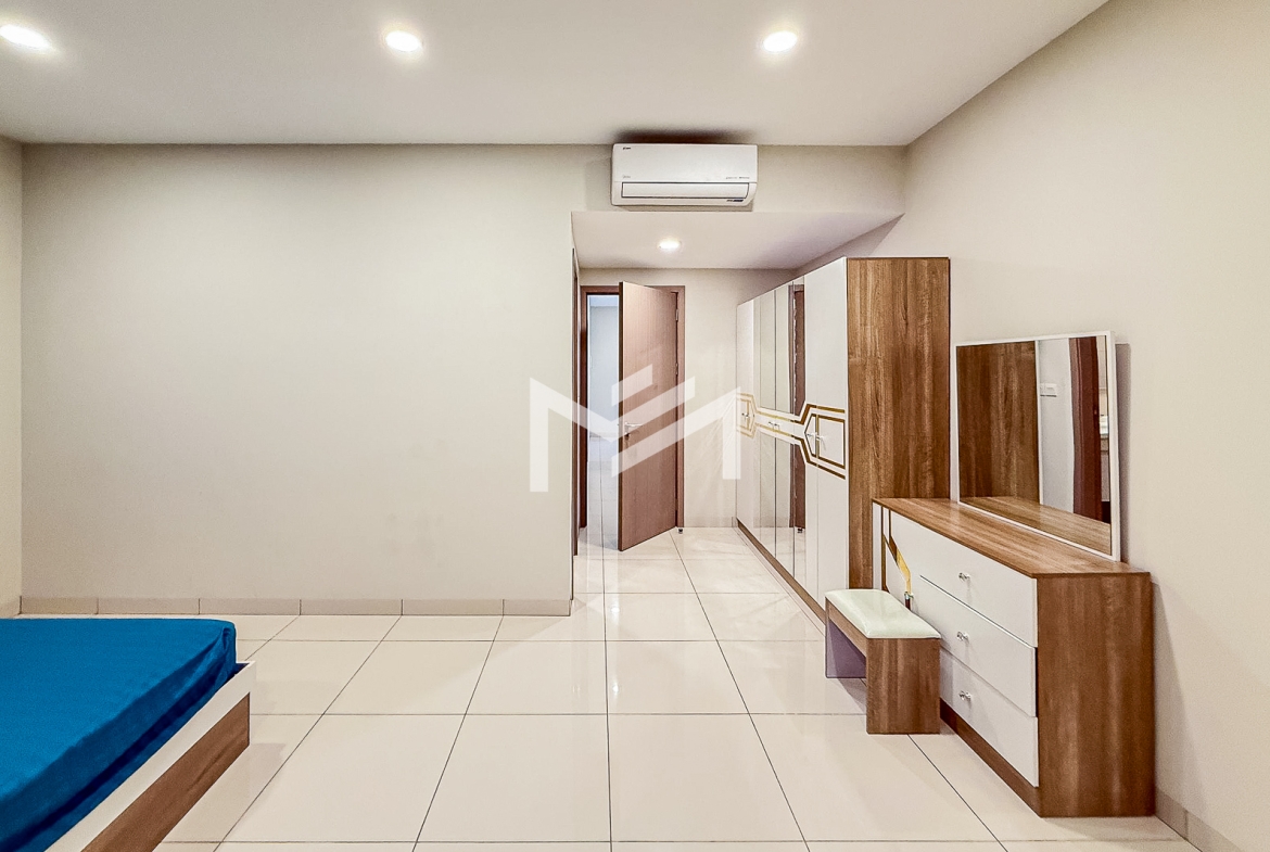 This spacious twin villa offers four bedrooms, each with an attached bathroom. The property is nearly fully furnished, with every bedroom equipped with a wardrobe, bed, and mattress. On the ground floor, you’ll find a guest toilet, storage space, a closed kitchen, and a helper room. A mini garden about two meters wide adds a touch of greenery. Located in a beautiful compound of over 300 homes, the property features a large shared garden and 24-hour security. It’s approximately 15KM from the BKK1 area, making it a peaceful yet convenient choice for families or individuals seeking a comfortable residence outside the busy city center.
