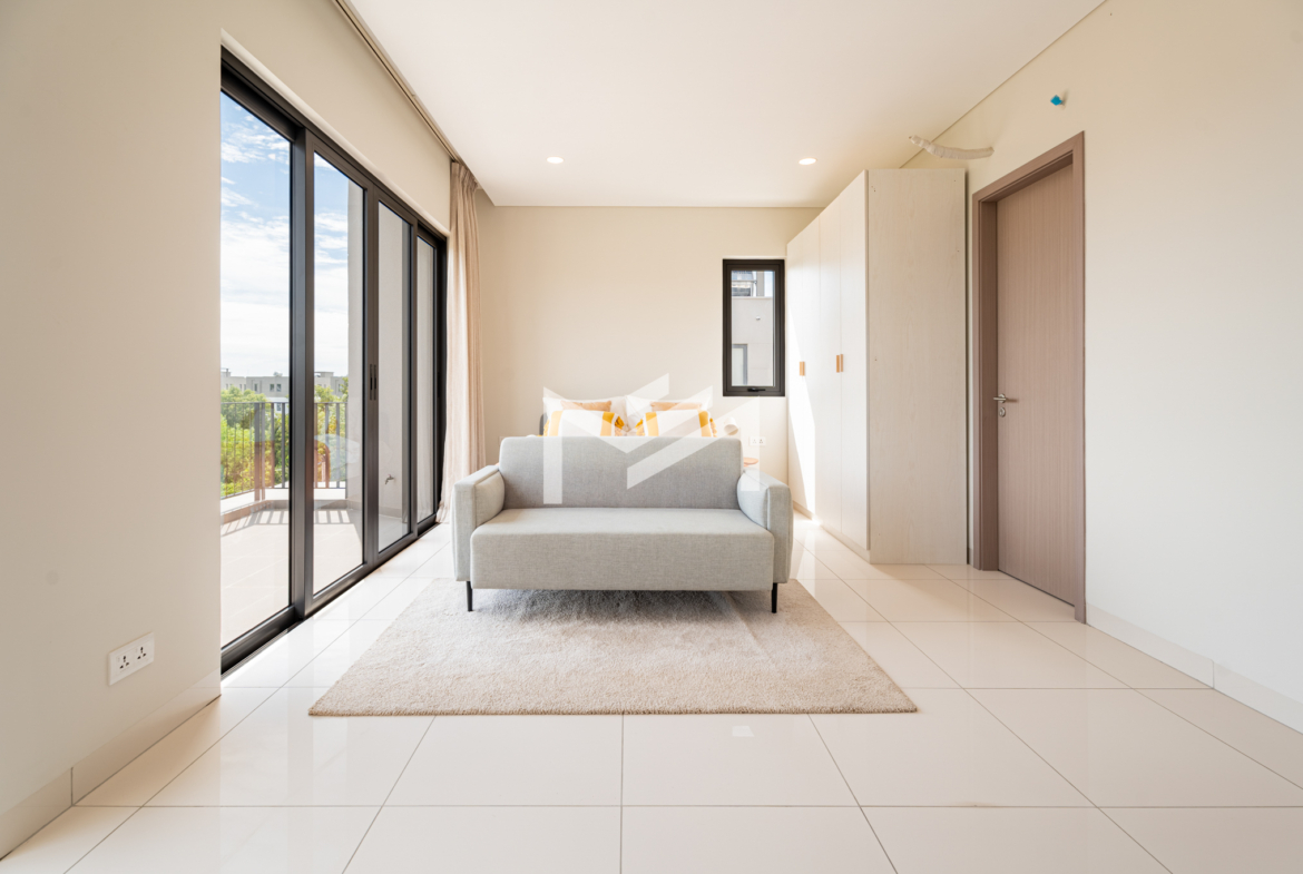 Located near AEON Mall 3 and Phnom Penh New International Airport, this villa offers a well-designed layout with brand-new furniture, situated in a gated community with excellent facilities. The ground floor includes a spacious living room, a kitchen, and a multipurpose room that can serve as an office, guest room, or playroom. The second and third floors each feature two bedrooms, providing ample space and privacy for family members. Outside, there is a separate helper’s room with its own toilet. The villa comes with brand-new furniture and an open-plan layout, creating a comfortable living environment. Residents will enjoy the benefits of a gated community with security and access to a central park. A large shopping mall is set to open in early 2026 right at the main entrance of the community, adding exceptional convenience and lifestyle value. This home is ideal for families seeking space, privacy, and a strategic location with strong future growth potential in Borey Chankiri.