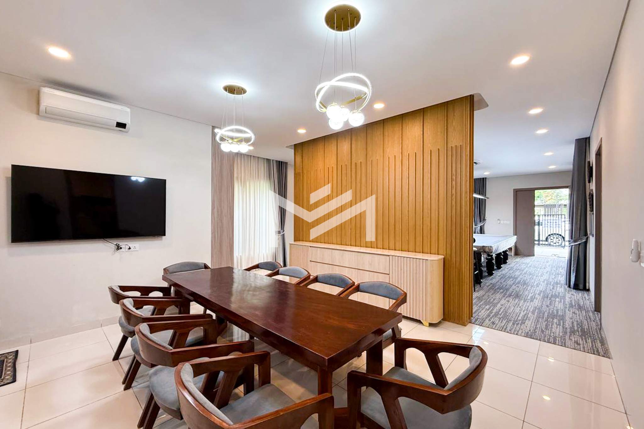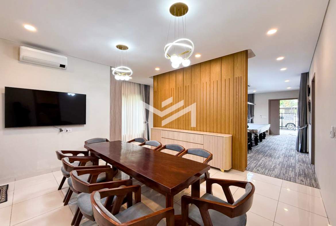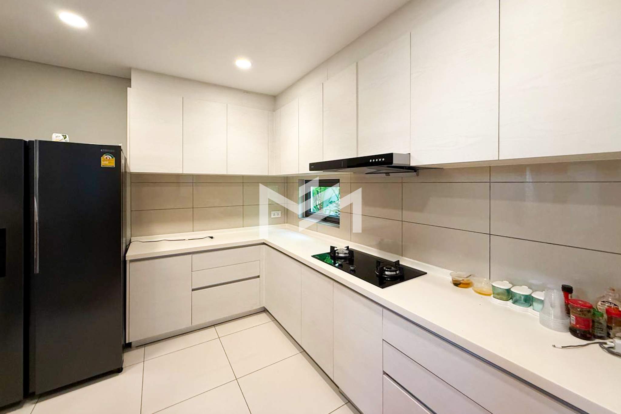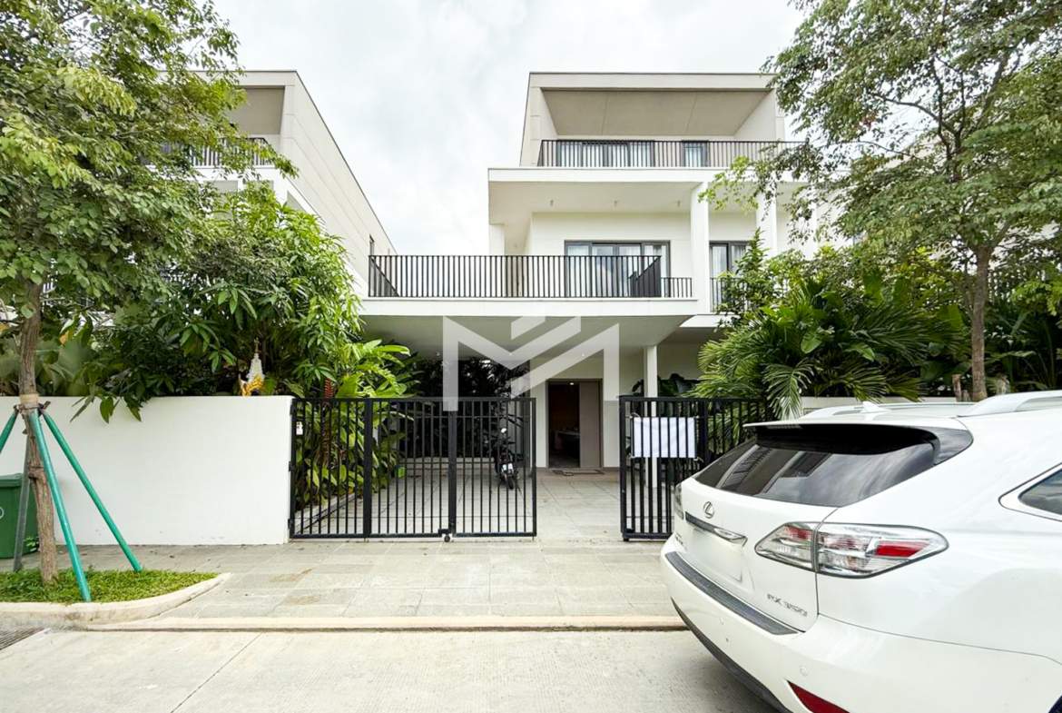Elegant single villa perfectly positioned right opposite Central Park, featuring high-end furniture and modern finishes throughout. The home offers two kitchens — wet and dry — ideal for both daily use and entertaining. The ground floor includes a spacious living room, one bedroom that can be used as an office, a guest bathroom, and a storage room. The first and second floors each feature two large bedrooms with ensuite bathrooms, private balconies, and generous closet space. The master level opens to a big terrace with a beautiful view of Central Park. Located in a secure gated community with the upcoming Prek Thnom Mall, only 5 minutes to Aeon 3 and 15 minutes to Techo International Airport, offering both convenience and comfort in a peaceful residential setting.