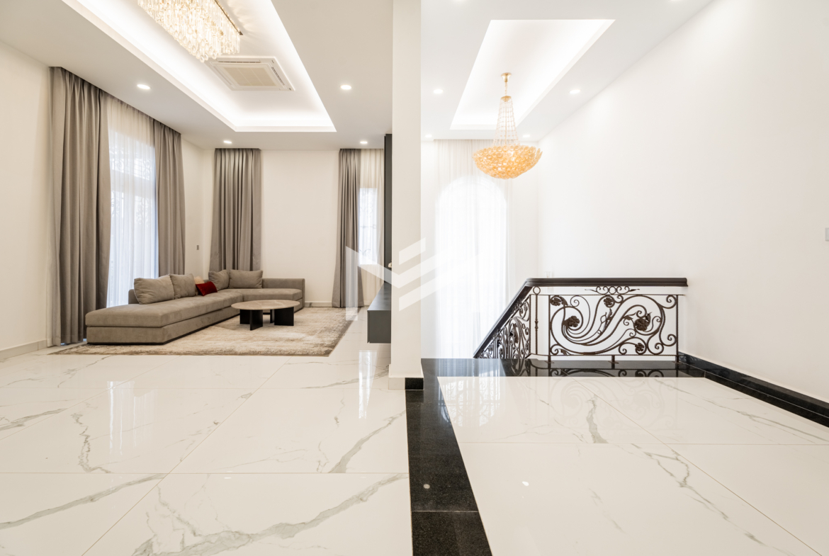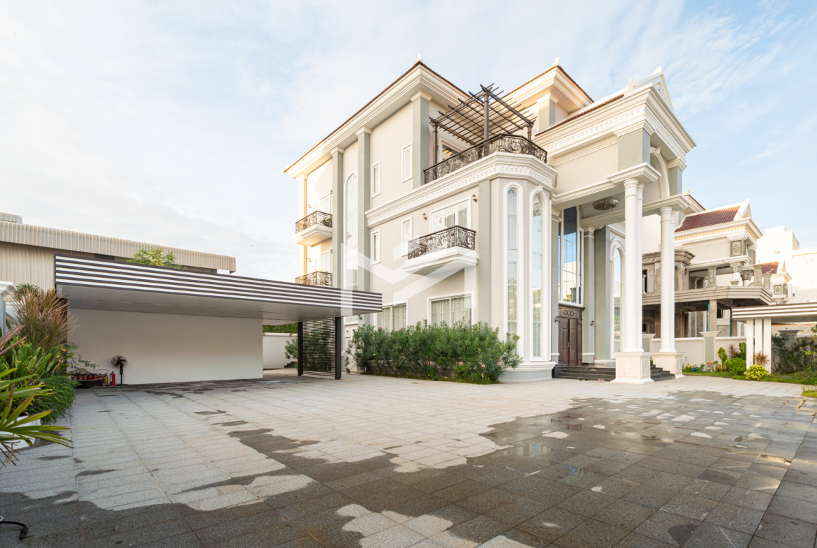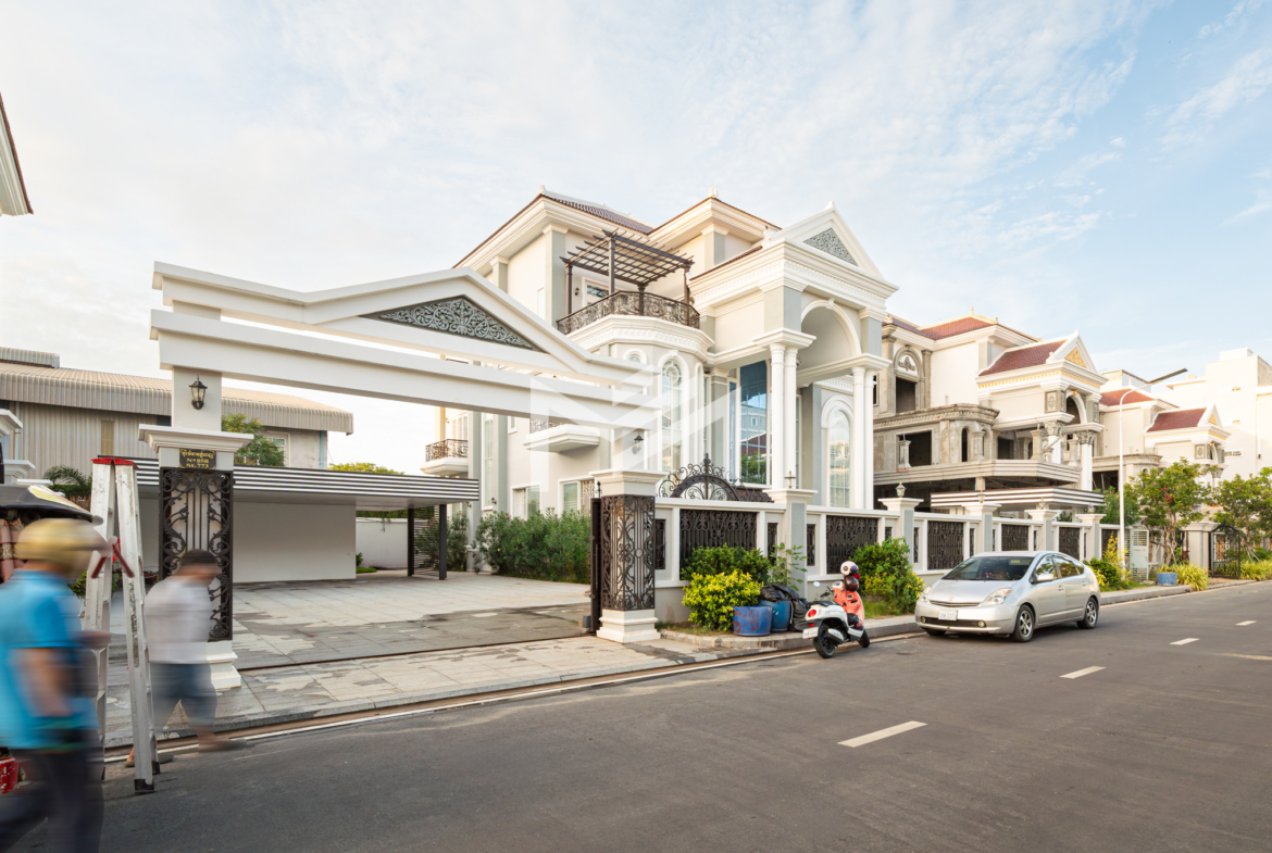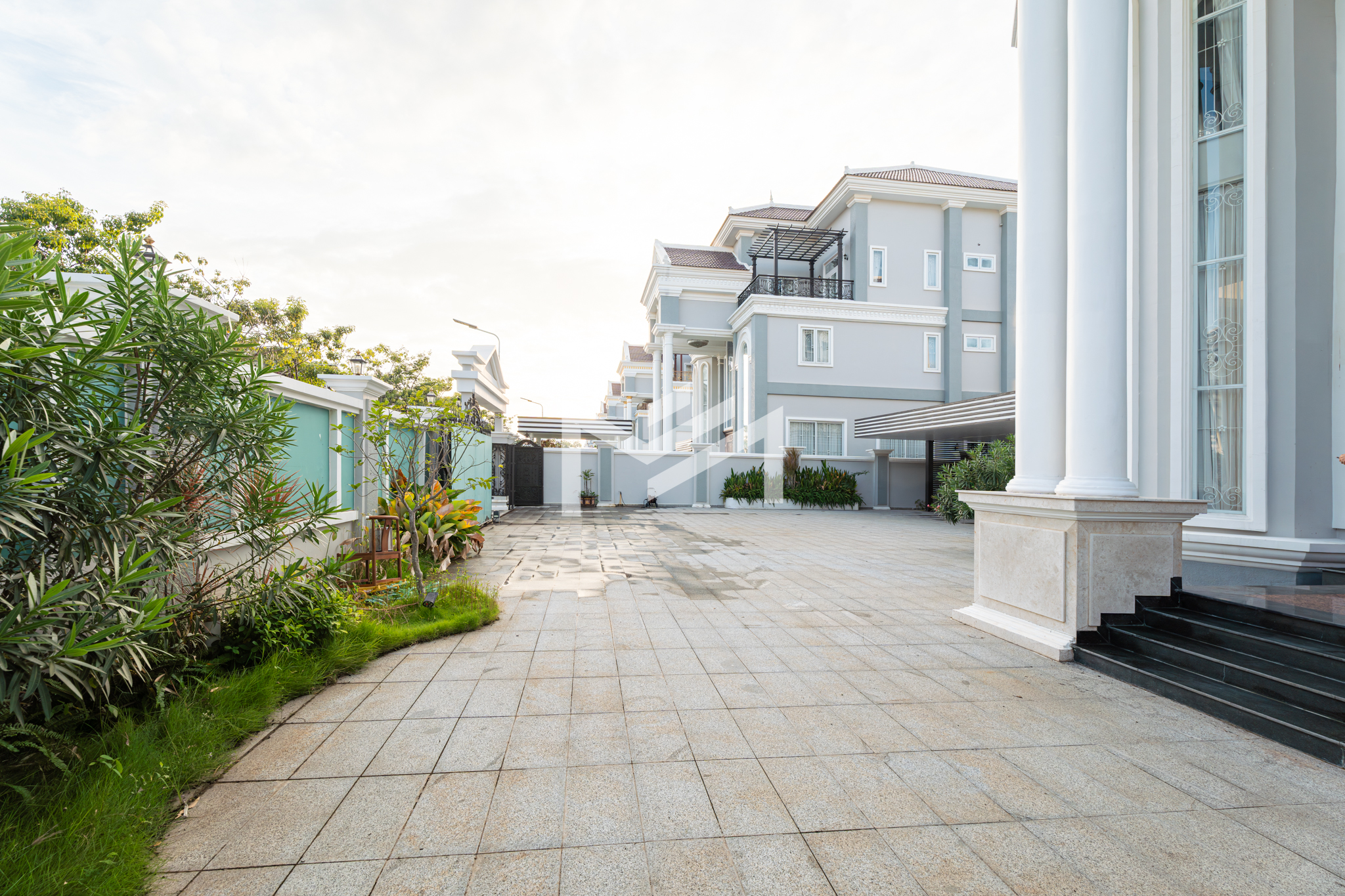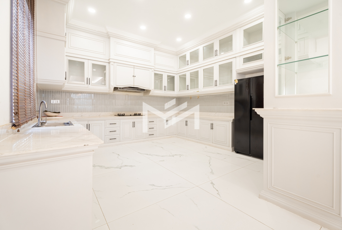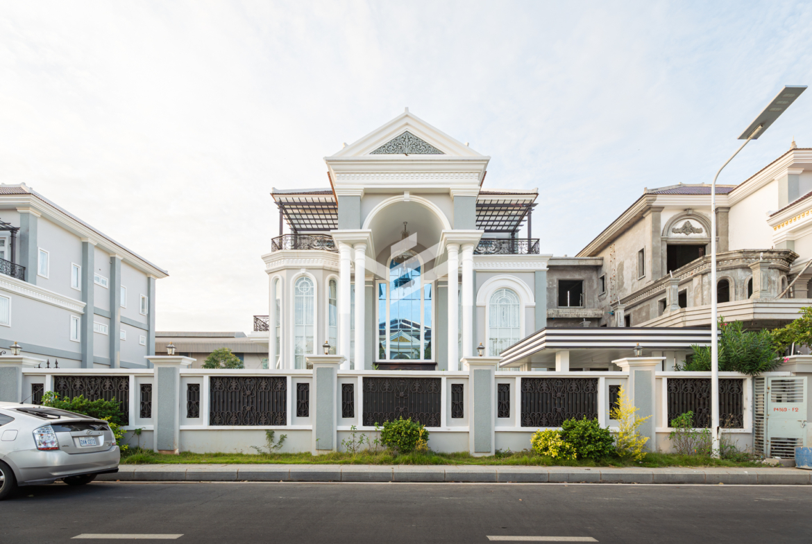 Luxury King Villa for rent in a secured gated community in the north of Phnom Penh, close to AEON Mall 2 and the Ministry of Land. This elegant villa is fully furnished with premium, high-quality furniture and is completely ready to move in. The neighborhood offers 24-hour security, green parks and a peaceful environment suitable for both families and professionals. The location is highly convenient, only about 15 minutes from the Toul Kork area, with easy access to schools, shopping and main roads. Spacious and comfortable, this property is ideal for group sharing or a large family looking for a luxurious home in a safe and well-managed community.