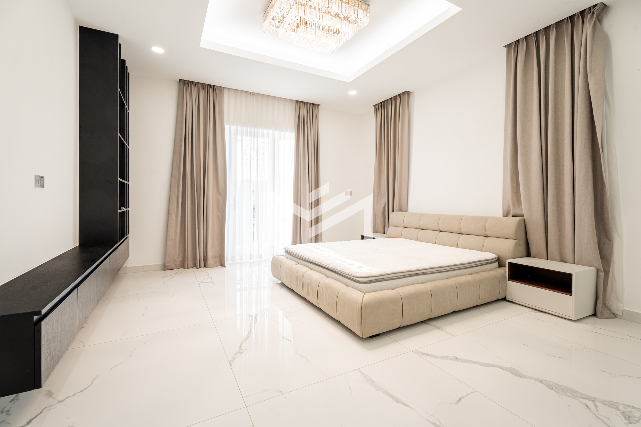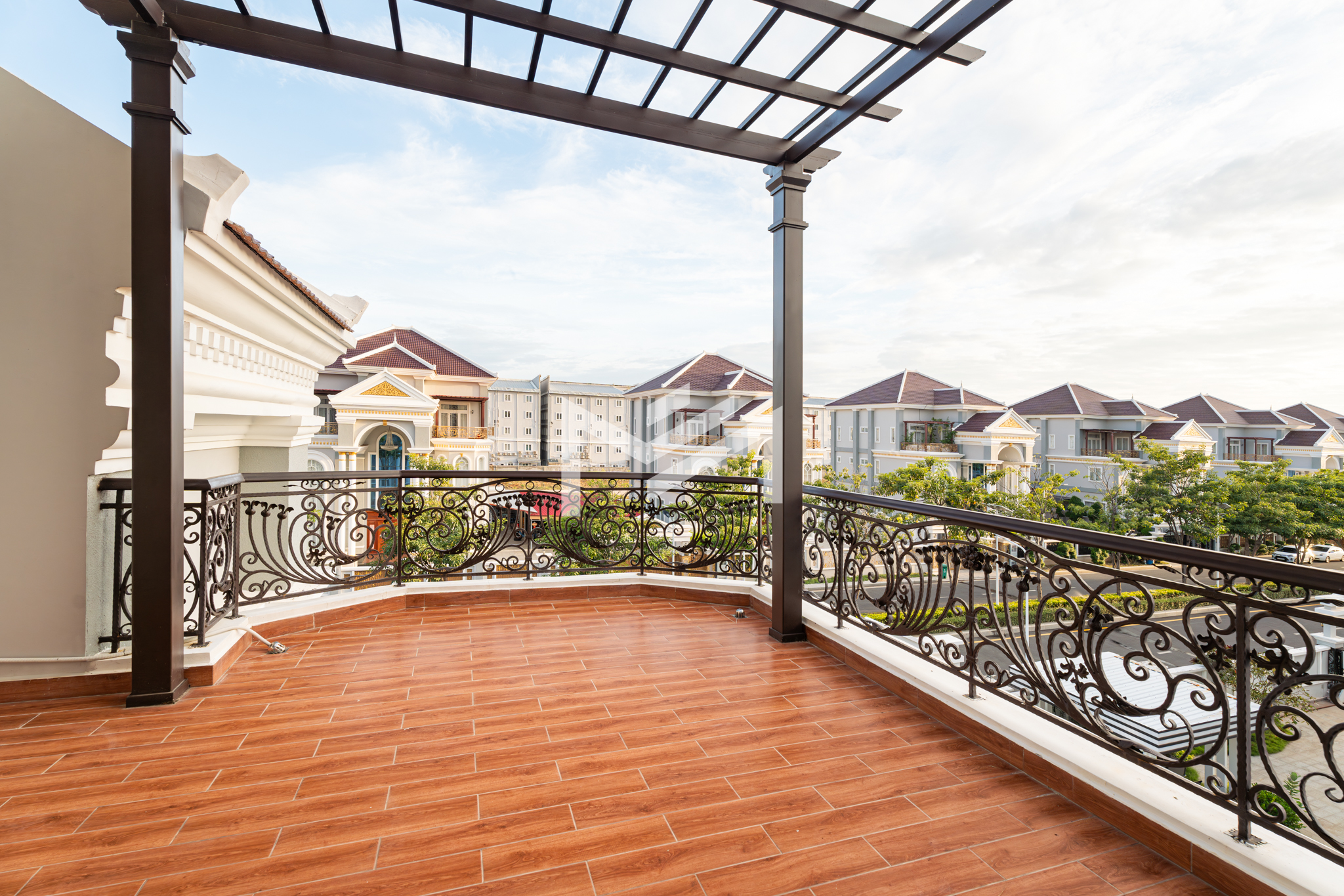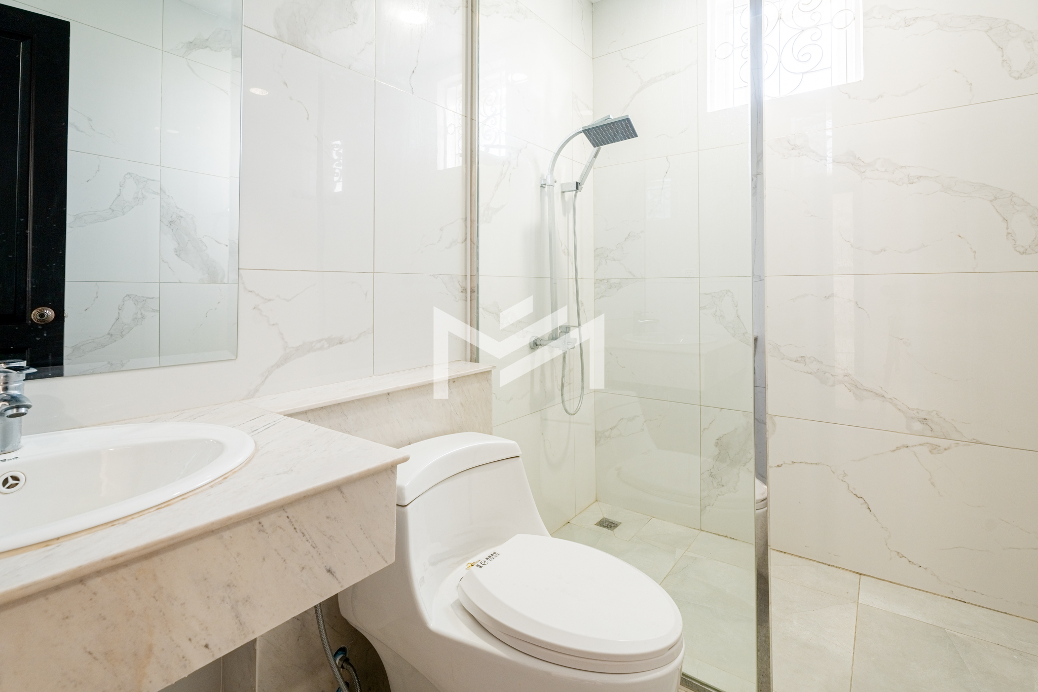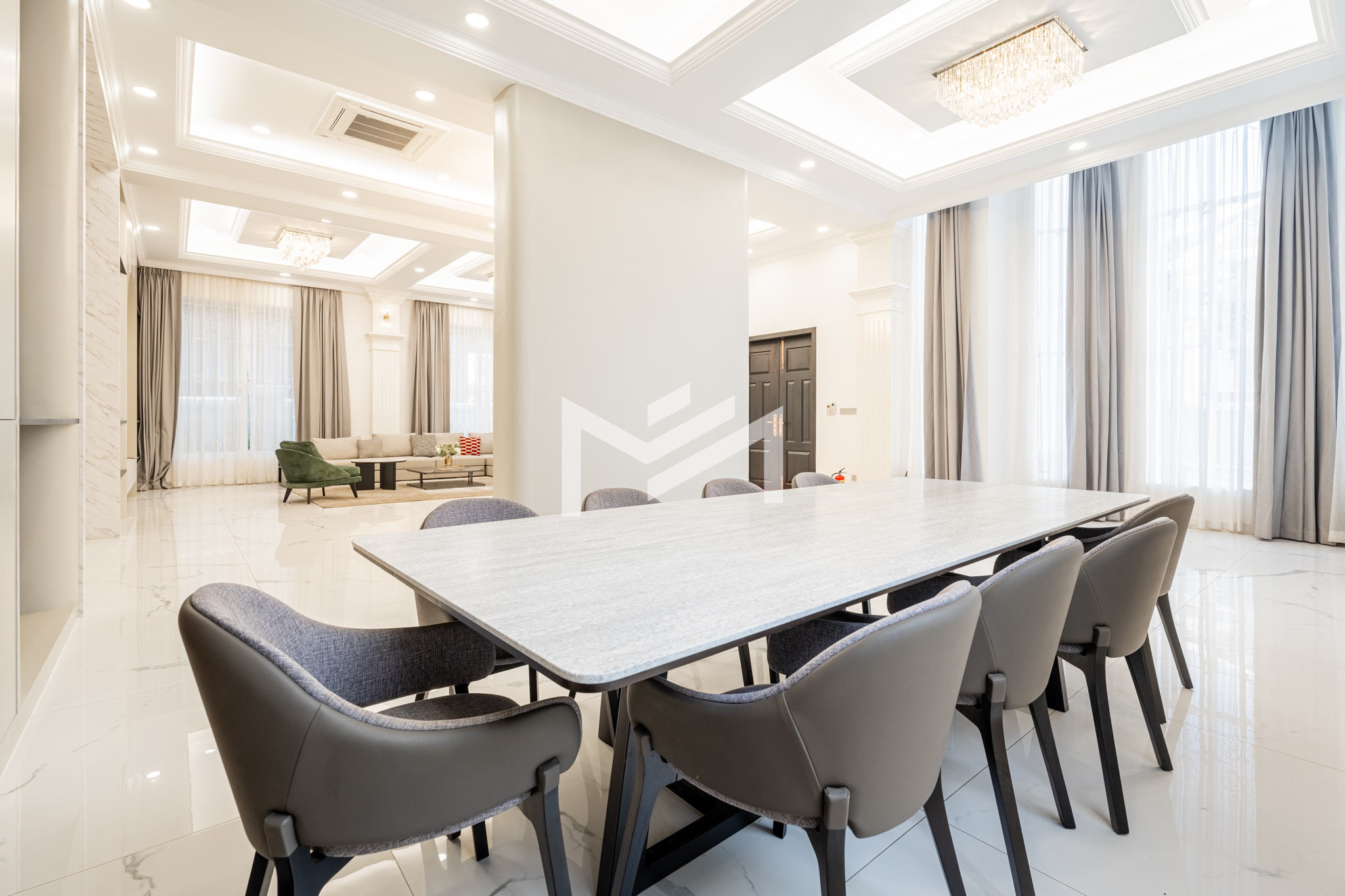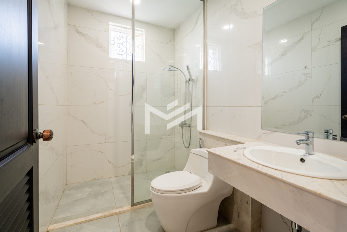 Luxury King Villa for rent in a secured gated community in the north of Phnom Penh, close to AEON Mall 2 and the Ministry of Land. This elegant villa is fully furnished with premium, high-quality furniture and is completely ready to move in. The neighborhood offers 24-hour security, green parks and a peaceful environment suitable for both families and professionals. The location is highly convenient, only about 15 minutes from the Toul Kork area, with easy access to schools, shopping and main roads. Spacious and comfortable, this property is ideal for group sharing or a large family looking for a luxurious home in a safe and well-managed community.