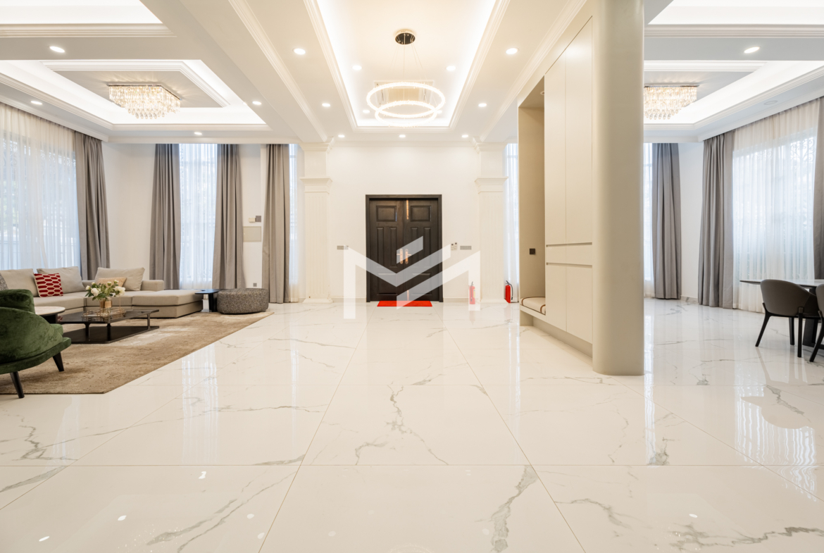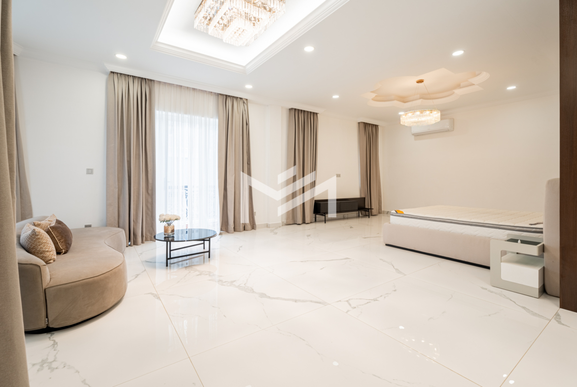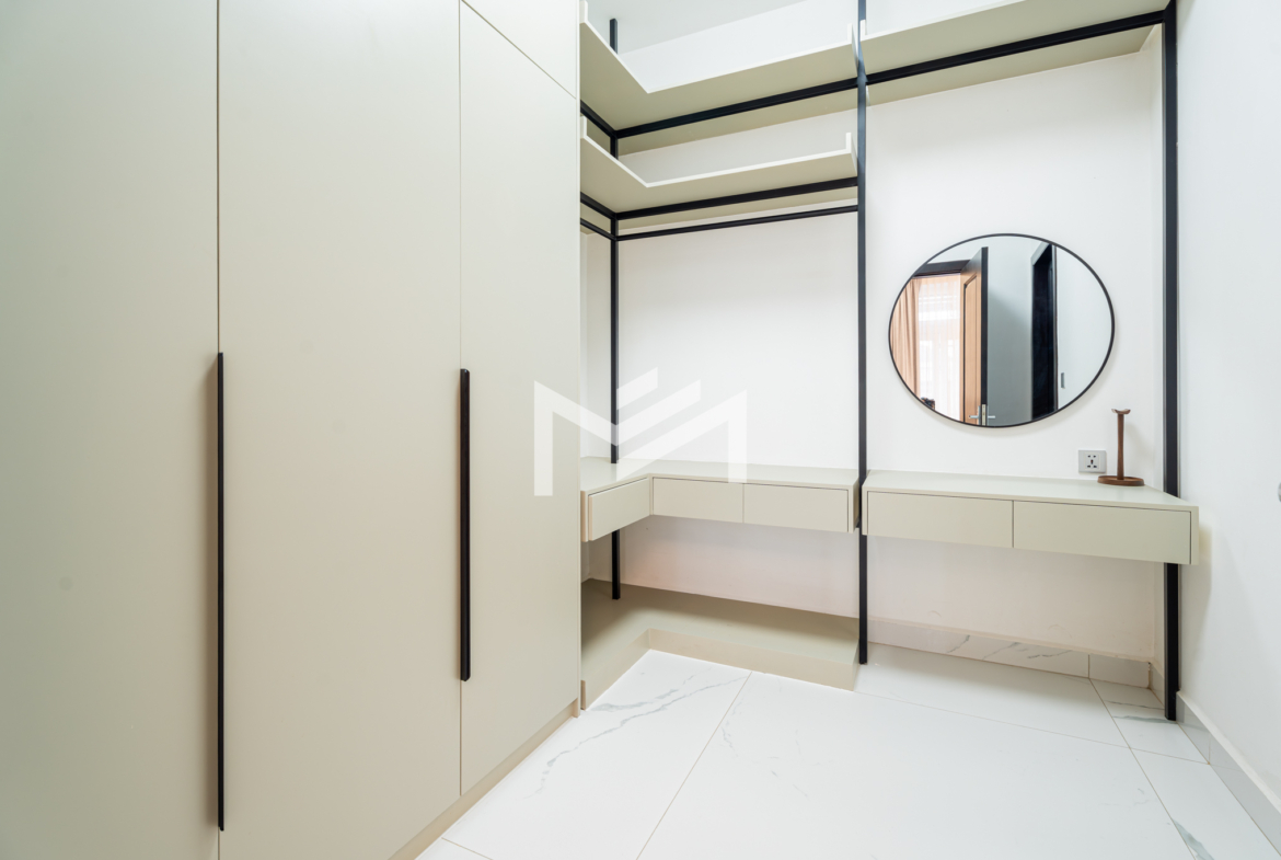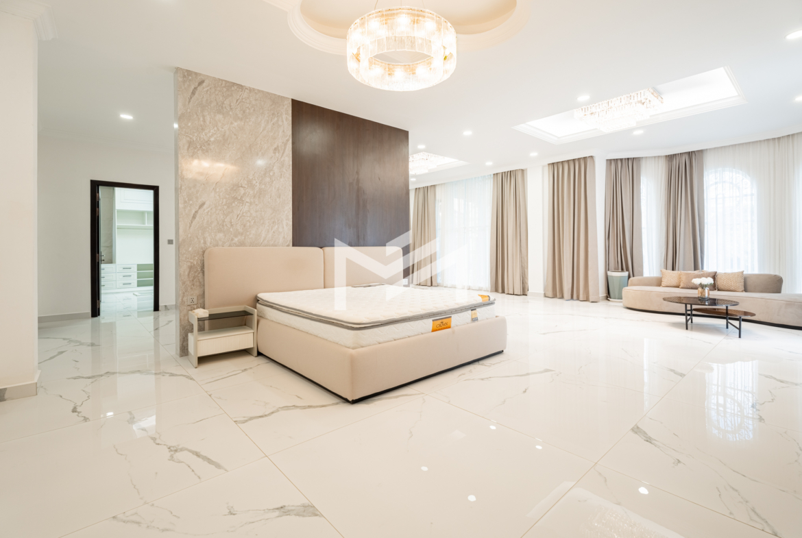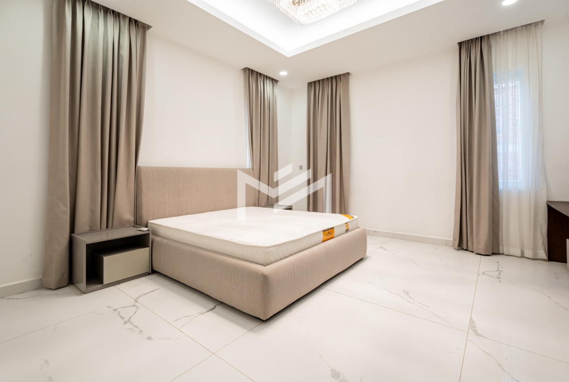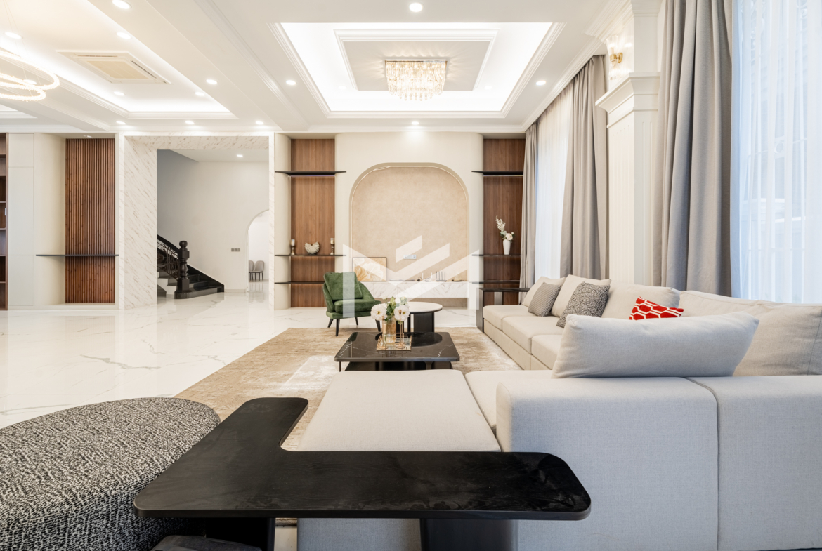 Luxury King Villa for rent in a secured gated community in the north of Phnom Penh, close to AEON Mall 2 and the Ministry of Land. This elegant villa is fully furnished with premium, high-quality furniture and is completely ready to move in. The neighborhood offers 24-hour security, green parks and a peaceful environment suitable for both families and professionals. The location is highly convenient, only about 15 minutes from the Toul Kork area, with easy access to schools, shopping and main roads. Spacious and comfortable, this property is ideal for group sharing or a large family looking for a luxurious home in a safe and well-managed community.