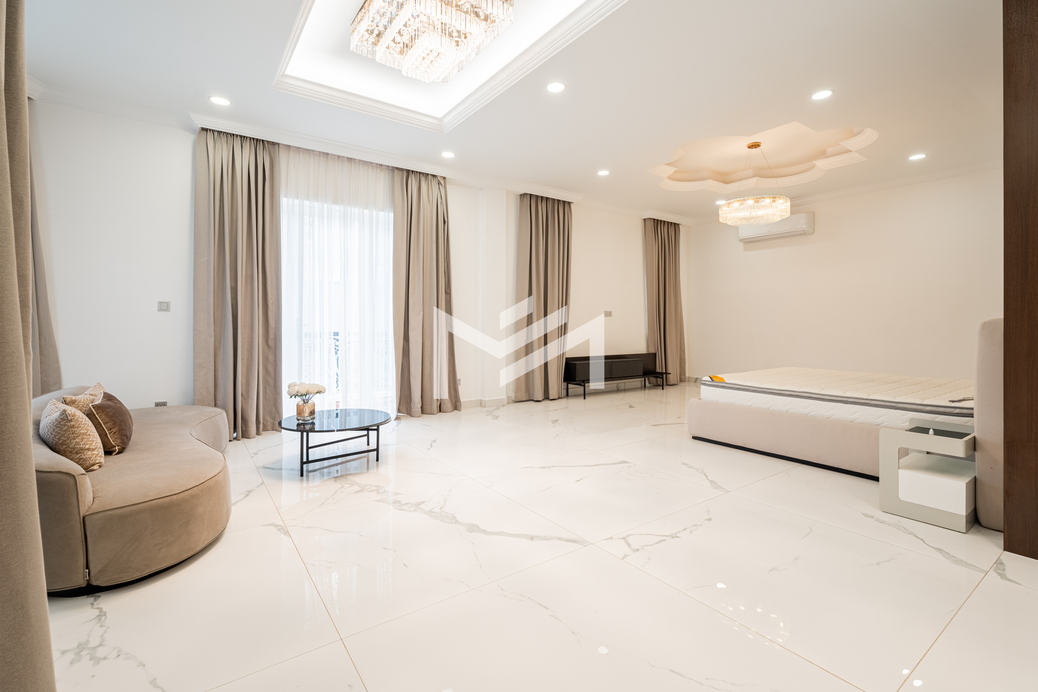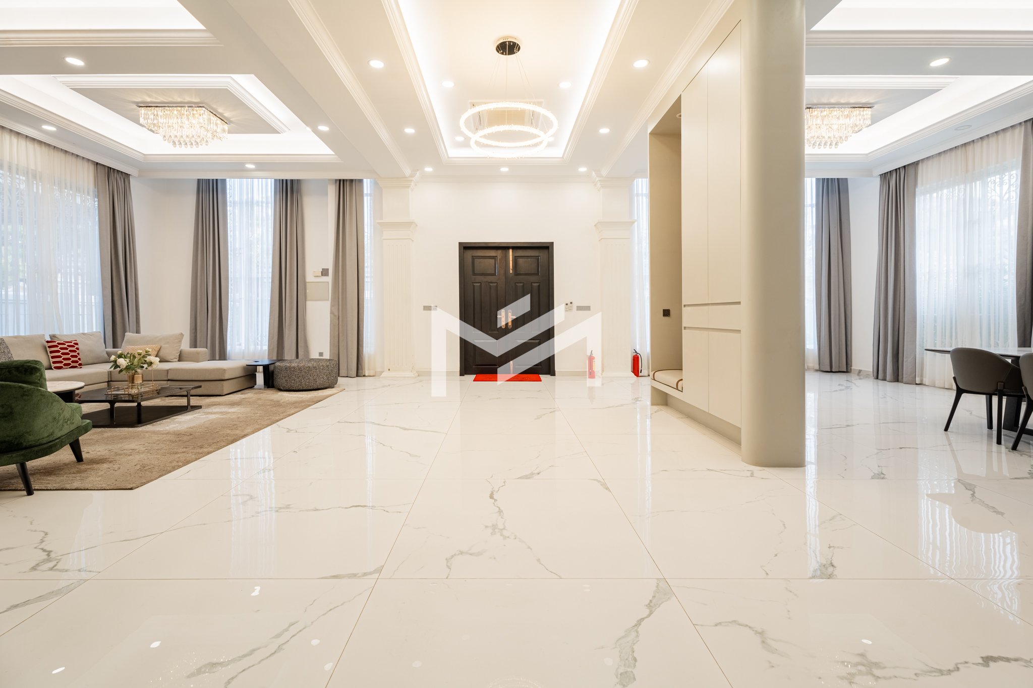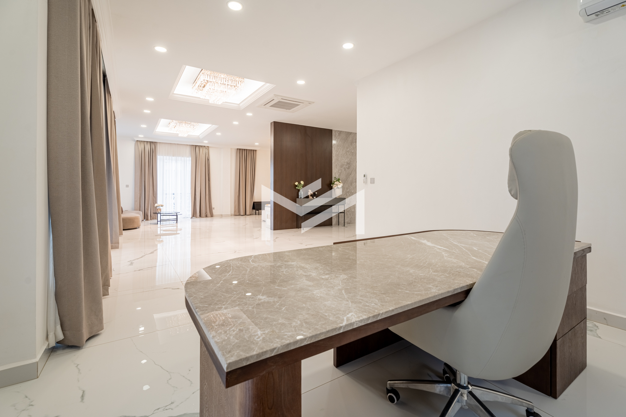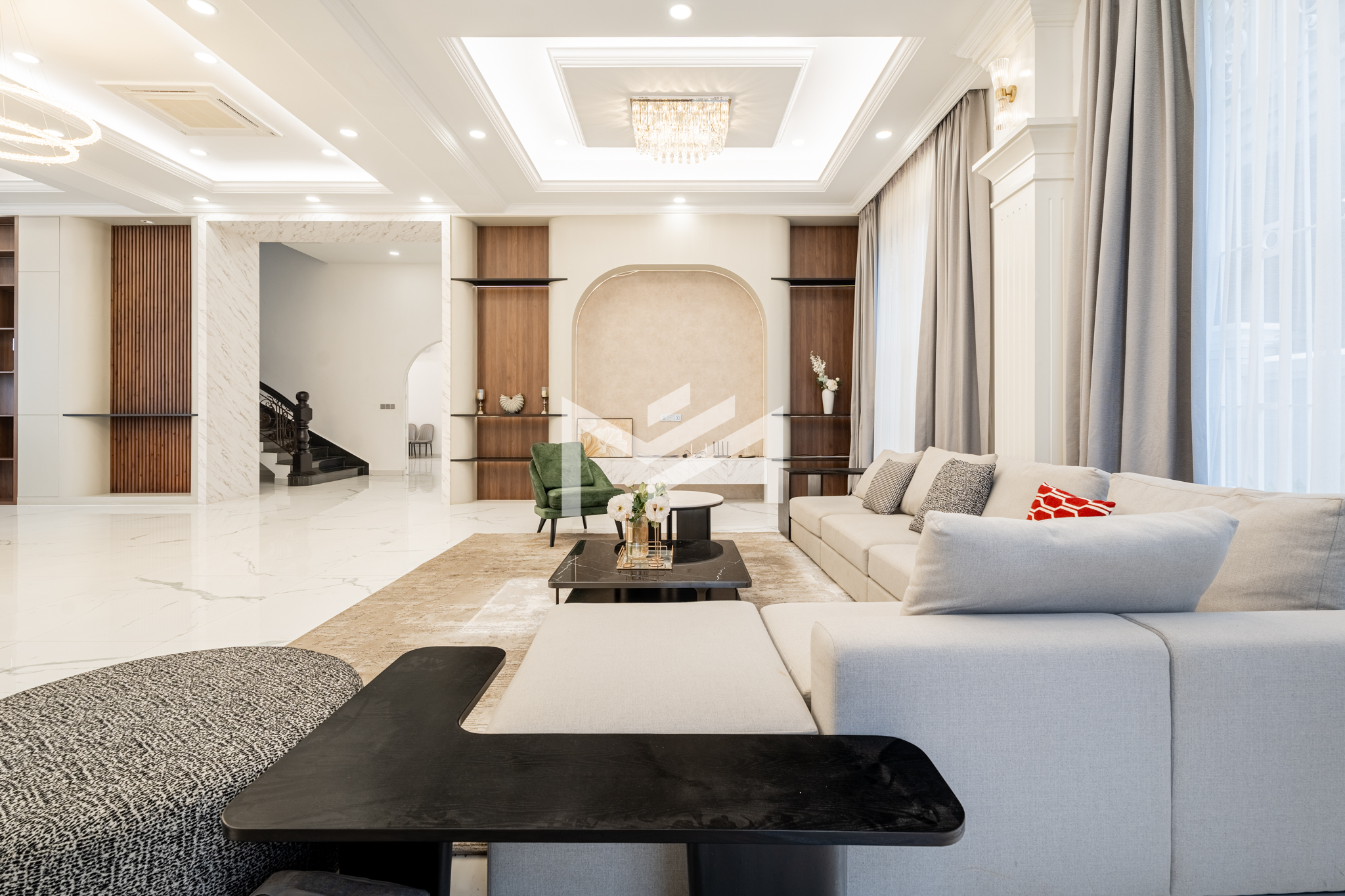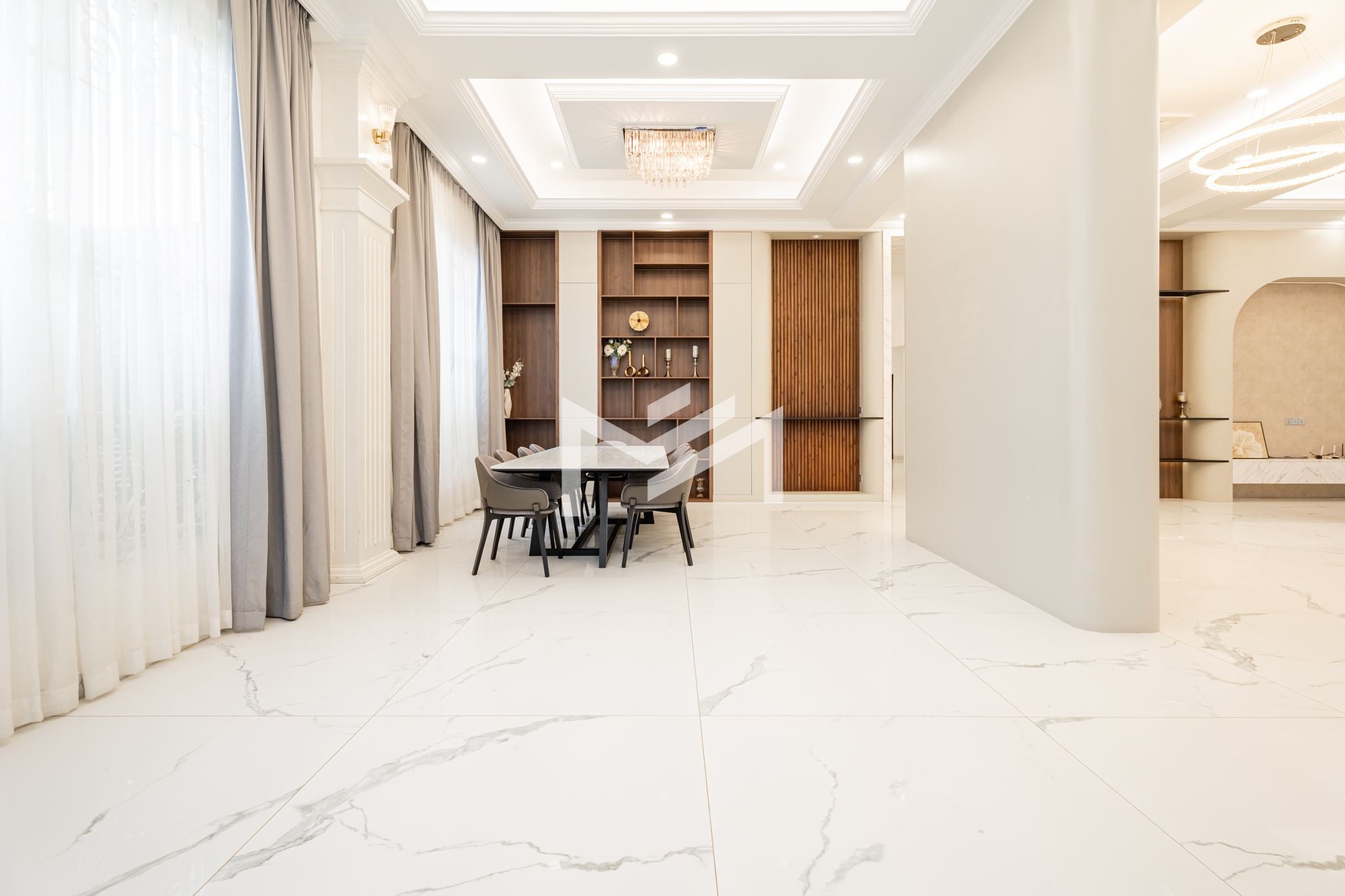 Luxury King Villa for rent in a secured gated community in the north of Phnom Penh, close to AEON Mall 2 and the Ministry of Land. This elegant villa is fully furnished with premium, high-quality furniture and is completely ready to move in. The neighborhood offers 24-hour security, green parks and a peaceful environment suitable for both families and professionals. The location is highly convenient, only about 15 minutes from the Toul Kork area, with easy access to schools, shopping and main roads. Spacious and comfortable, this property is ideal for group sharing or a large family looking for a luxurious home in a safe and well-managed community.