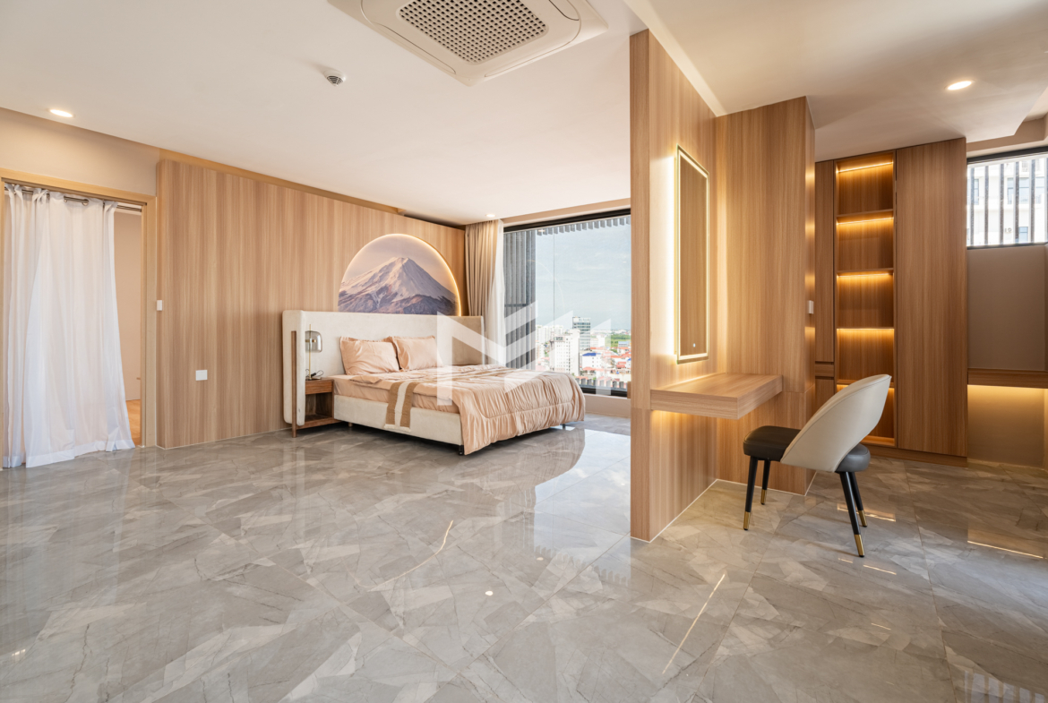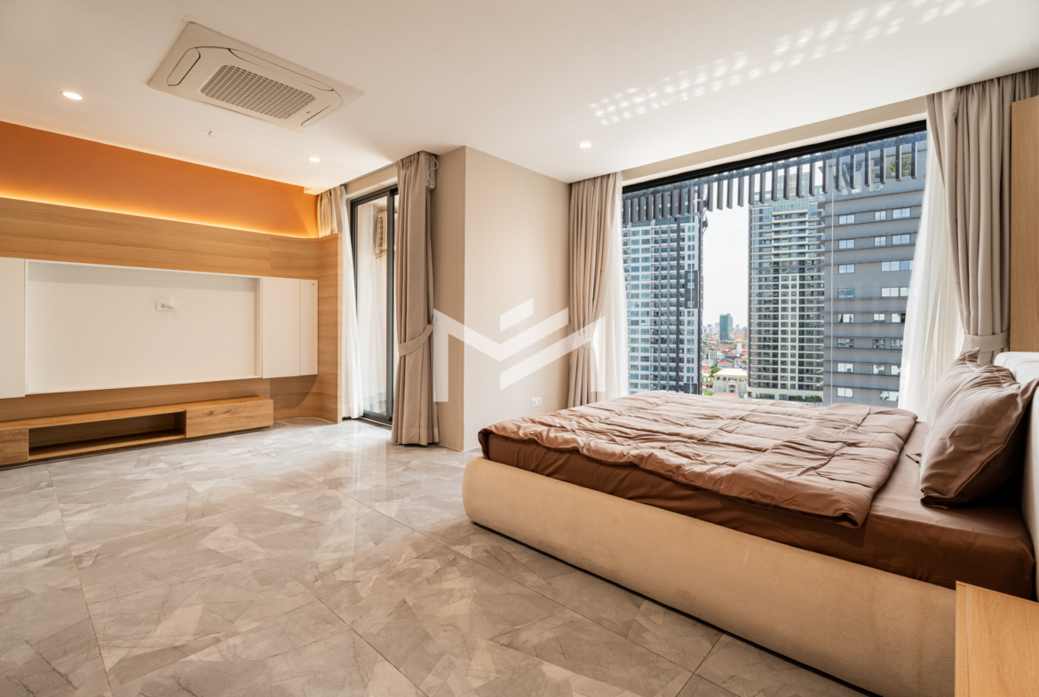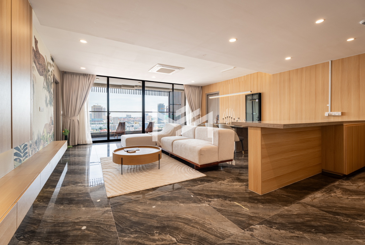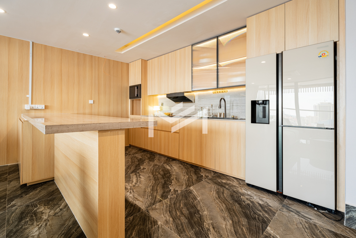 Brand-new luxury one-floor penthouse featuring 5 bedrooms, a grand dining area, and a private entertainment room. Each bedroom is spacious with a large walk-in closet, offering both comfort and style. The unit is fully furnished with marble flooring and a modern western kitchen designed for refined living. Enjoy premium facilities including a gym (17F), rooftop swimming pool (18F), steam room, and sauna—all set within a secure and well-managed residence.