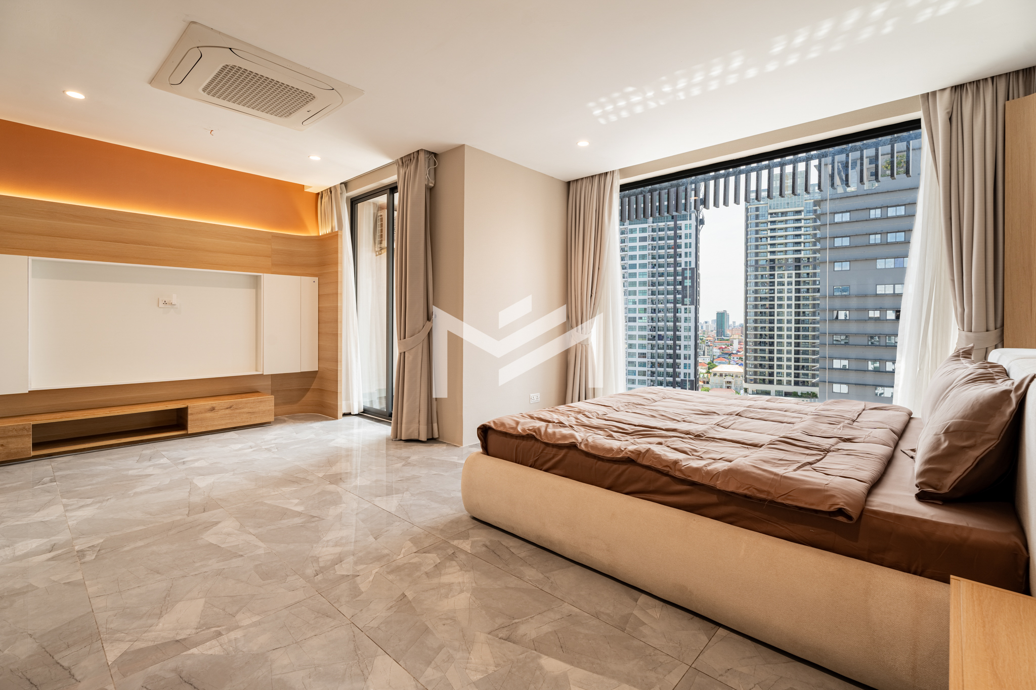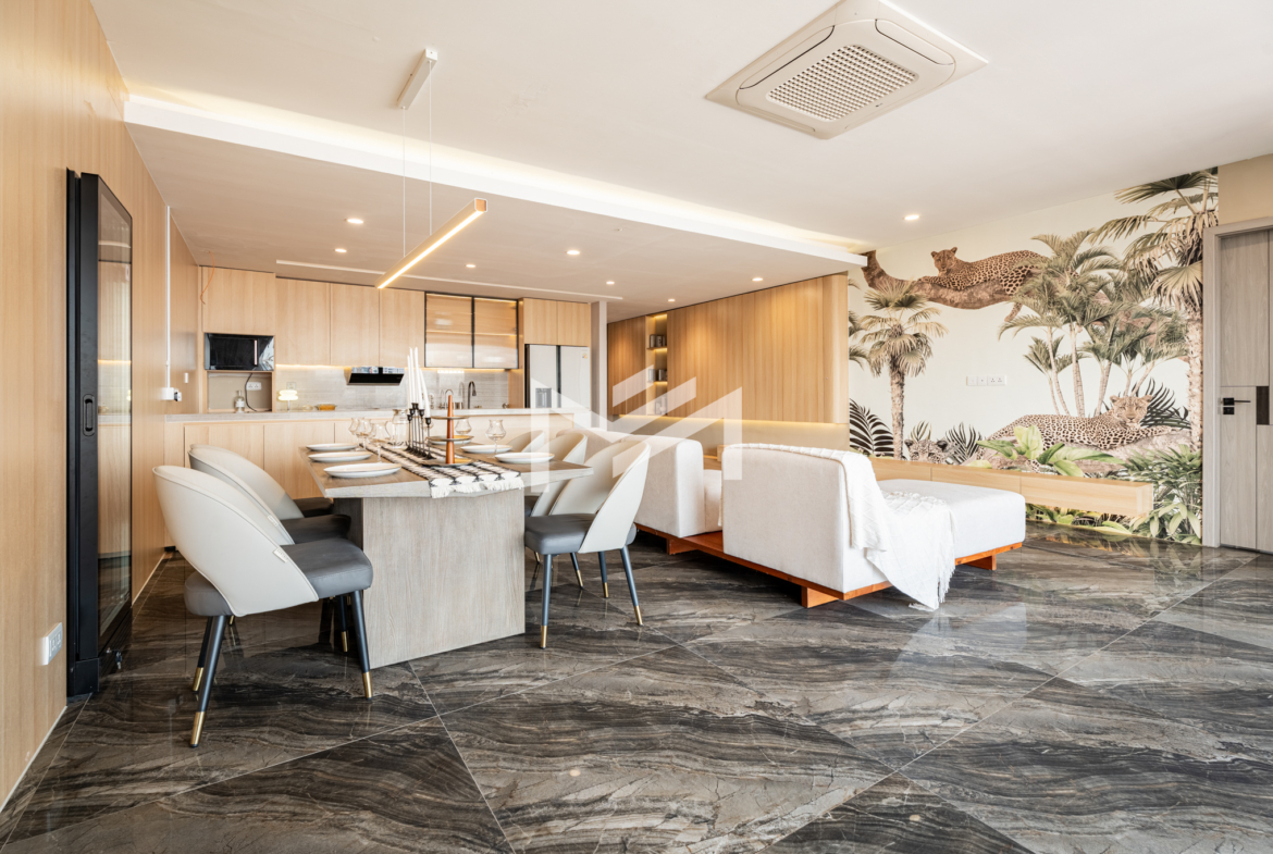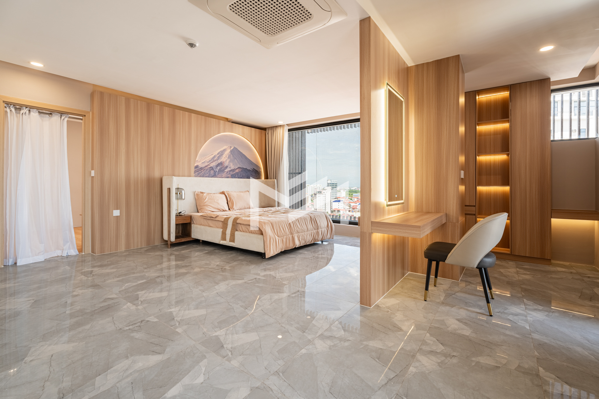 Brand-new luxury one-floor penthouse featuring 5 bedrooms, a grand dining area, and a private entertainment room. Each bedroom is spacious with a large walk-in closet, offering both comfort and style. The unit is fully furnished with marble flooring and a modern western kitchen designed for refined living. Enjoy premium facilities including a gym (17F), rooftop swimming pool (18F), steam room, and sauna—all set within a secure and well-managed residence.