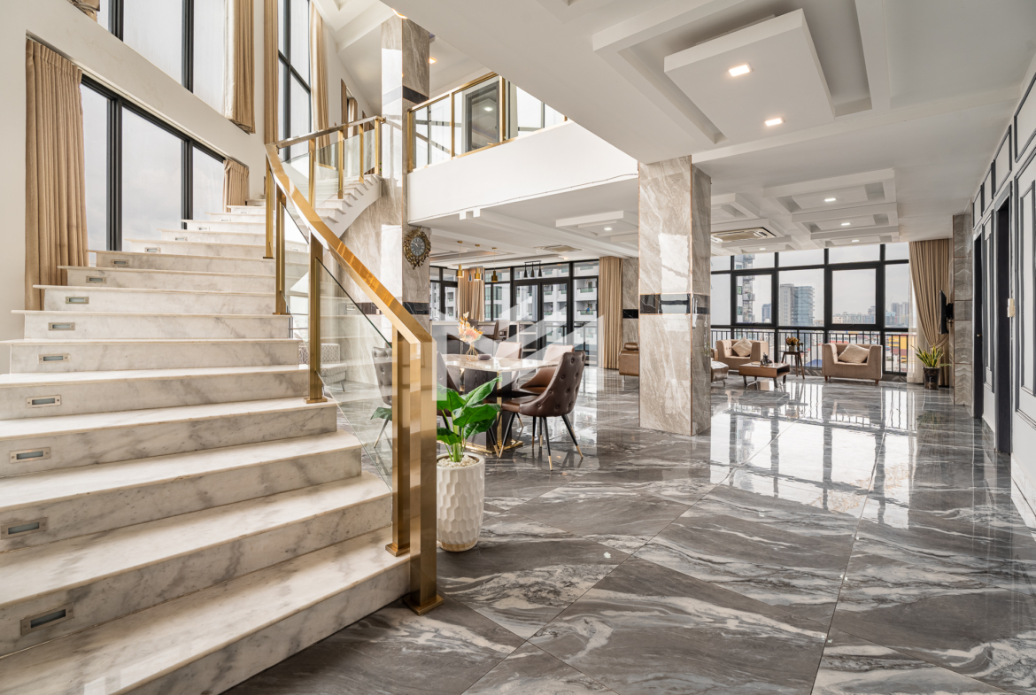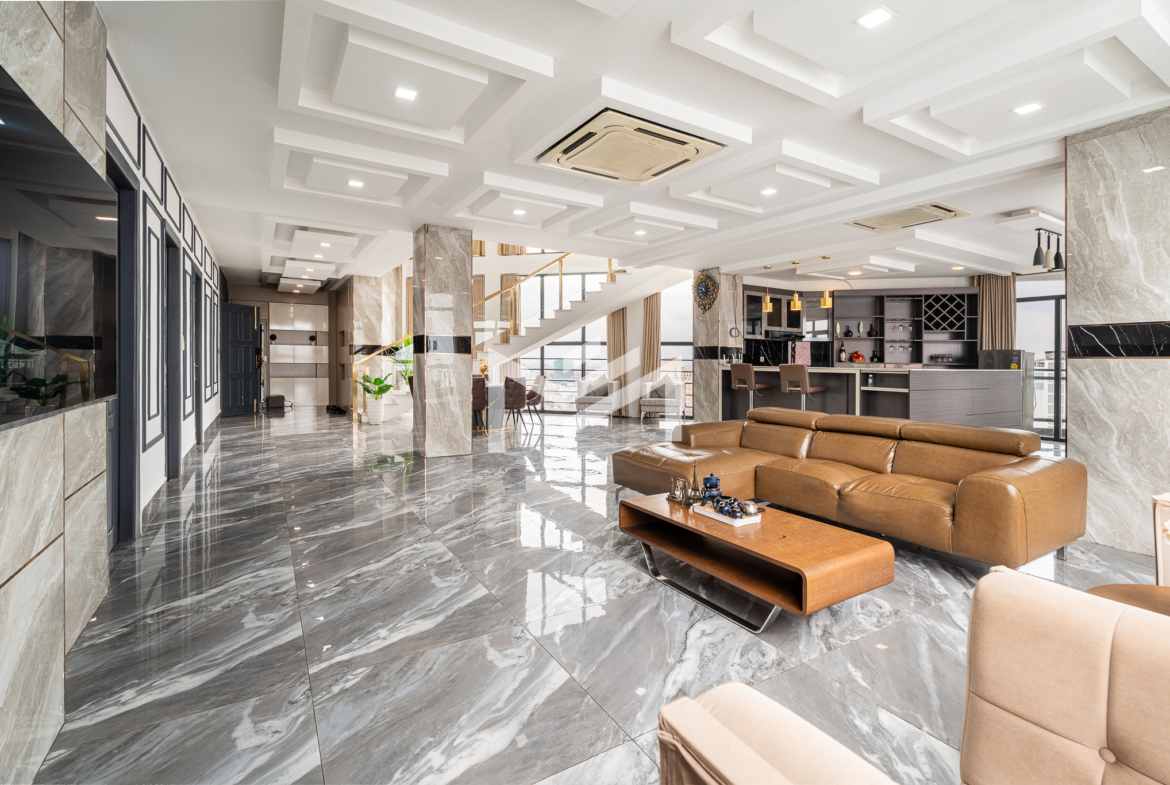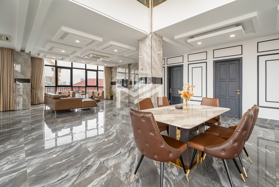 Luxury duplex penthouse featuring 4 bedrooms, fully furnished and offering impressive 360-degree views across the city. The residence includes a modern kitchen, generously sized bedrooms, and large closet spaces, providing both comfort and practicality for long-term living. With its expansive layout and large living spaces, the property is ideal for a big family or team sharing arrangement. Conveniently located near the Russian Market area, residents enjoy easy access to cafés, restaurants, and daily amenities. The building offers quality facilities including a gym, steam room, sauna, and 24-hour security, ensuring a comfortable and secure lifestyle.