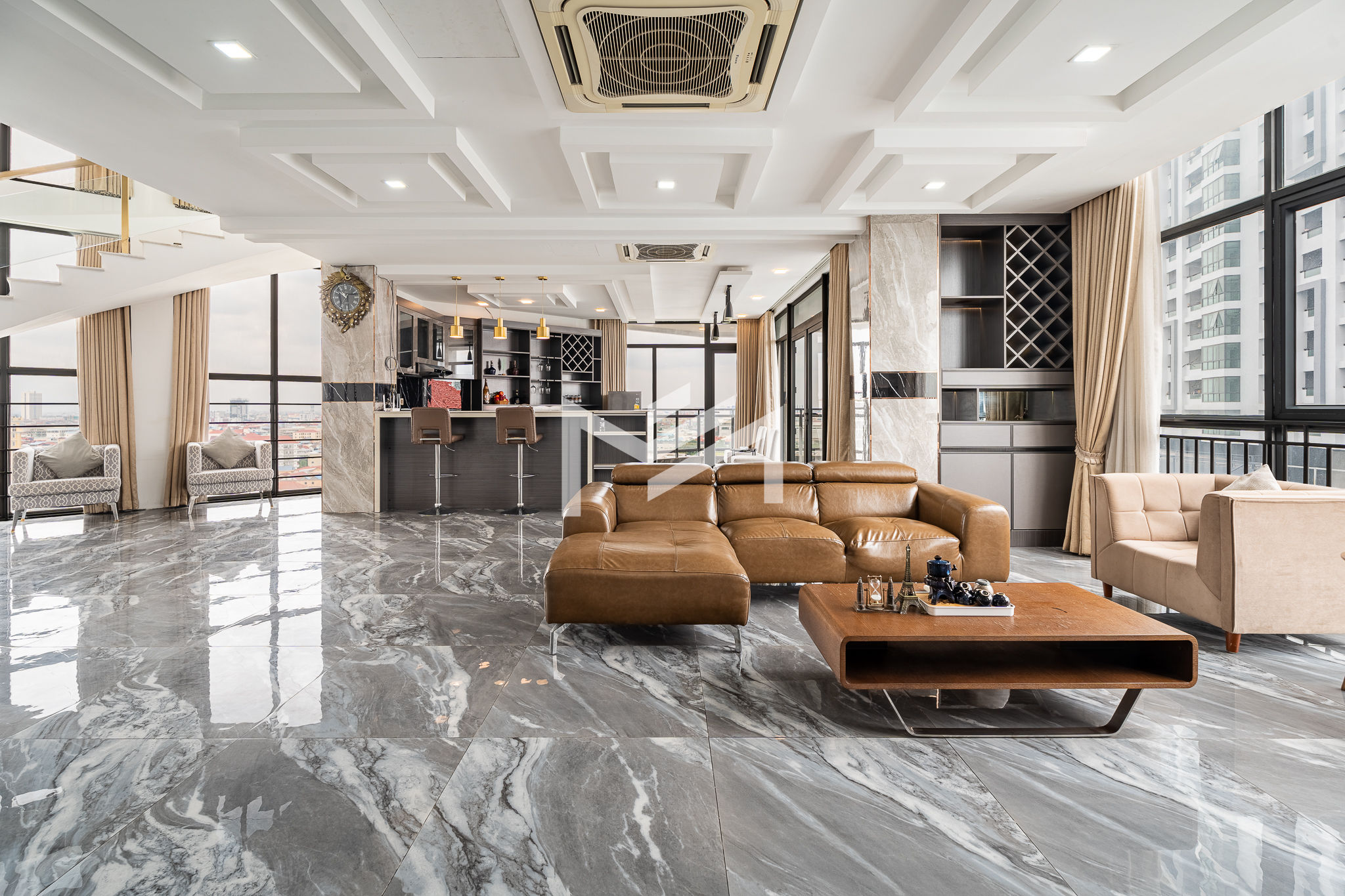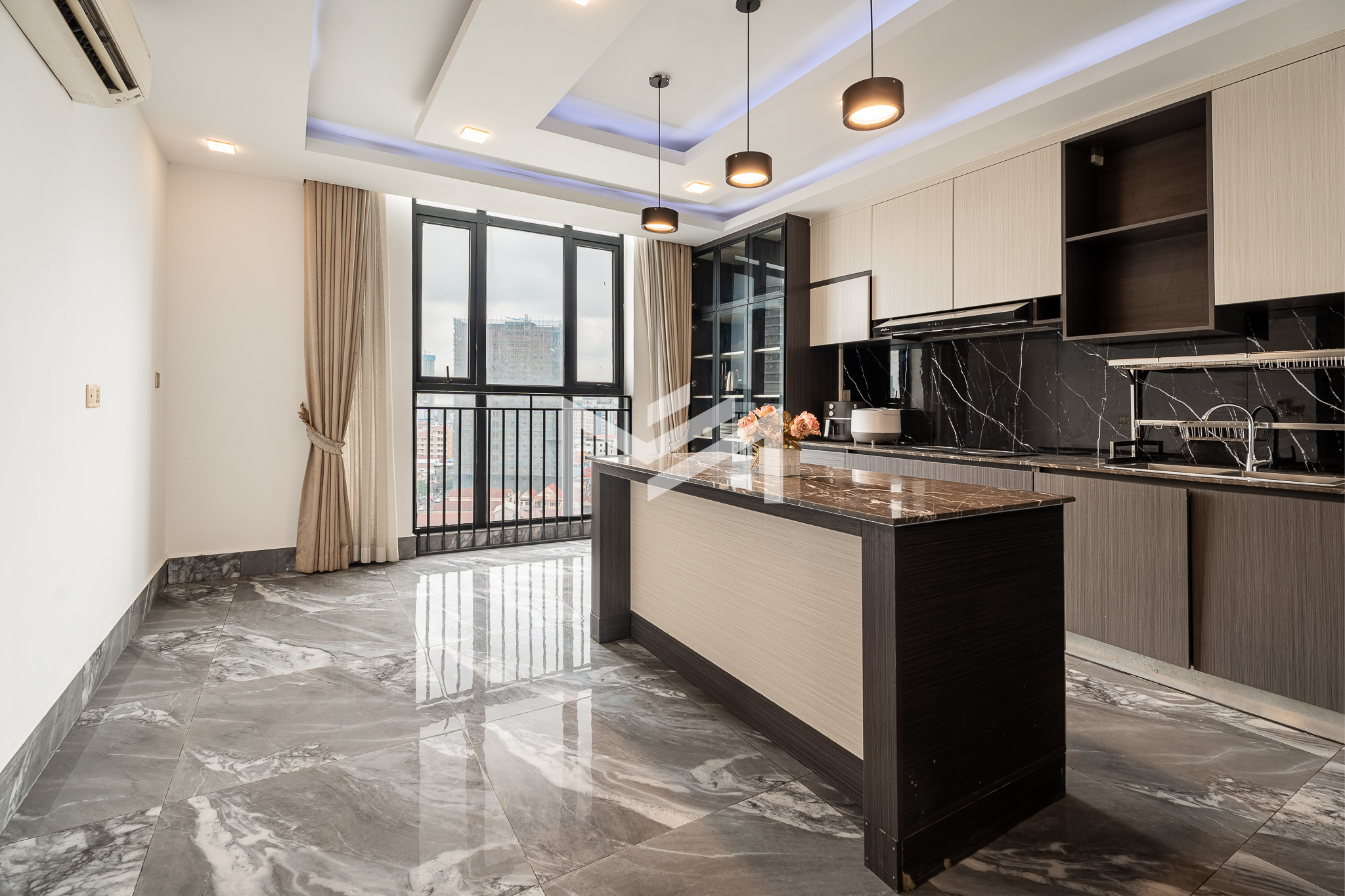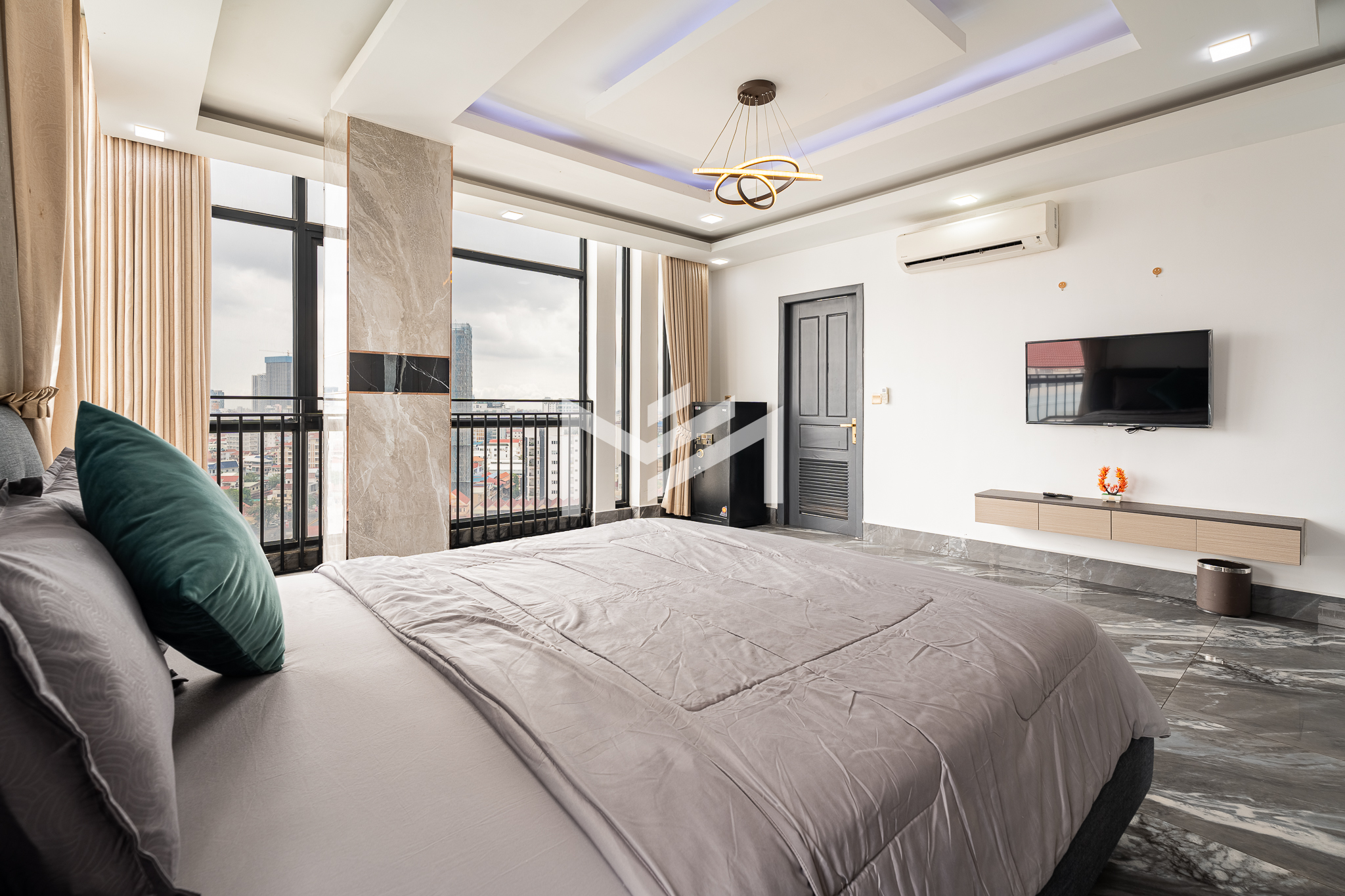 Luxury duplex penthouse featuring 4 bedrooms, fully furnished and offering impressive 360-degree views across the city. The residence includes a modern kitchen, generously sized bedrooms, and large closet spaces, providing both comfort and practicality for long-term living. With its expansive layout and large living spaces, the property is ideal for a big family or team sharing arrangement. Conveniently located near the Russian Market area, residents enjoy easy access to cafés, restaurants, and daily amenities. The building offers quality facilities including a gym, steam room, sauna, and 24-hour security, ensuring a comfortable and secure lifestyle.