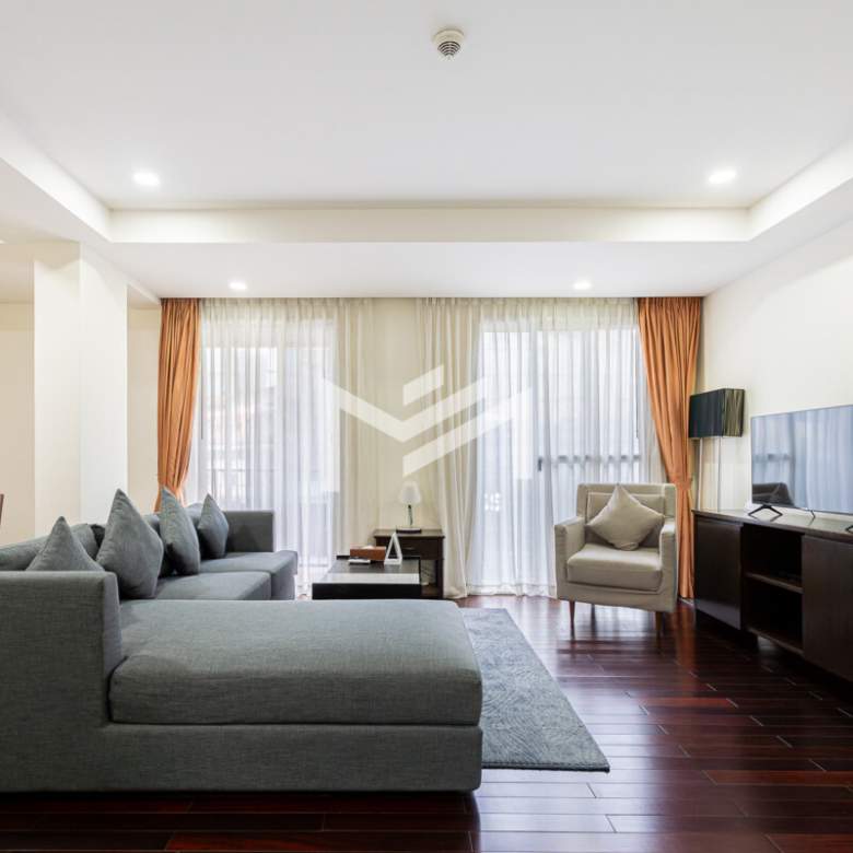This cozy and fully equipped unit is ideal for a couple or a family with 1-2 children. The master bedroom features an attached bathroom, while the second and third bedrooms share a bathroom. Designed for comfort and convenience, this home offers a warm and inviting living space. Located in the CBD, within walking distance to Vattanac Capital and Exchange Square, and just 10 minutes from BKK1.