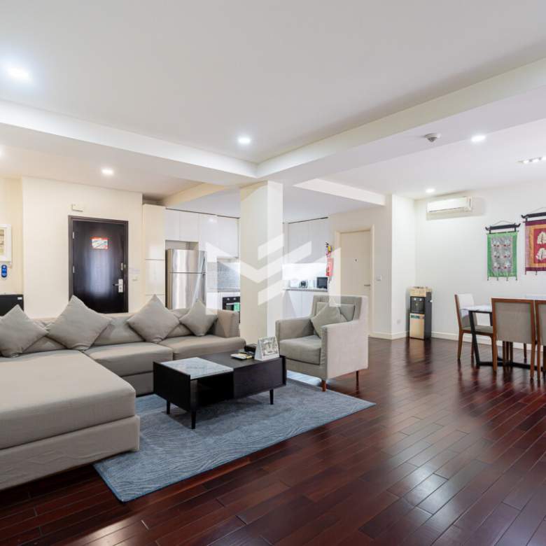 This cozy and fully equipped unit is ideal for a couple or a family with 1-2 children. The master bedroom features an attached bathroom, while the second and third bedrooms share a bathroom. Designed for comfort and convenience, this home offers a warm and inviting living space. Located in the CBD, within walking distance to Vattanac Capital and Exchange Square, and just 10 minutes from BKK1.