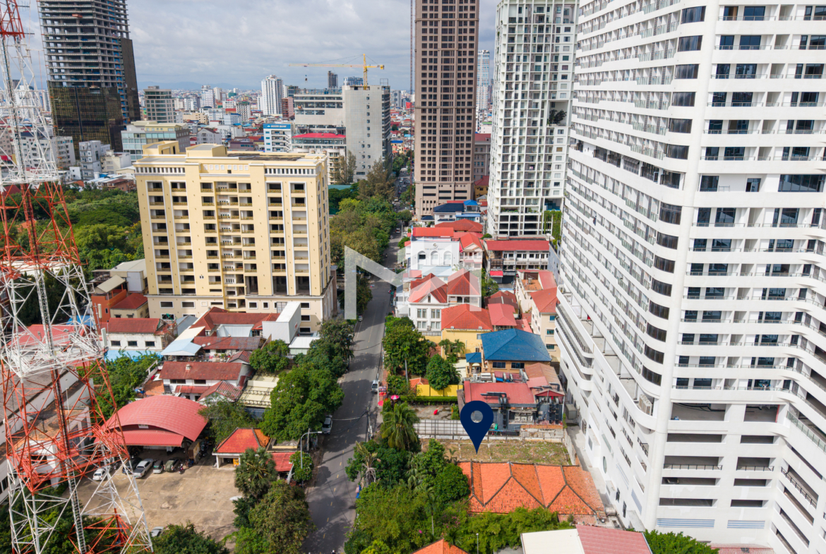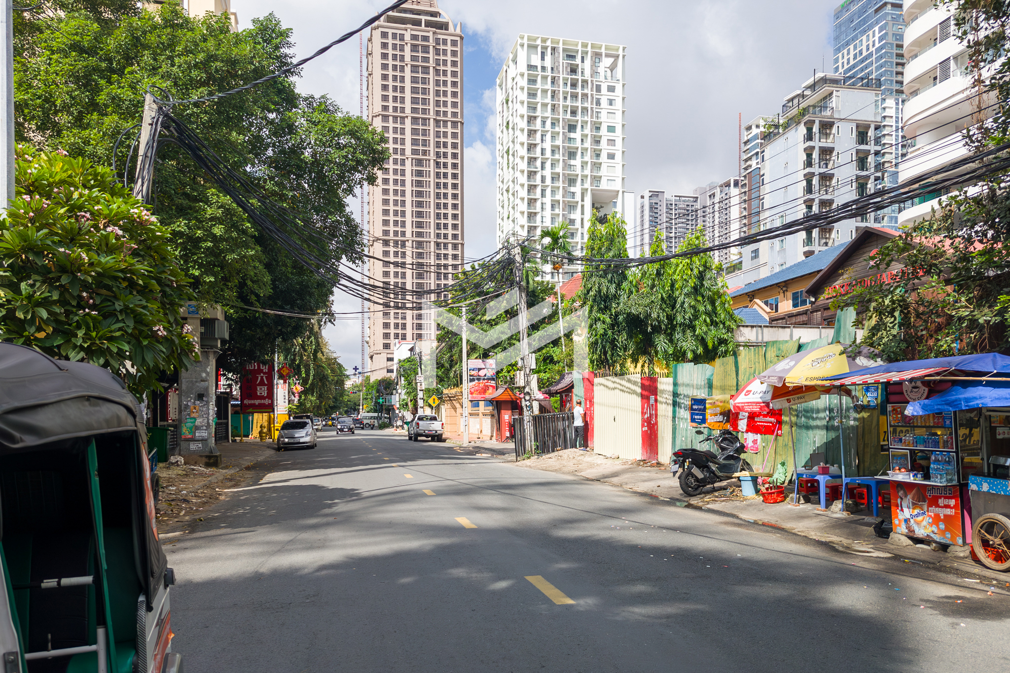 Approximately 594 sqm of commercial land for lease, measuring 18m x 33m. The land is cleared and ready for development, suitable for an outdoor restaurant, showroom, food court, or beverage concept. Long-term lease available for up to 5 years. Located in the heart of BKK1, surrounded by schools, apartments, condos, and retail blocks all within walking distance — a prime high-demand area with steady traffic and strong visibility.