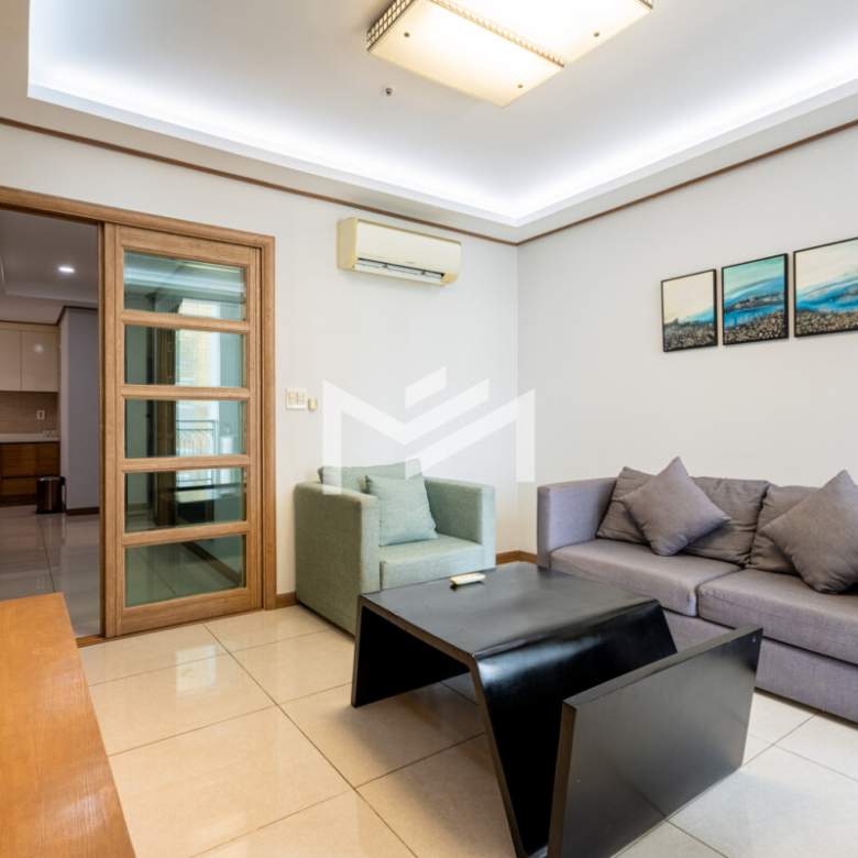 Furnished unit with a practical layout—living room and kitchen separated by a sliding door. The one-bedroom features a built-in oven in the kitchen, a spacious bedroom with a decent closet, and two balconies. Located in the popular expat area of BKK1, the property also includes one parking space.