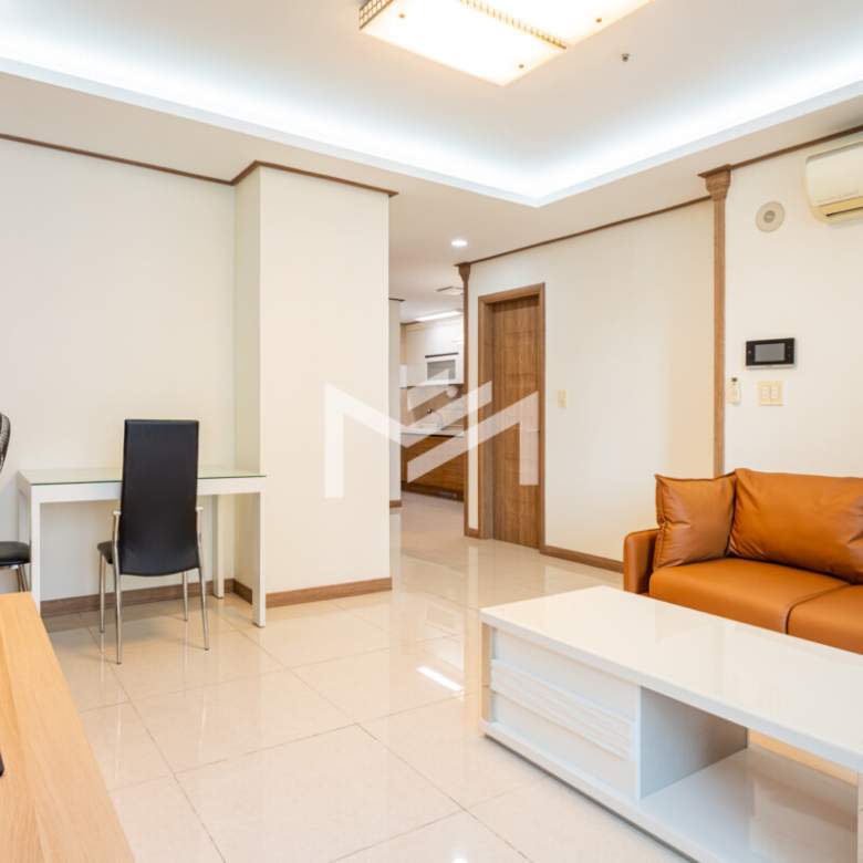 The most compact one-bedroom layout in the building, this east-facing furnished unit offers a practical design with a kitchen, utility room, and private balcony. Located in the sought-after expat area of BKK1, residents enjoy full access to 4th-floor facilities, including an indoor pool, kids’ pool, well-equipped gym, mini-mart, café, playground, and sauna.