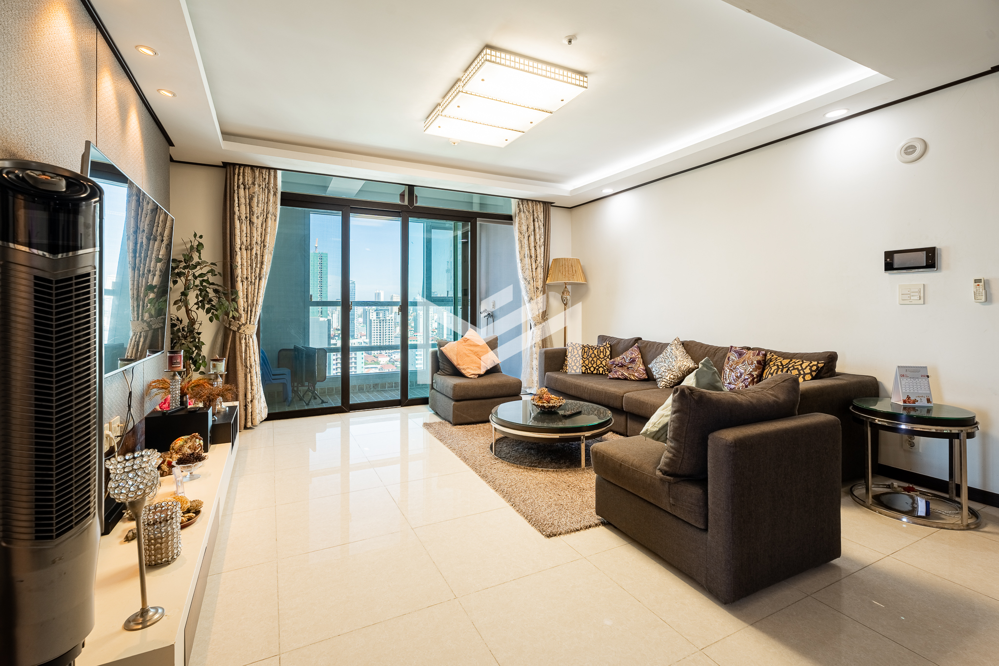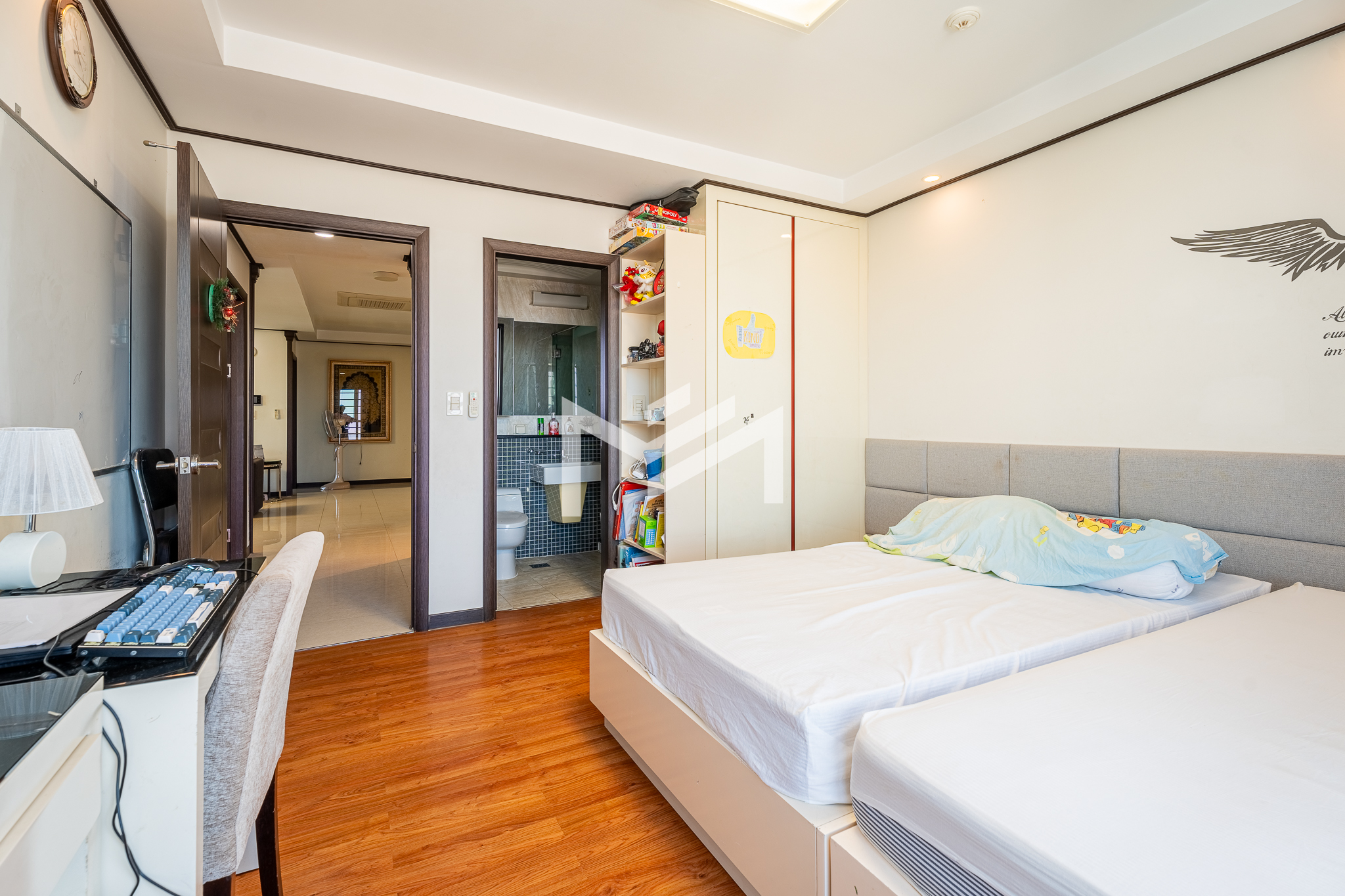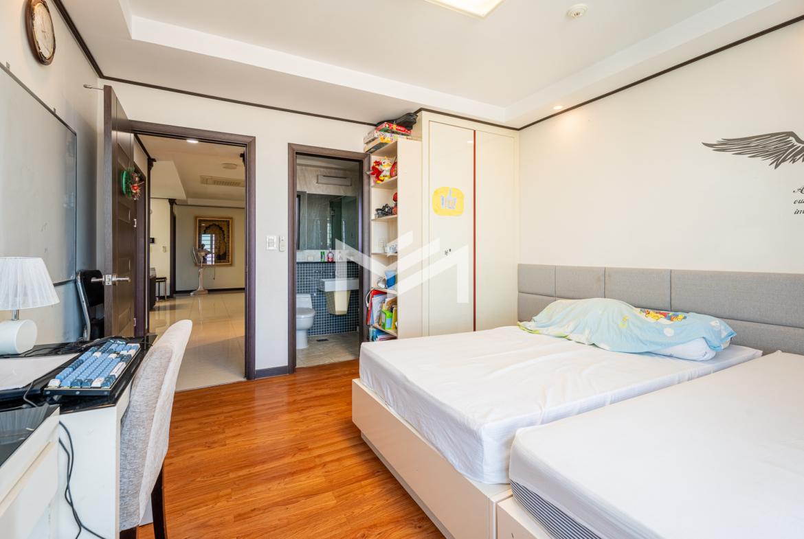 Northwest-facing unit, well maintained and fully furnished, offering 3 bedrooms and 3 bathrooms. The spacious kitchen features an open-or-closed layout option and is complemented by a separate utility area, storage room, and a helper’s room with its own bathroom. The living room connects to a closed balcony, which can be seamlessly integrated into the living space if desired. An additional open balcony is accessible from the third bedroom. Located in a well-managed building with comprehensive facilities on the 4th floor, including a swimming pool, gym, mini-mart, children’s playground, and a rooftop garden—ideal for comfortable family living or long-term residence.