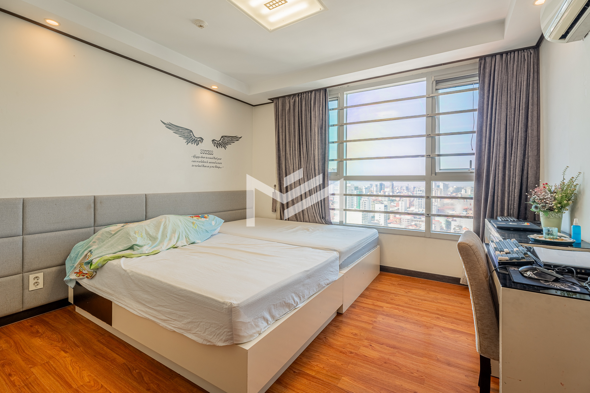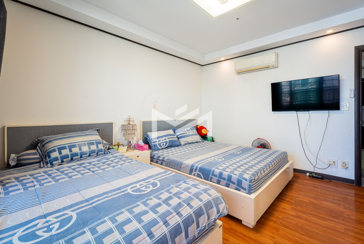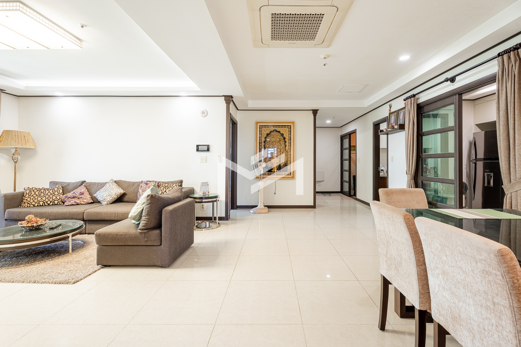 Northwest-facing unit, well maintained and fully furnished, offering 3 bedrooms and 3 bathrooms. The spacious kitchen features an open-or-closed layout option and is complemented by a separate utility area, storage room, and a helper’s room with its own bathroom. The living room connects to a closed balcony, which can be seamlessly integrated into the living space if desired. An additional open balcony is accessible from the third bedroom. Located in a well-managed building with comprehensive facilities on the 4th floor, including a swimming pool, gym, mini-mart, children’s playground, and a rooftop garden—ideal for comfortable family living or long-term residence.