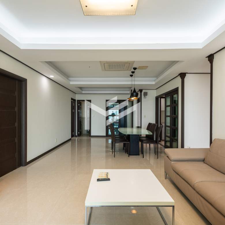 Enjoy a comfortable layout perfectly designed for families with two or three children in this west-facing unit offering a scenic view of Monivong Boulevard. Thoughtfully arranged with a living room situated between each pair of bedrooms, this condo boasts four bedrooms, a closed kitchen, a generous balcony, and ample storage. Additional features include a built-in oven, semi-furnished interiors, and a motivated seller—making this a unique opportunity to secure a hard-to-find four-bedroom condo in the city.
