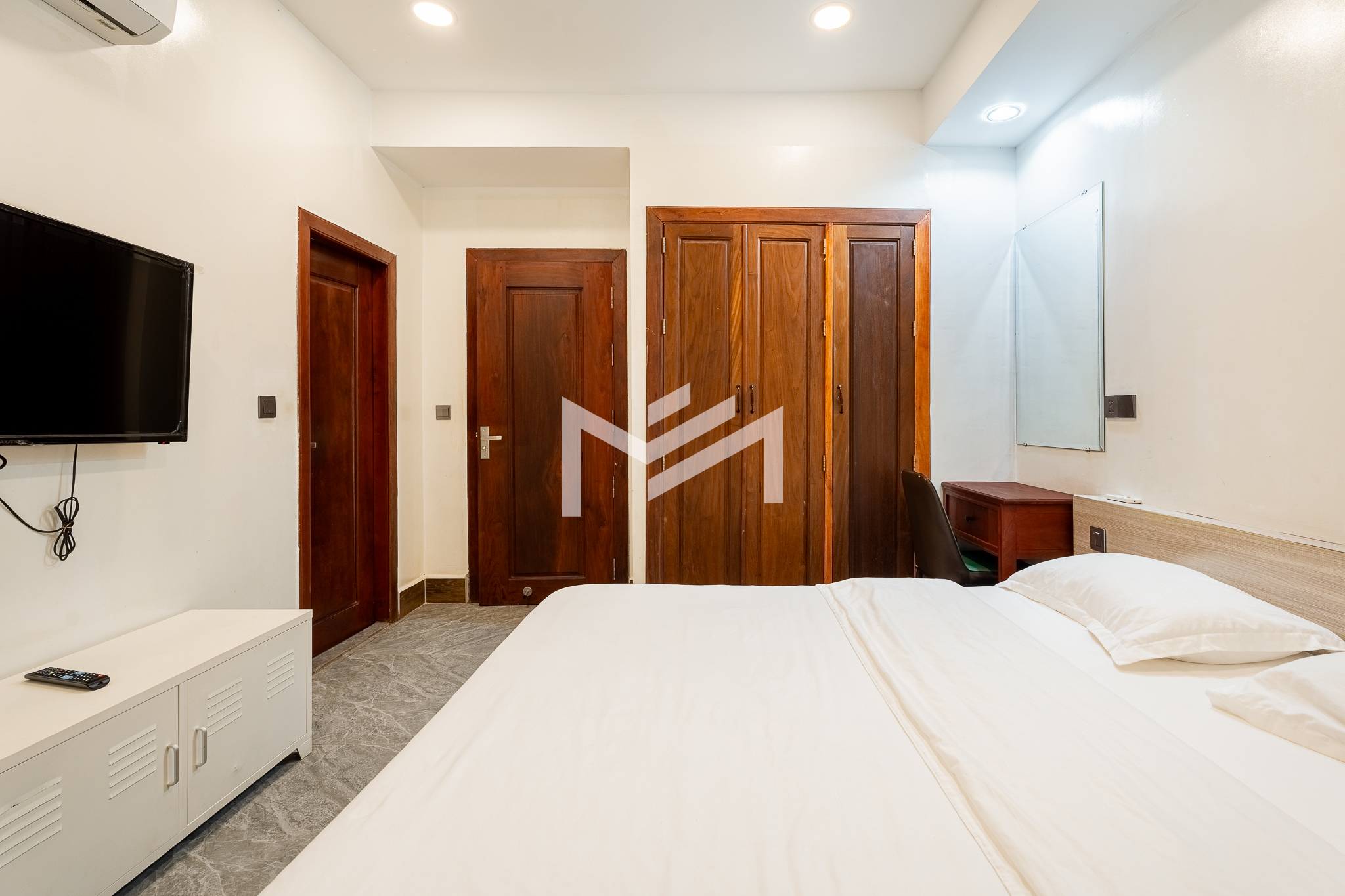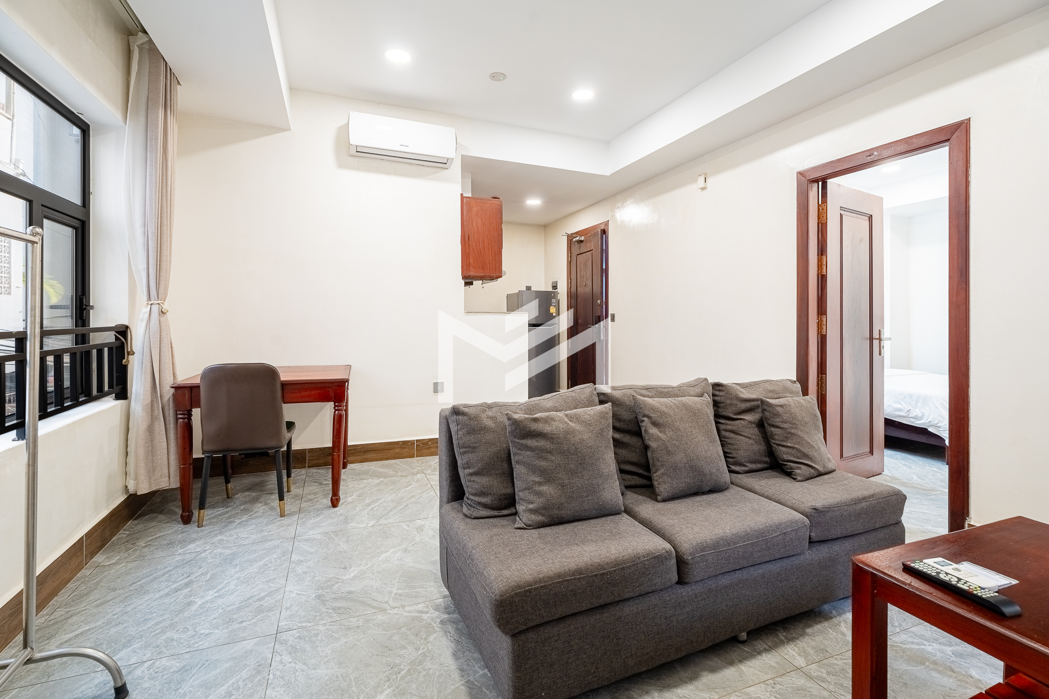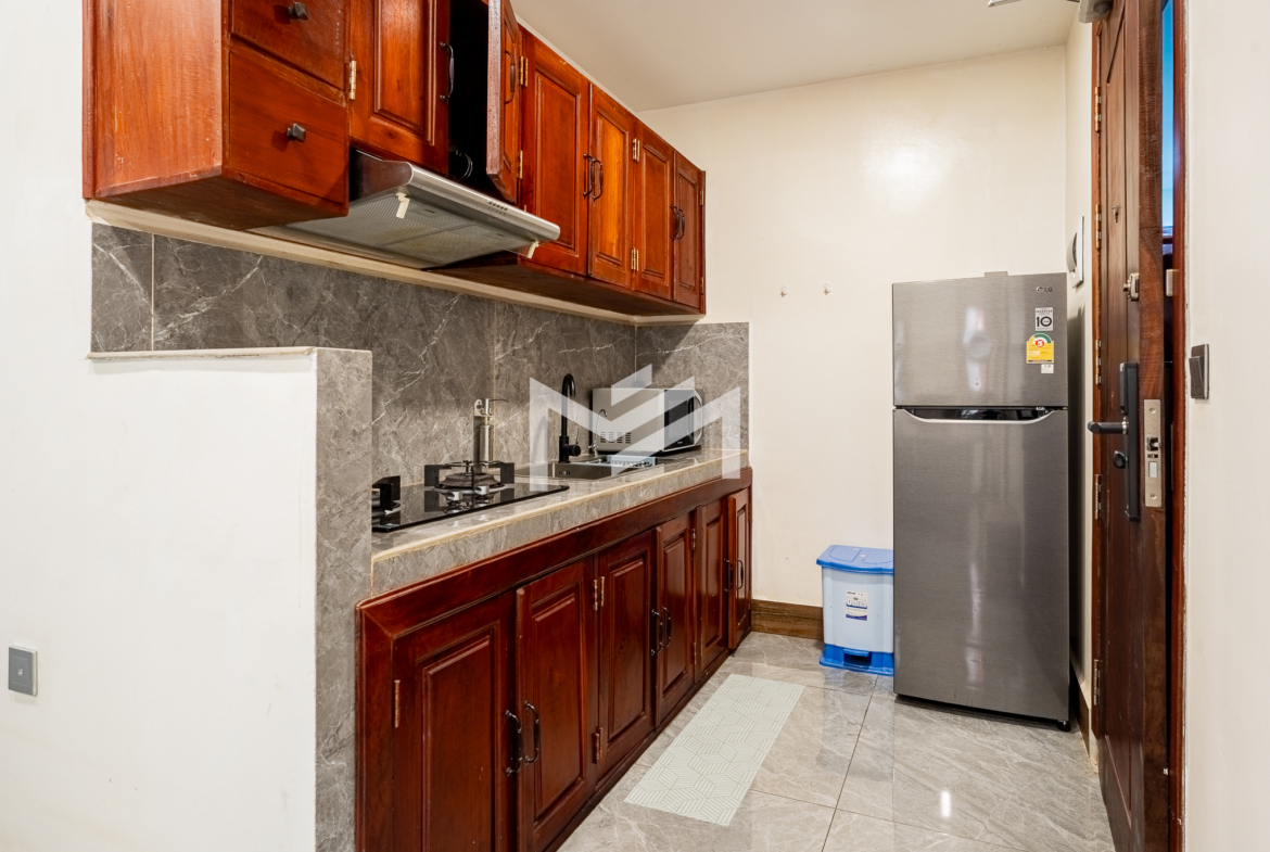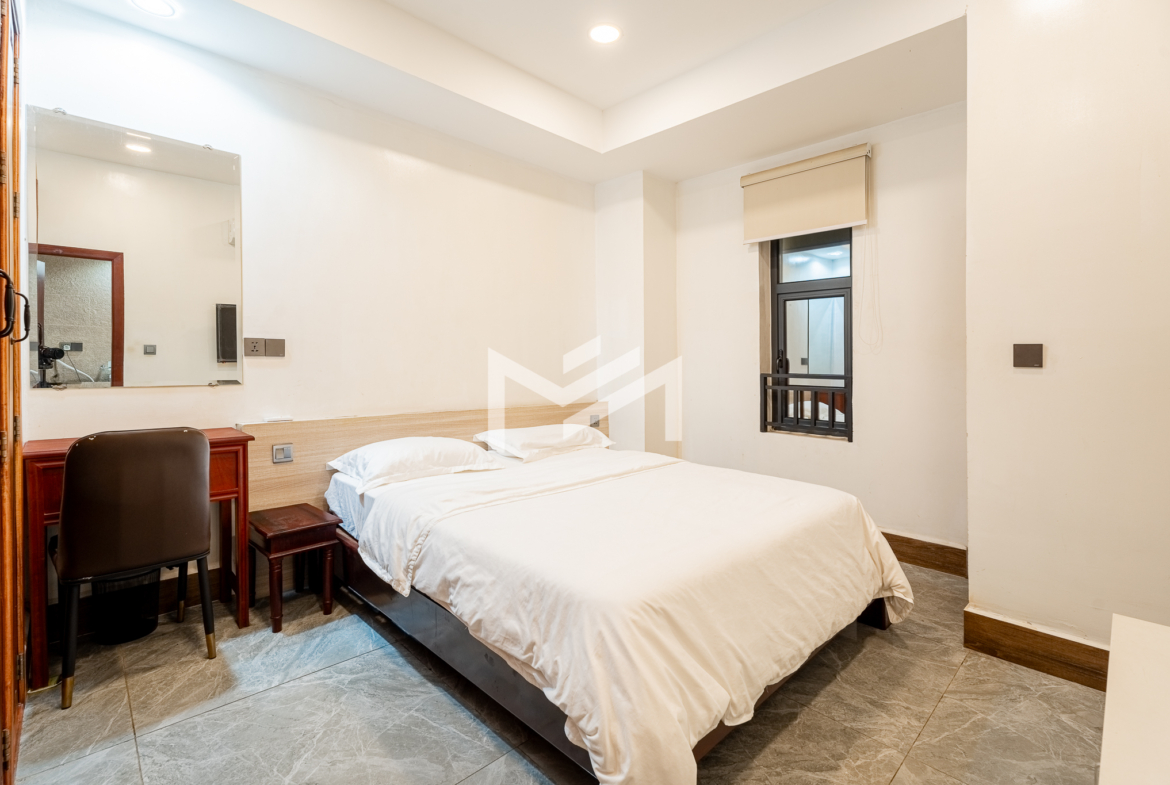 Cozy and fully furnished apartment with rooftop swimming pool, gym, and 24-hour security. Located in a peaceful alley on Street 19Z near the Royal Palace, this unit is suitable for a single tenant or couple seeking an affordable stay in a prime central location, offering both comfort and convenience in the heart of Phnom Penh.
