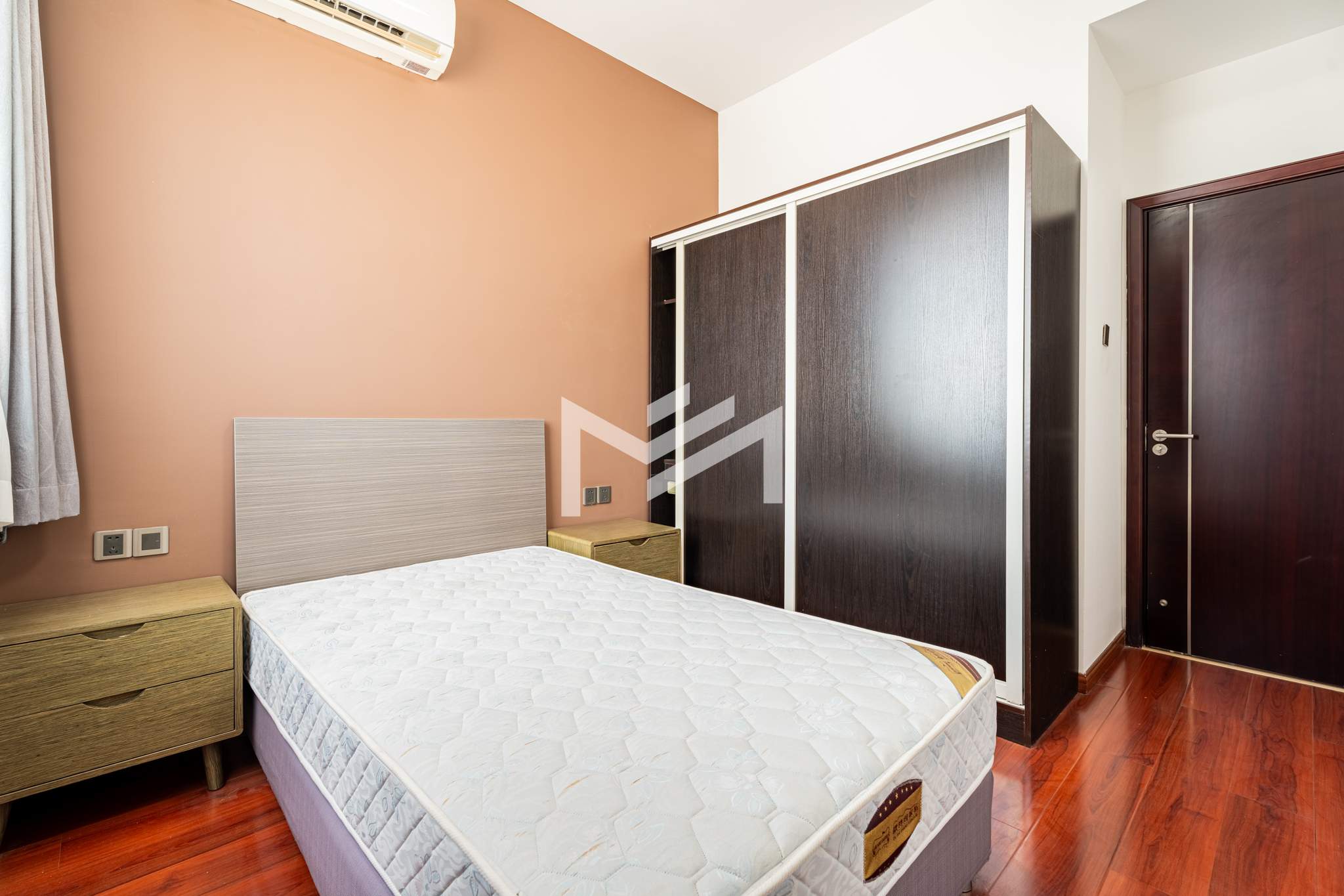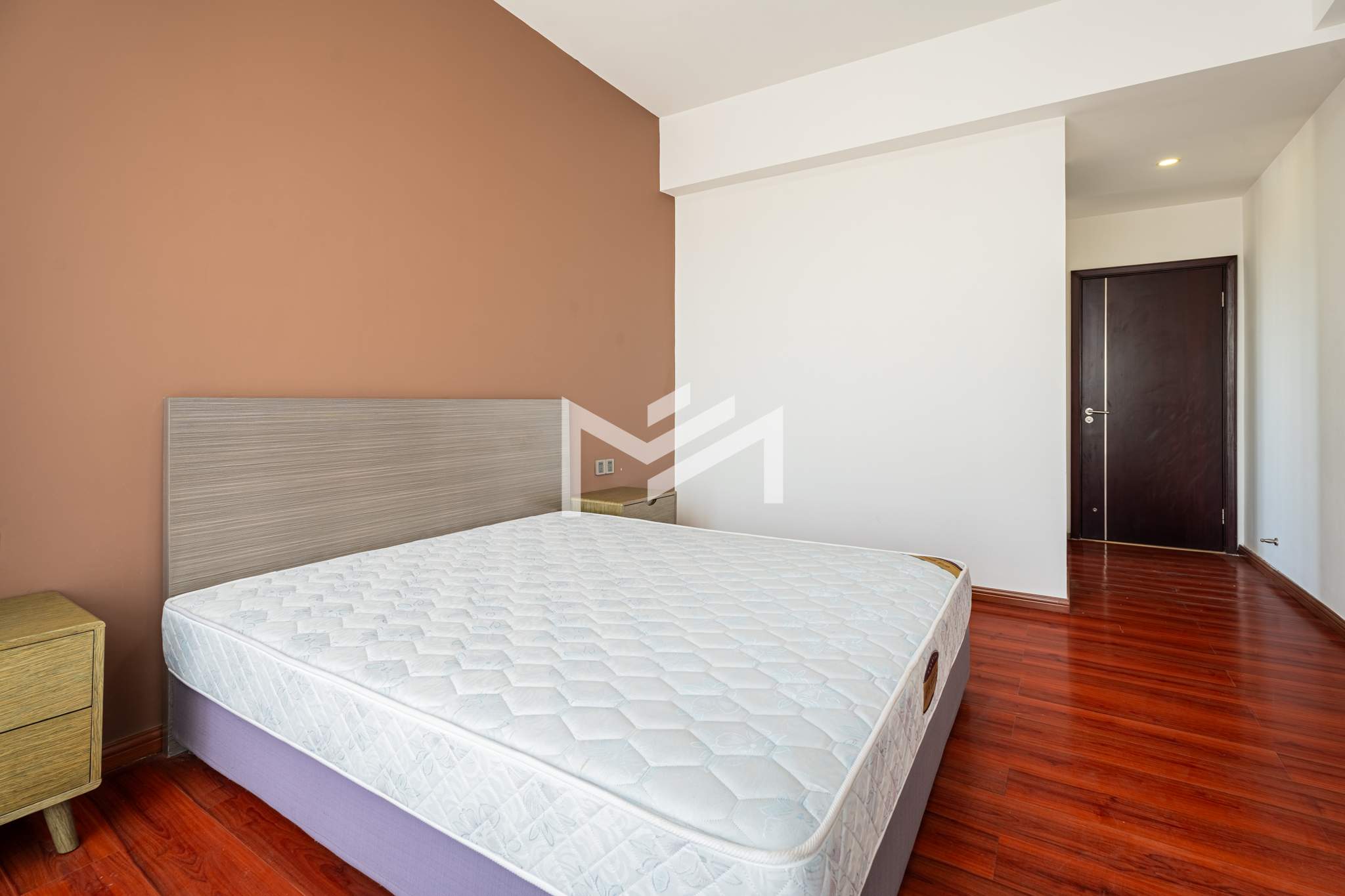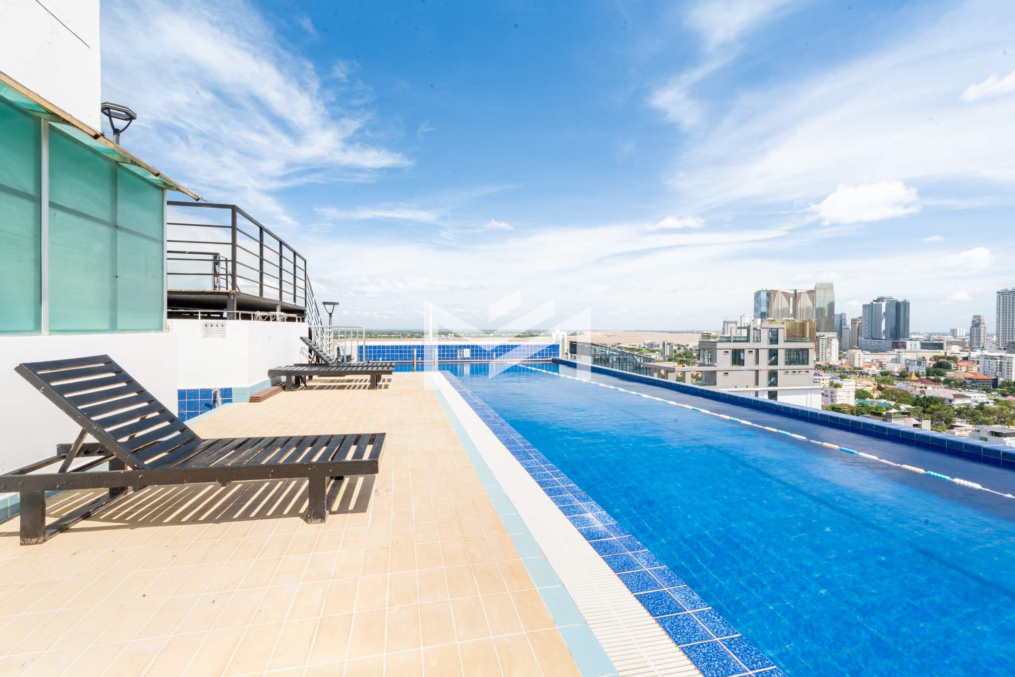 Spacious high-floor corner unit with clear panoramic river and city views. Fully furnished and ready to move in.Located in a prime central area, just 5 minutes from BKK1. Enjoy rooftop gym and pool, backup generator, and 24-hour security—everything you need for convenient city living in the heart of Phnom Penh.