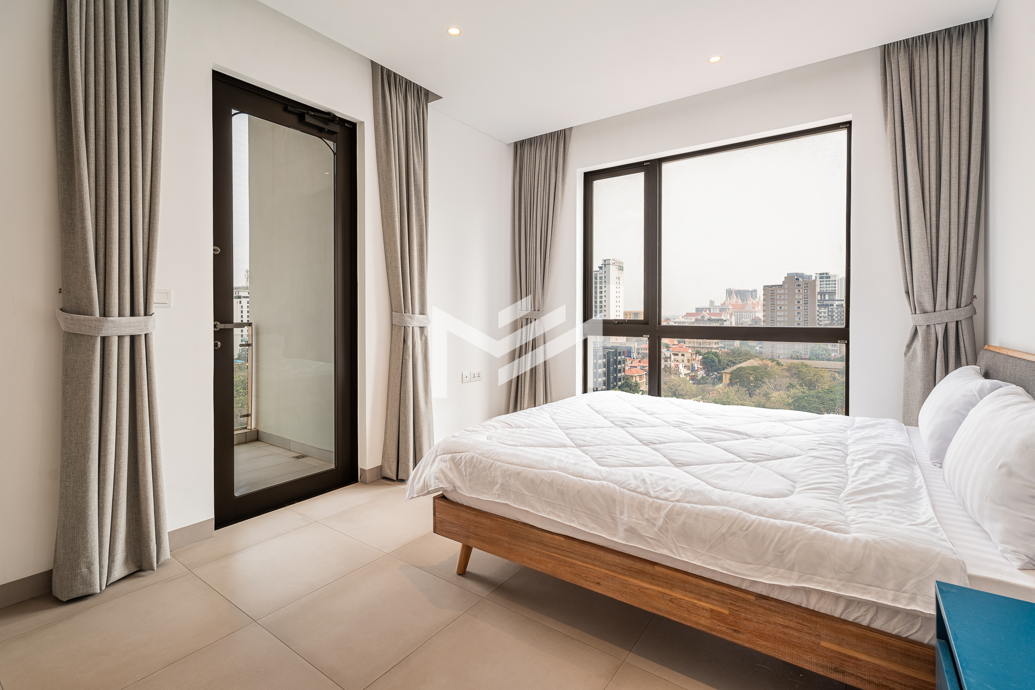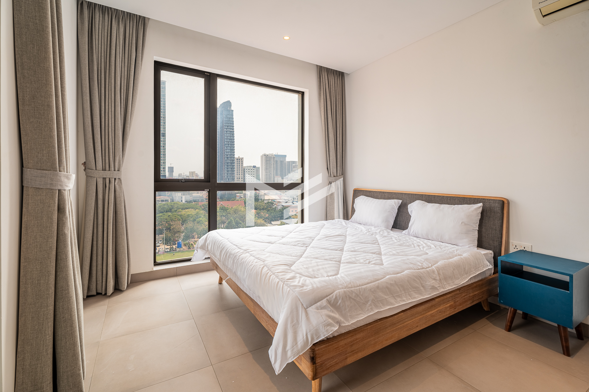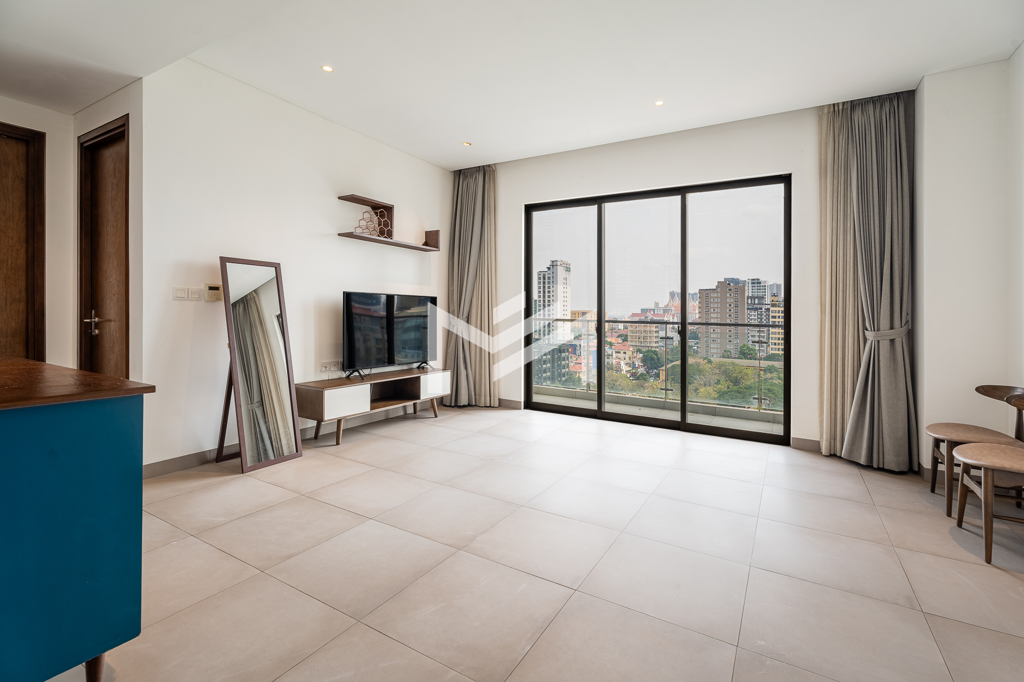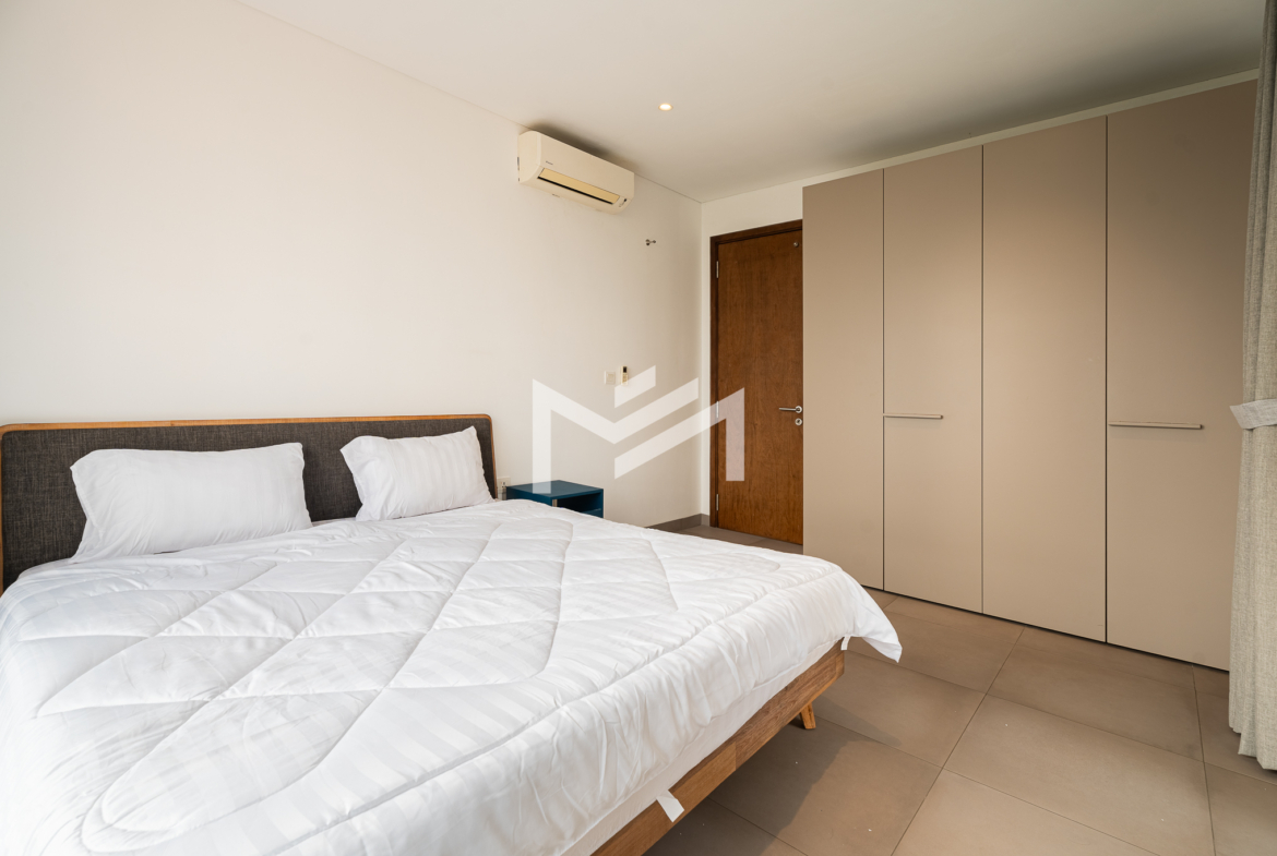 This compact 2-bedroom corner unit enjoys a desirable south and east orientation, allowing for excellent natural light and airflow throughout the day. The layout includes one master bedroom, while the second room can be used flexibly as a guest room or study, making it practical for different lifestyle needs. The unit features a large balcony overlooking a football field, offering open views and a pleasant sunrise setting. It is well suited for a single professional, couple, or a small family seeking comfortable living in a bright and functional space. Centrally located in BKK1, the property provides convenient access to restaurants, cafés, offices, and lifestyle amenities. Residents also enjoy quality facilities including a gym, swimming pool, sunset garden, and sunrise garden, enhancing the overall living experience in one of Phnom Penh’s most sought-after neighborhoods.