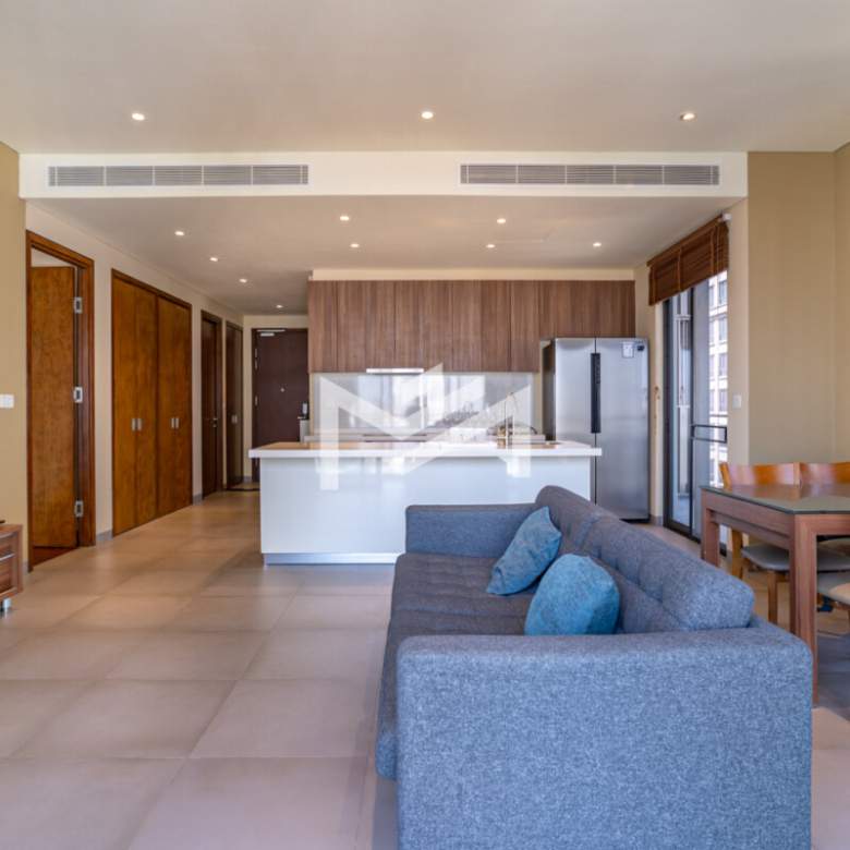 This stunning corner unit features high-end fittings and finishes, with floor-to-ceiling glass walls that invite an abundance of natural light. The expansive balcony provides the perfect space for a patio, reading nook, or a lush green oasis. The large master bedroom boasts wood flooring, a built-in closet, and an en-suite bathroom. The second room is versatile and can be used as a home office or a cozy bedroom with a single bed. The modern kitchen is designed for both style and functionality, featuring a spacious island, a built-in oven, and ample storage space. Additional storage is also available for cleaning equipment and household essentials. Located in an expat-friendly neighborhood, this apartment offers ultimate convenience with shops, cafés, and daily necessities just steps away—no vehicle needed.