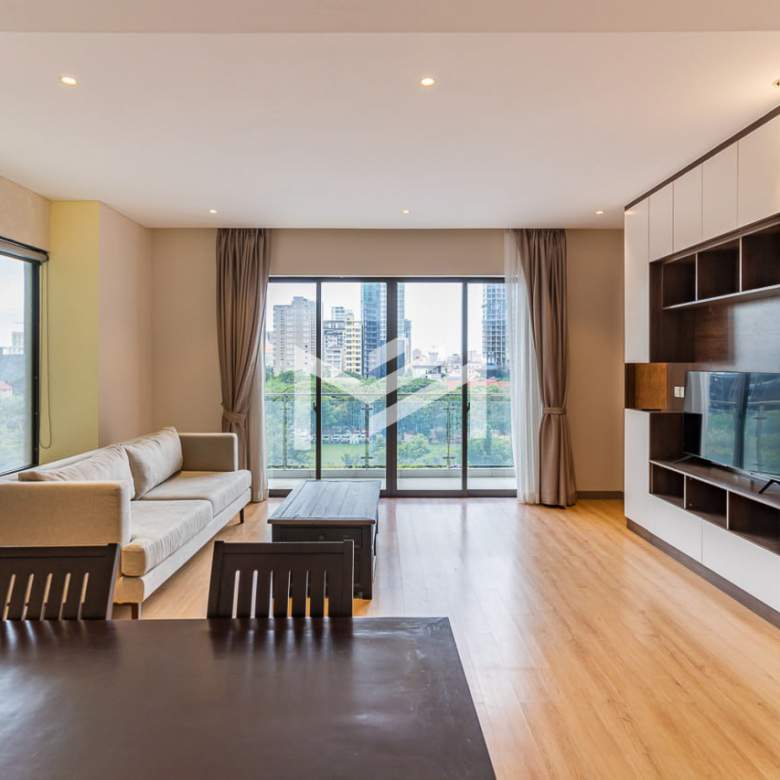 Situated in the heart of BKK1, this stylish corner unit offers a perfect blend of comfort and convenience. Featuring beautiful wood flooring throughout, the space is designed for a warm and inviting atmosphere. The modern western kitchen is well-equipped, making meal preparation a pleasure. A spacious wardrobe area provides ample storage, ensuring a clutter-free living environment. The private balcony offers a relaxing outdoor space with great views. Located in the vibrant expat-friendly community of BKK1, residents enjoy easy access to a wide range of shops, restaurants, cafés, and essential services. This is an ideal home for those seeking a prime location with modern comforts.
