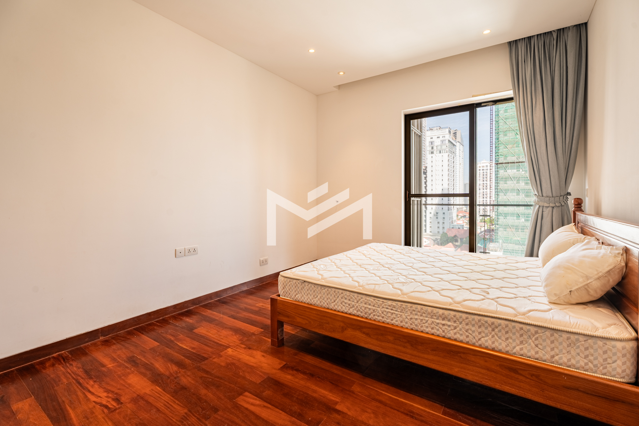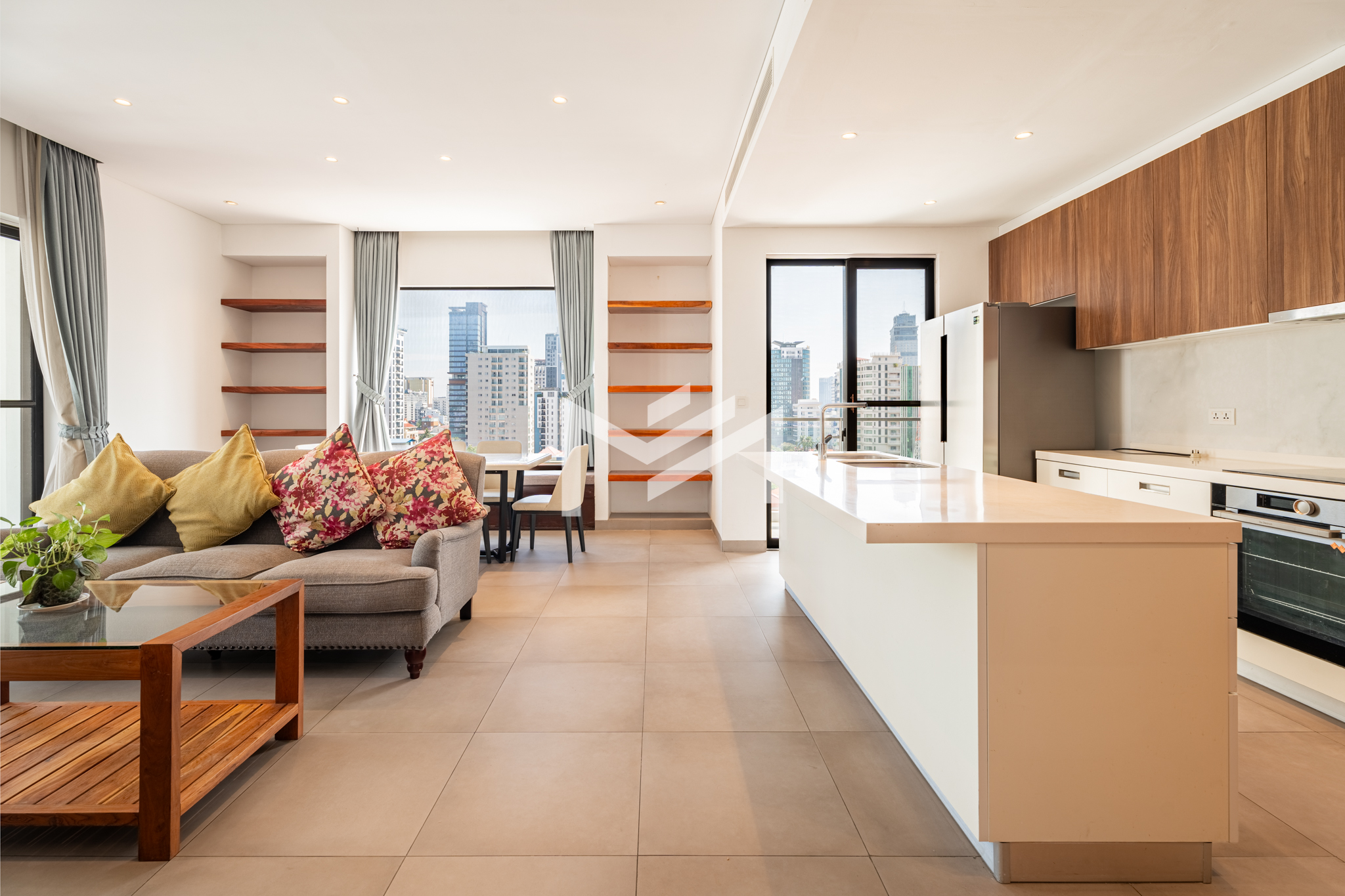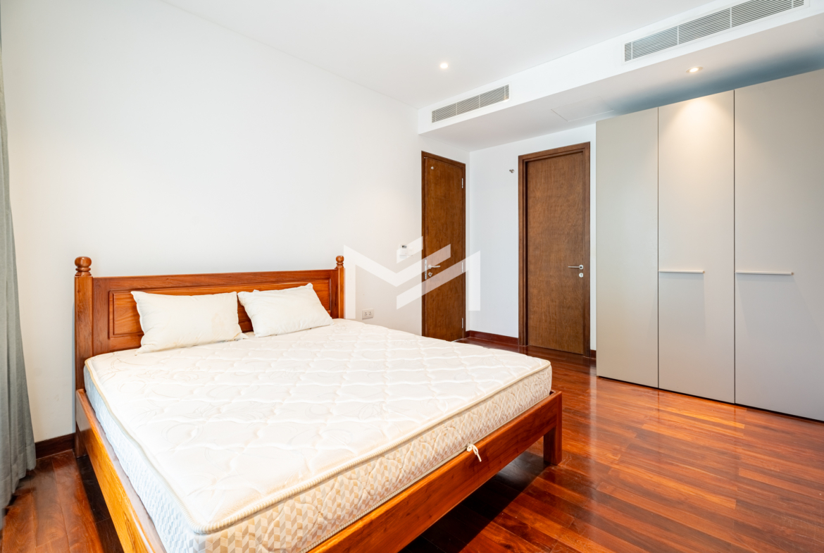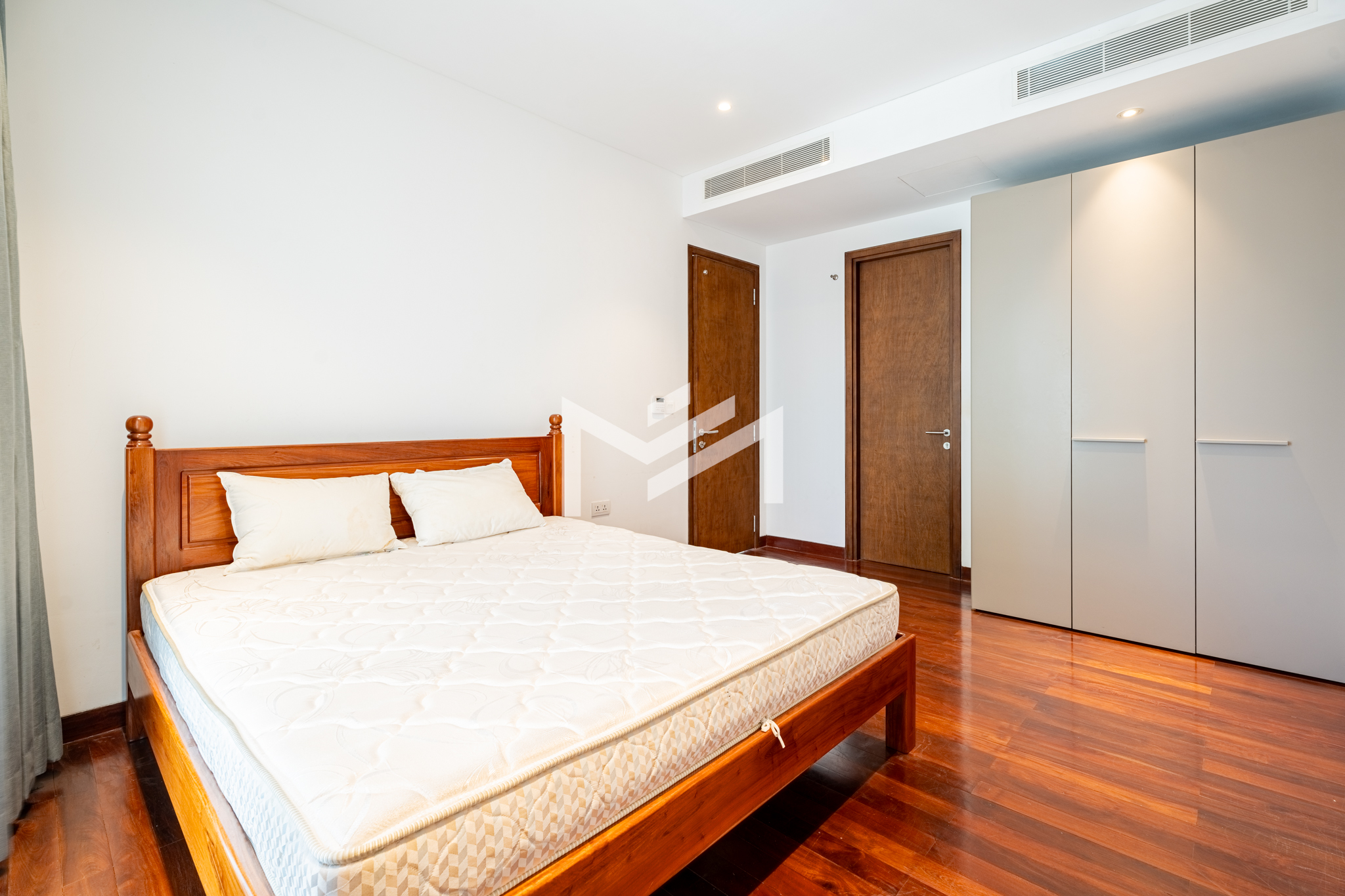 This corner unit in BKK1 offers a spacious living room and a large balcony facing north and east, allowing the home to enjoy full morning sun and natural brightness throughout the day. The kitchen is generous in size and comes with a built-in oven, a kitchen island and ample workspace, along with a dedicated storage area for cleaning equipment. The master bedroom features wooden flooring and a large closet space, while the second room is ideal for a single bed or can be used as a study. Located on a floor with full facilities, residents can enjoy the gym, swimming pool, kids’ area, and beautiful sunrise and sunset garden spaces on the 5th floor. The unit also includes one parking lot and sits in the heart of BKK1, an expat-friendly neighborhood known for its convenience, cafes, restaurants and urban lifestyle.