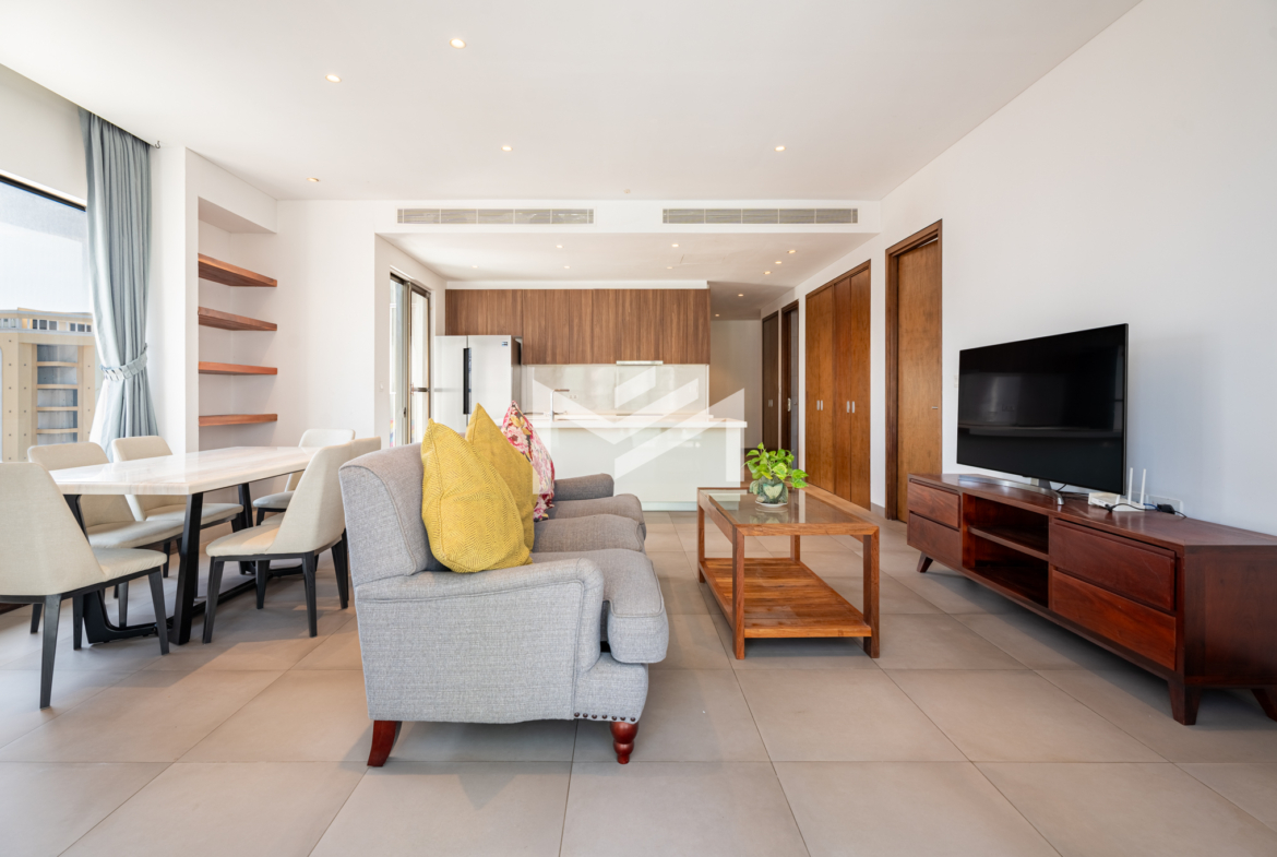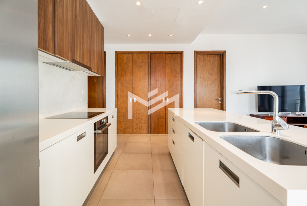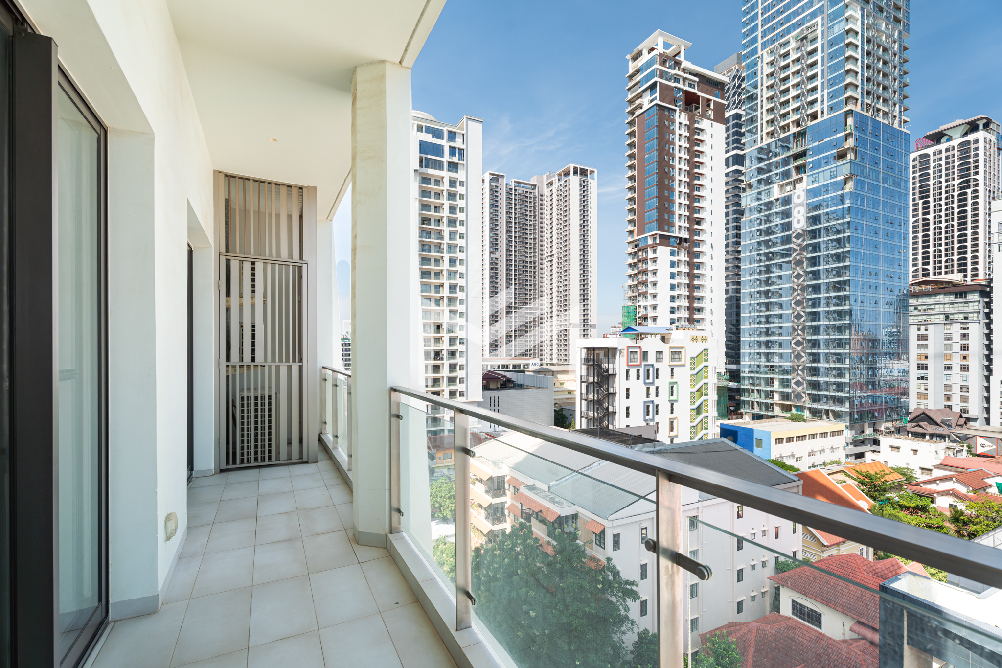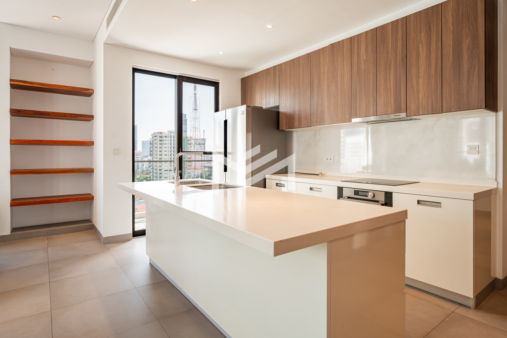 This corner unit in BKK1 offers a spacious living room and a large balcony facing north and east, allowing the home to enjoy full morning sun and natural brightness throughout the day. The kitchen is generous in size and comes with a built-in oven, a kitchen island and ample workspace, along with a dedicated storage area for cleaning equipment. The master bedroom features wooden flooring and a large closet space, while the second room is ideal for a single bed or can be used as a study. Located on a floor with full facilities, residents can enjoy the gym, swimming pool, kids’ area, and beautiful sunrise and sunset garden spaces on the 5th floor. The unit also includes one parking lot and sits in the heart of BKK1, an expat-friendly neighborhood known for its convenience, cafes, restaurants and urban lifestyle.