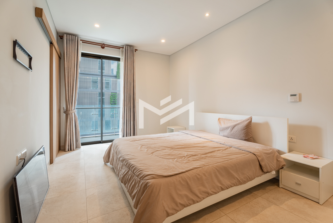 A well-designed one-bedroom unit featuring a glass-wall study that can easily be used as a home office. The layout is spacious and thoughtfully planned, offering comfortable living throughout. Fully furnished and complemented by a private balcony, the unit provides a bright and airy atmosphere. Located in a low-rise residential building with only 18 floors and a total of 87 units, ensuring privacy and a quiet living environment. One parking space is included. Residents enjoy rooftop facilities including a gym, swimming pool, and children’s playground. The building is pet-friendly, well managed, and situated in the southern part of BKK1, tucked away in a peaceful residential alley—ideal for comfortable, everyday living.