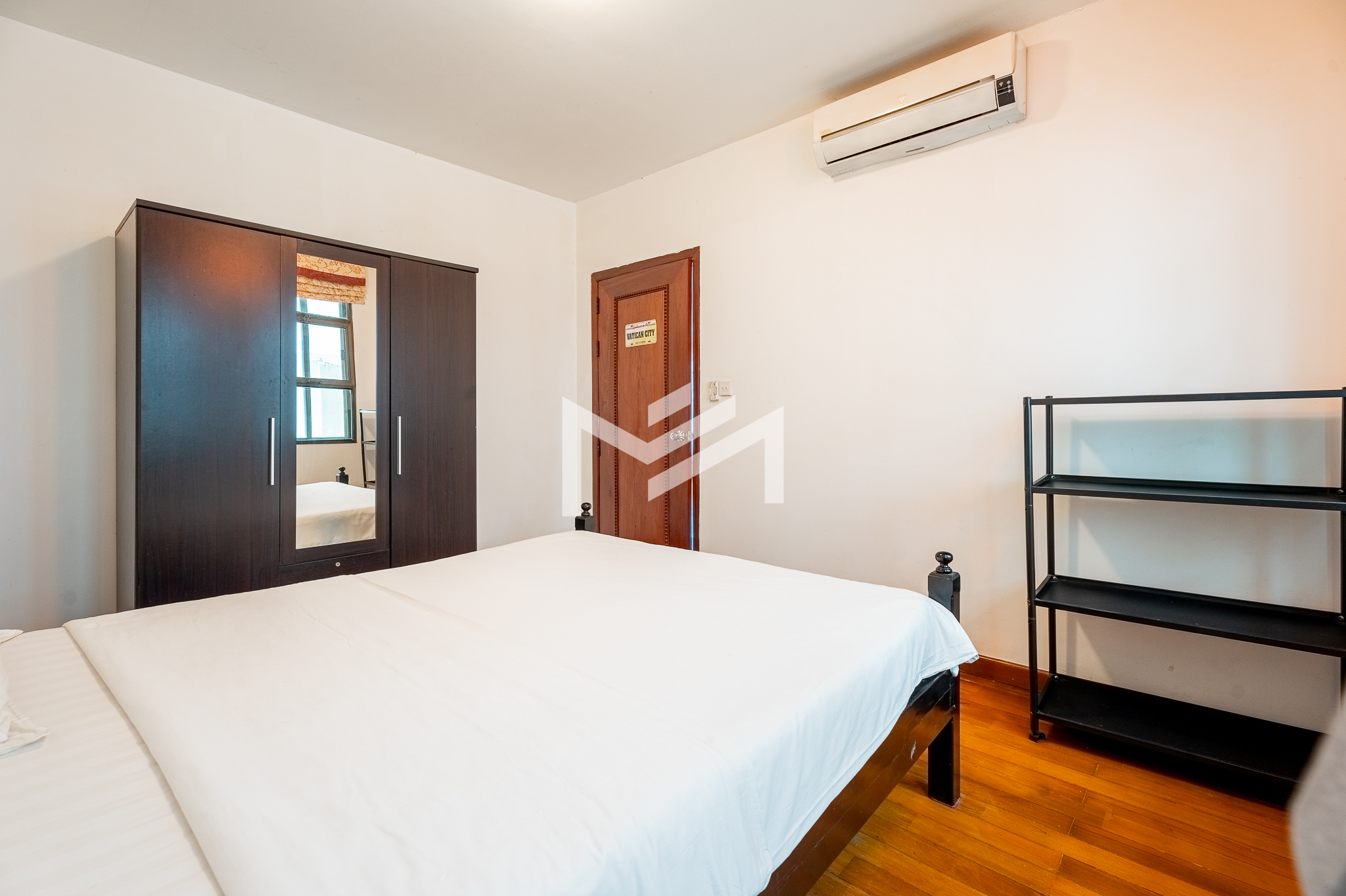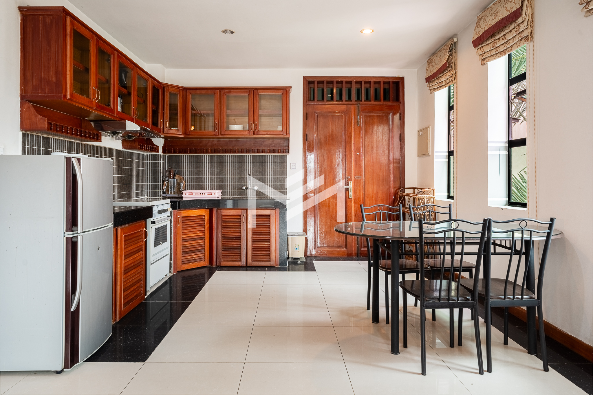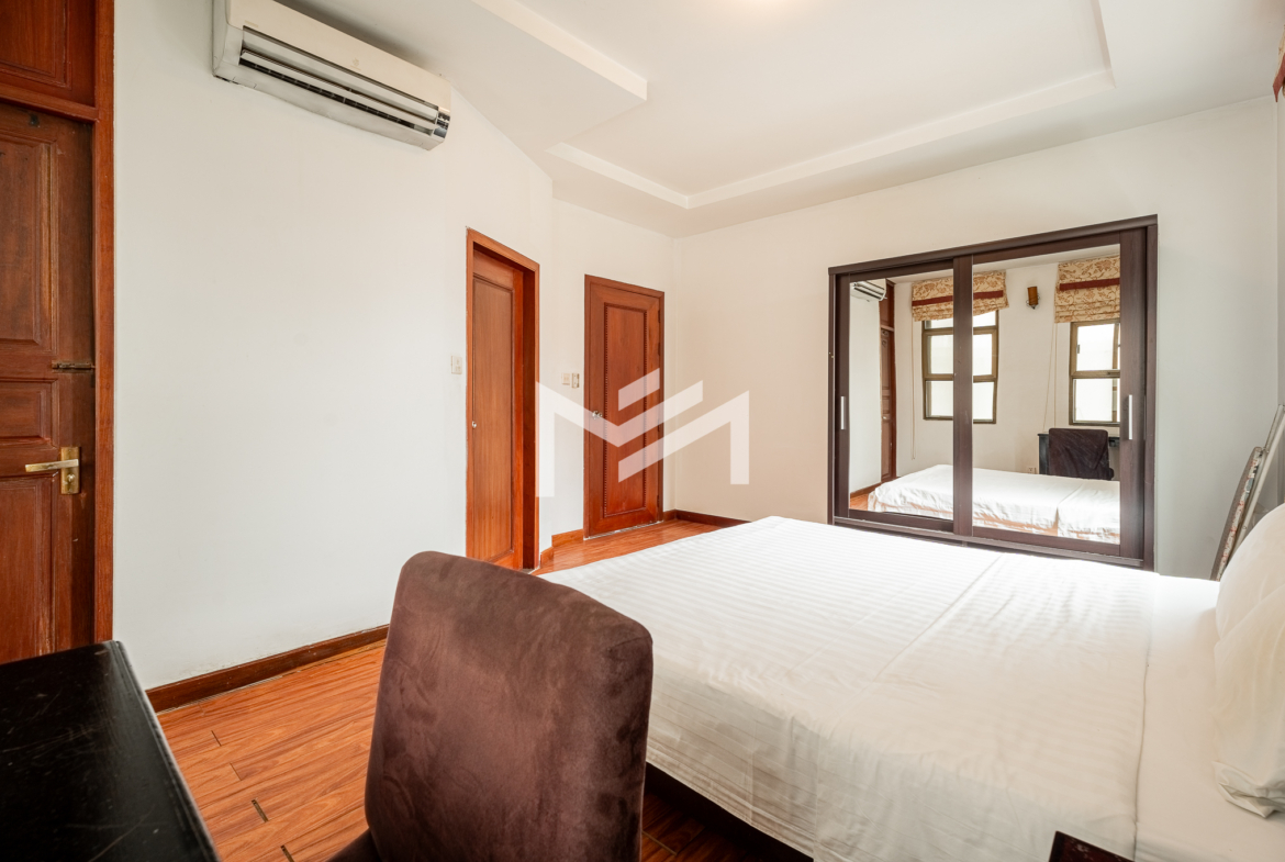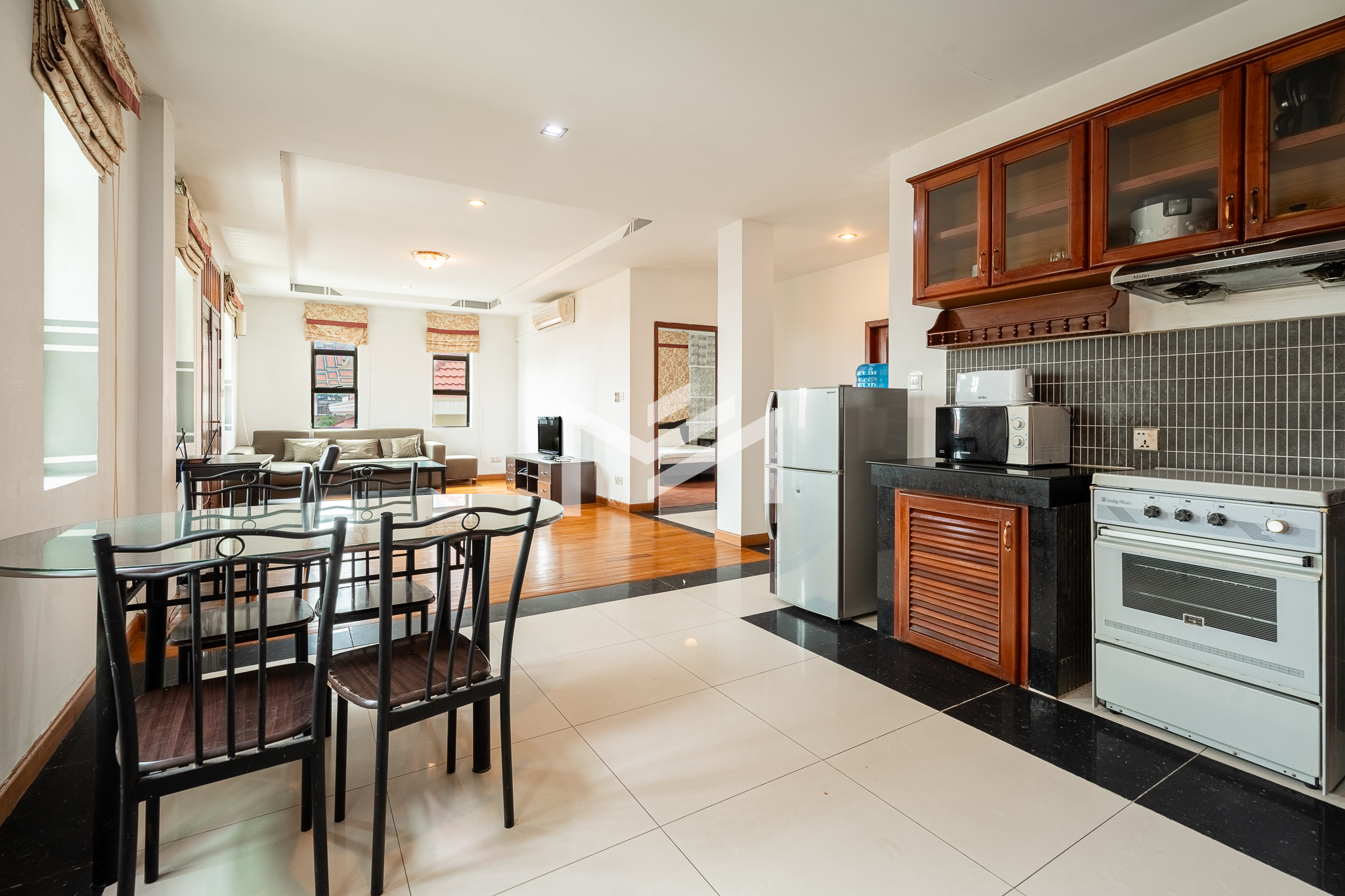 Elegant classical-design residence in a low-rise building, featuring warm wooden flooring and a fully equipped interior. The property offers regular cleaning service and access to gym and swimming pool, ensuring comfort and convenience. Located in the Wat Phnom area, north of Riverside, just steps from Lycée Français René Descartes, close to the French Embassy, and only 5 minutes to Riverside. Ideal for diplomats, expat families, and professionals seeking a refined living environment in the city center.