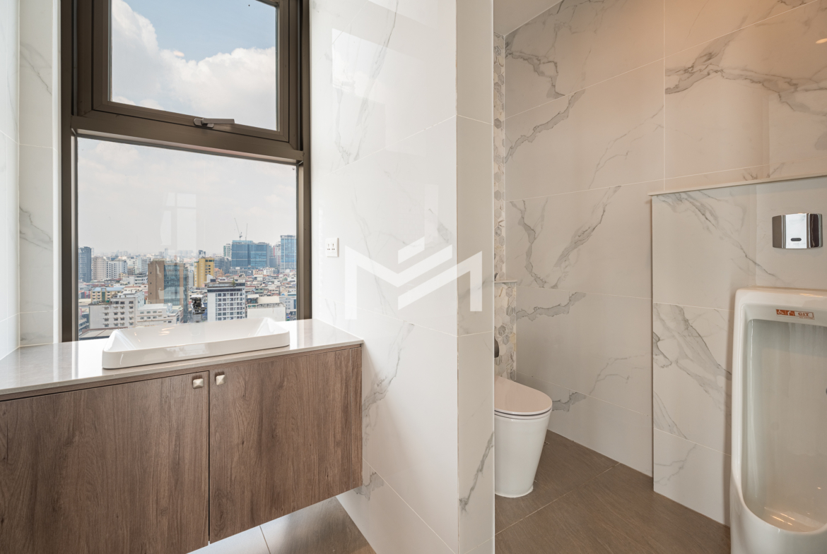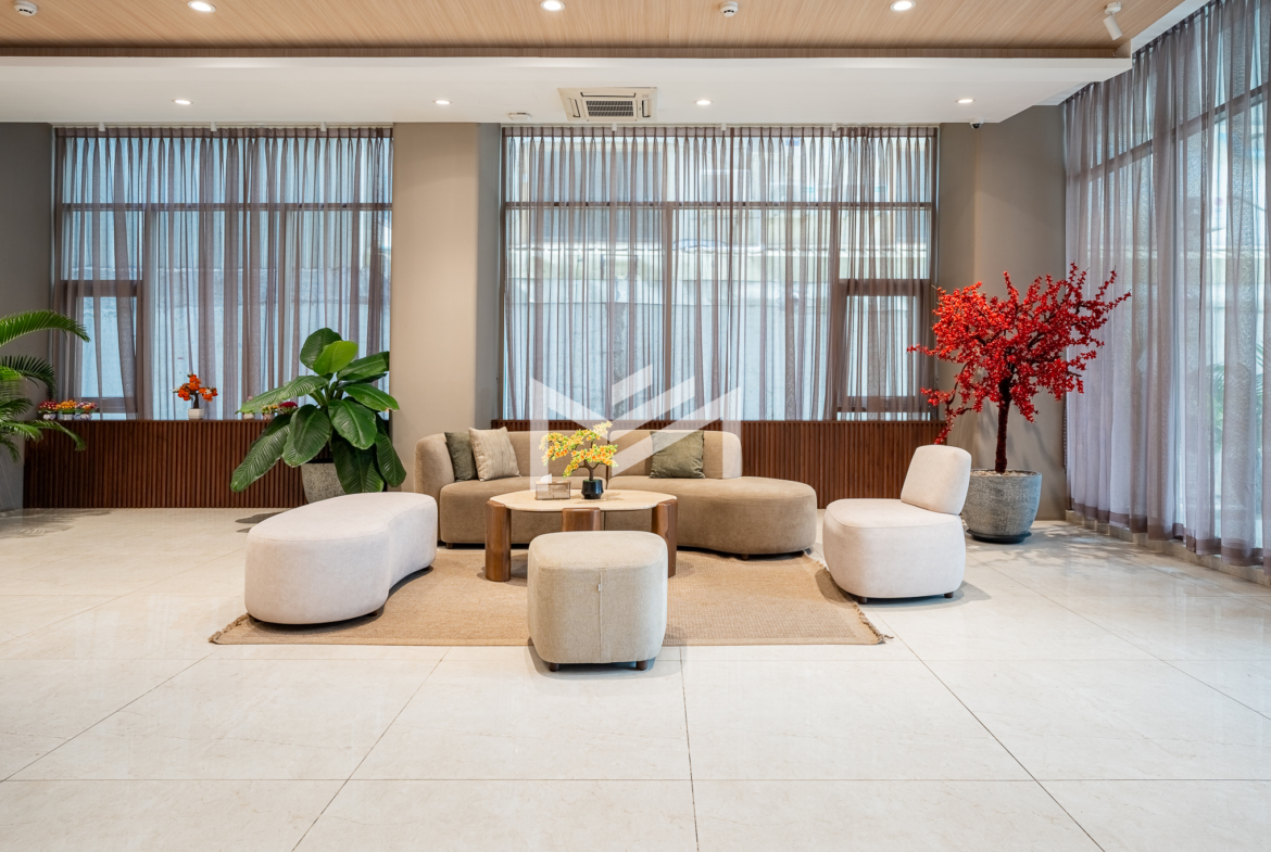 The only office space available within the serviced apartment building, offering exclusivity and a quiet professional setting. Located on a high floor, this corner unit enjoys excellent morning sunlight and an independent open city view, creating a bright and productive working environment. The office is semi furnished, fitted with central air conditioning, curtains, flooring, finished ceiling, pantry, and private toilet. It is ready for immediate setup—simply bring in office equipment and furniture to start operations. This space is most suitable for office use that does not require heavy daily guest traffic, such as a corporate office, showroom by appointment, yoga studio, or clinic. It is not suitable for retail or commercial businesses with high visitor flow. The building provides 24-hour security, elevator access, and includes one designated parking space for convenience.