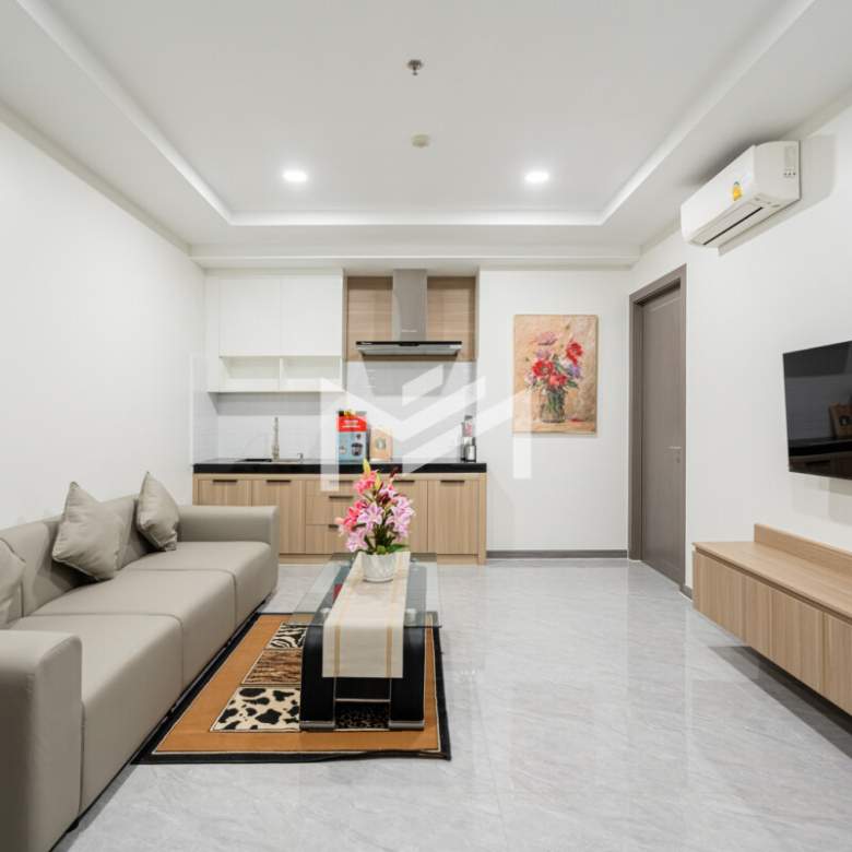 Brand new and fully equipped, this cozy unit features large glass windows that fill the space with natural light. Residents can enjoy rooftop facilities while living in the peaceful residential area of Chroy Changvar, just a short 7-minute drive from the CBD.