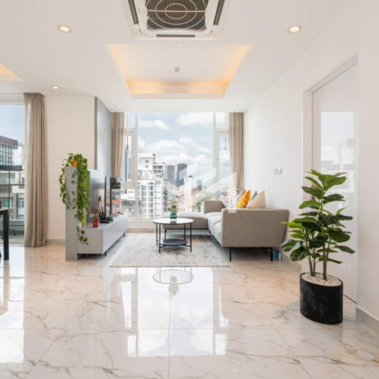 Originally a standard 2-bedroom unit, this apartment has been converted into a spacious and luxurious 1-bedroom layout. It features high-end furniture and a roomy design, offering a unique living experience that’s unmatched within the building. Located in the heart of BKK1, in a vibrant, expat-friendly neighborhood.