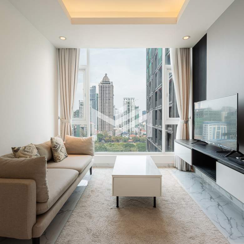 This stunning north-facing unit offers a comfortable and modern living space in the heart of the vibrant BKK1 district, a favorite among expats. Enjoy a blend of urban convenience and tranquility with beautiful green views of the football field from the second bedroom's balcony. The unit features a large wall window in the living room, allowing natural light to flood the space and creating a bright, airy atmosphere. The master bedroom includes an attached bathroom with a bathtub, while the second bedroom shares an external bathroom, offering convenience for guests. The L-shaped kitchen is both stylish and functional, complete with a hidden cabinet for the washing machine and extra storage space to keep your living area organized. Located in expat-friendly BKK1, residents enjoy easy access to a wide range of cafés, restaurants, shops, international schools, and essential services, making this an ideal home for professionals, couples, or small families.