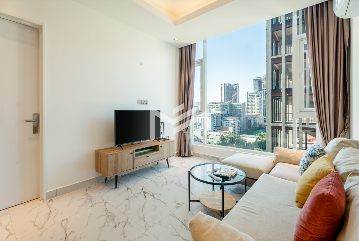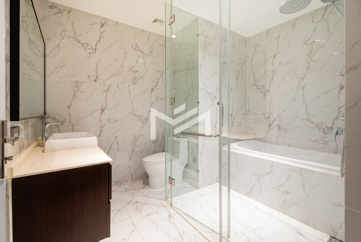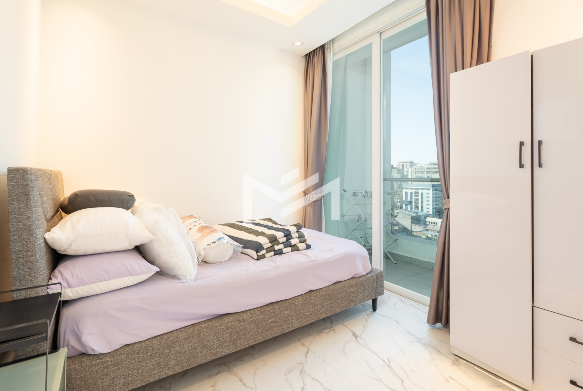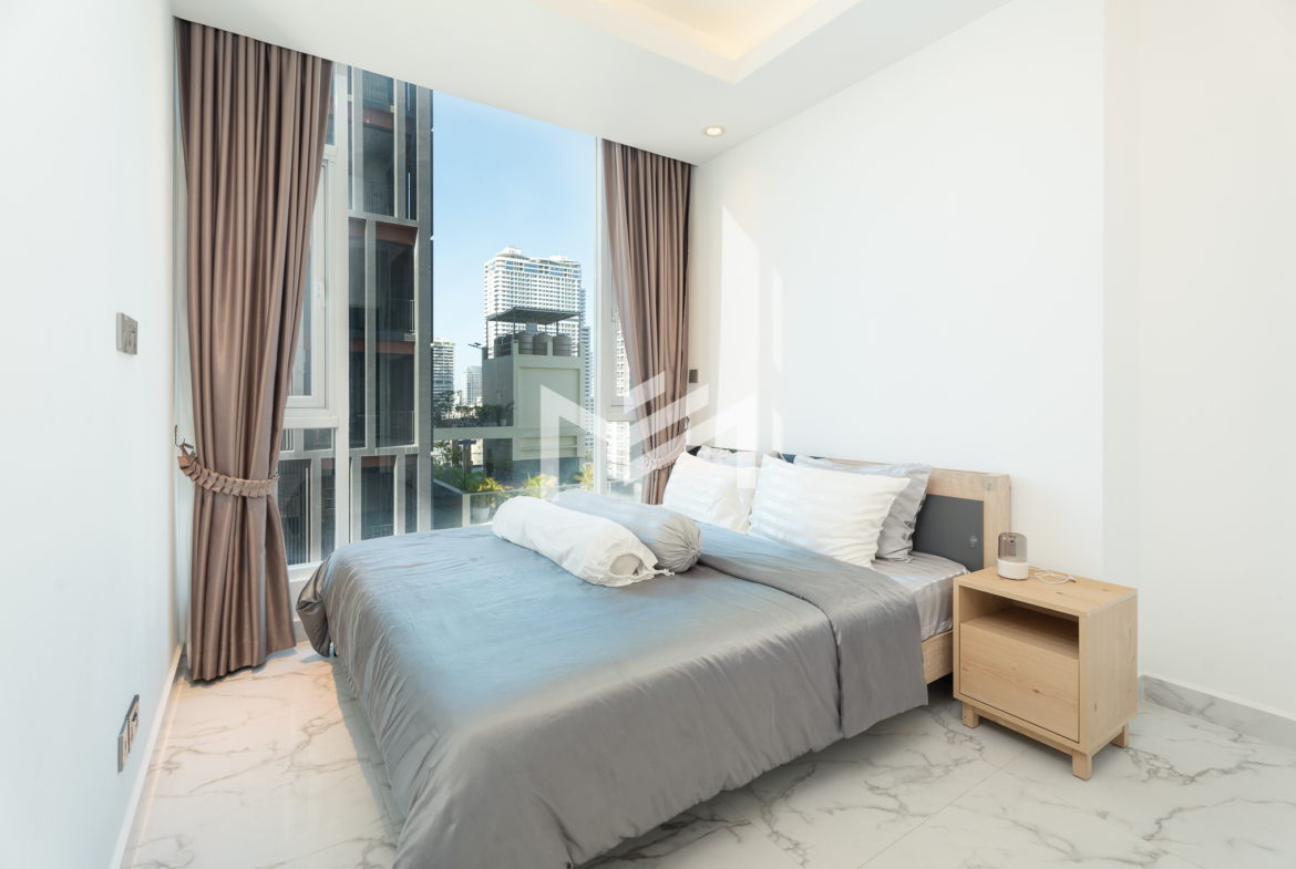 Furnished, cozy 2-bedroom unit with north-facing orientation, featuring an open living room seamlessly connected to an open kitchen. The master bedroom comes with an en-suite bathroom and bathtub, while the second bedroom enjoys its own private balcony. Residents can enjoy premium amenities, including a luxury lobby with café, convenience mart, and children’s playground. The building also offers a rooftop infinity pool and sky bar exclusively for residents, as well as an optional indoor swimming pool on Level 41, children’s pool, and a fully equipped gym. The property is professionally managed by a Japanese management company, ensuring high standards of maintenance and service. Located in the expat-friendly BKK1 area, with cafés, restaurants, supermarkets, and daily conveniences all within walking distance—ideal for comfortable city living.