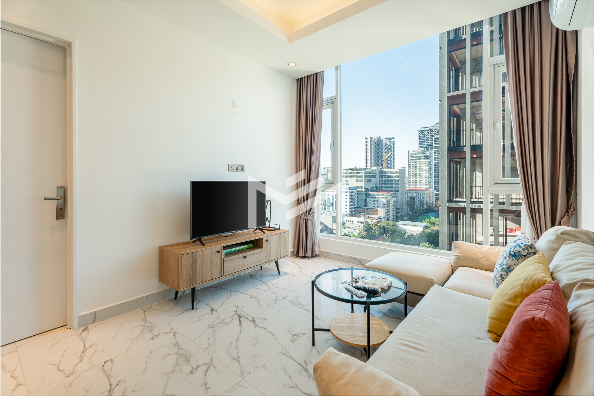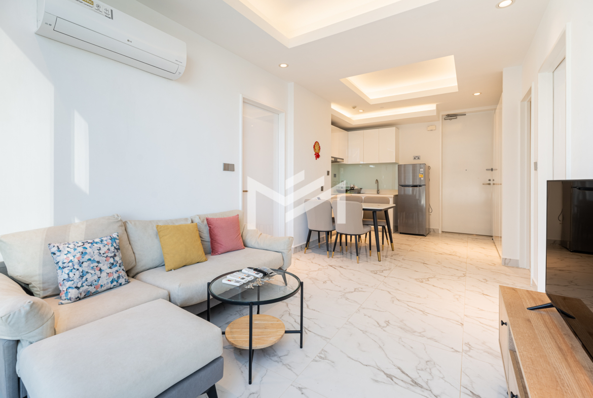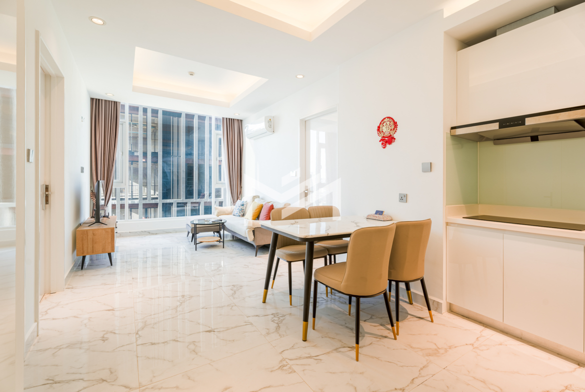 Furnished, cozy 2-bedroom unit with north-facing orientation, featuring an open living room seamlessly connected to an open kitchen. The master bedroom comes with an en-suite bathroom and bathtub, while the second bedroom enjoys its own private balcony. Residents can enjoy premium amenities, including a luxury lobby with café, convenience mart, and children’s playground. The building also offers a rooftop infinity pool and sky bar exclusively for residents, as well as an optional indoor swimming pool on Level 41, children’s pool, and a fully equipped gym. The property is professionally managed by a Japanese management company, ensuring high standards of maintenance and service. Located in the expat-friendly BKK1 area, with cafés, restaurants, supermarkets, and daily conveniences all within walking distance—ideal for comfortable city living.