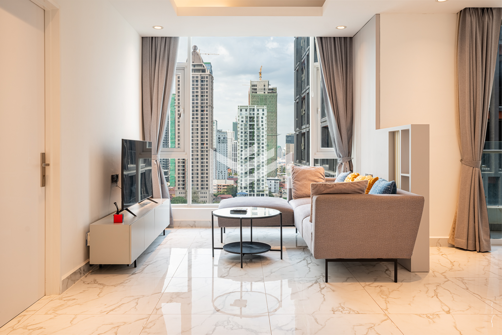 Originally a standard 2-bedroom unit, this apartment has been converted into a spacious and luxurious 1-bedroom layout. It features high-end furniture and a roomy design, offering a unique living experience that’s unmatched within the building. The residence is professionally managed by a Japanese management company, ensuring high standards of maintenance and service. Residents enjoy a full range of premium amenities, including a ground-floor information desk, a luxury lobby on the 24th floor with café, convenience mart, children’s playground, and designated smoking area, as well as an indoor swimming pool and fully equipped gym on the 41st floor. An infinity pool and sky bar on the rooftop provide exceptional city views. Located in the expat-friendly BKK1 area, with cafés, restaurants, supermarkets, and daily conveniences all within walking distance—ideal for comfortable city living.