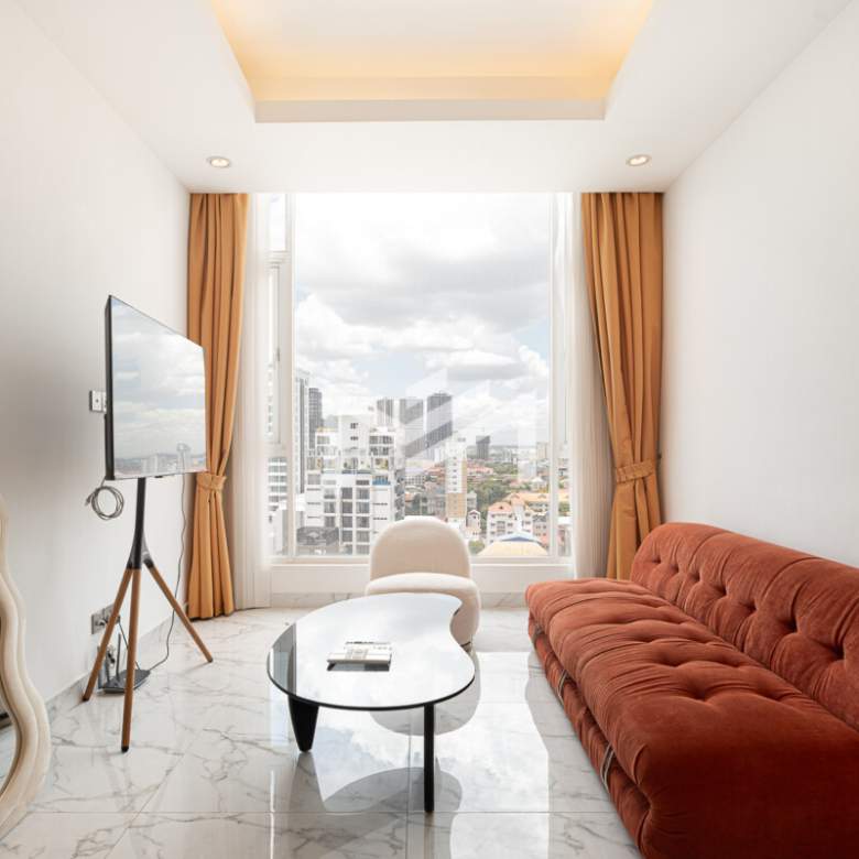 This charming 2-bedroom condo is located in the heart of BKK1, offering a warm and comfortable living space ideal for a single professional, a couple, or a small family. The unit is south-facing, allowing for plenty of natural light and unblocked views that give a true sense of openness.