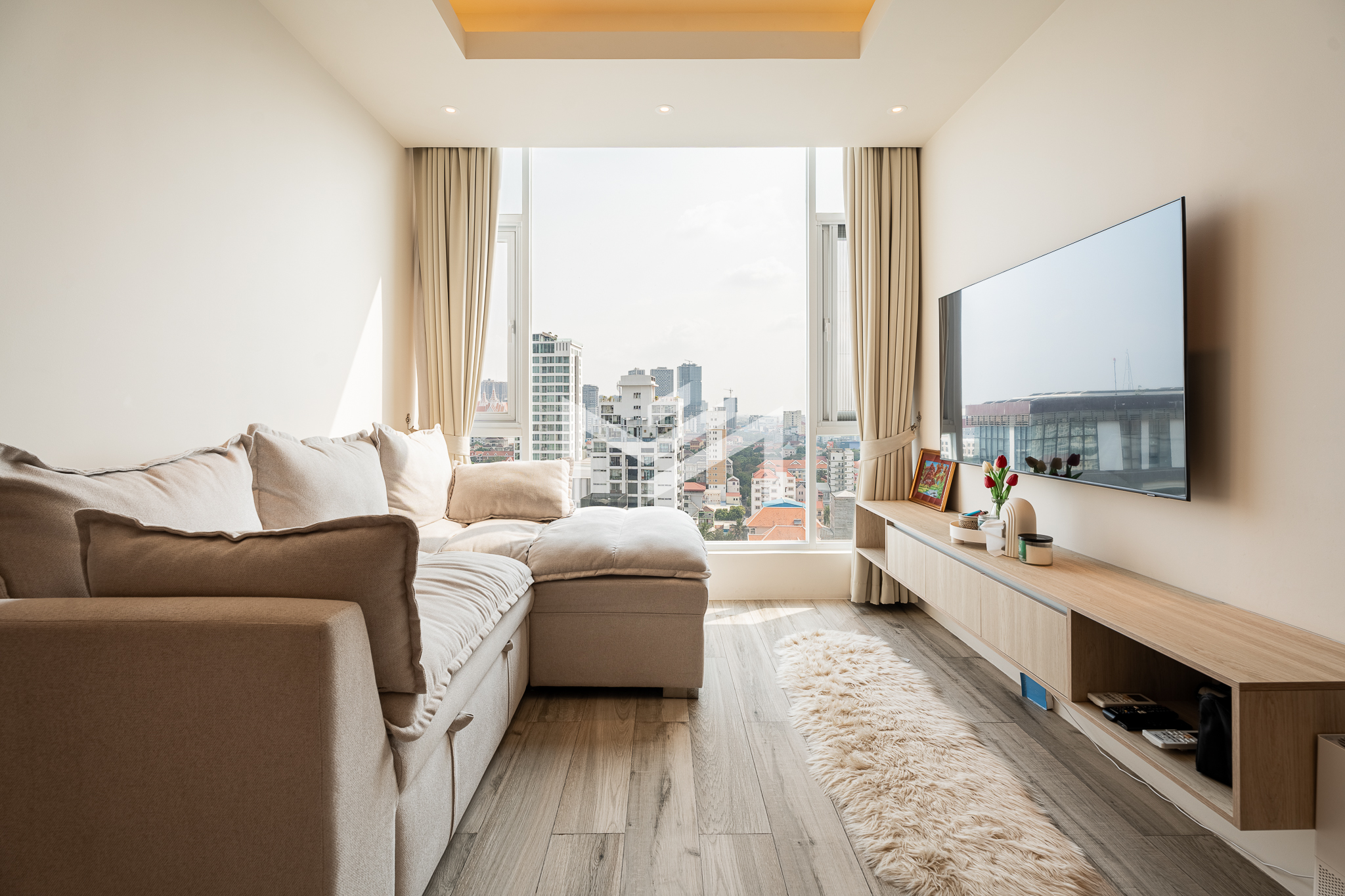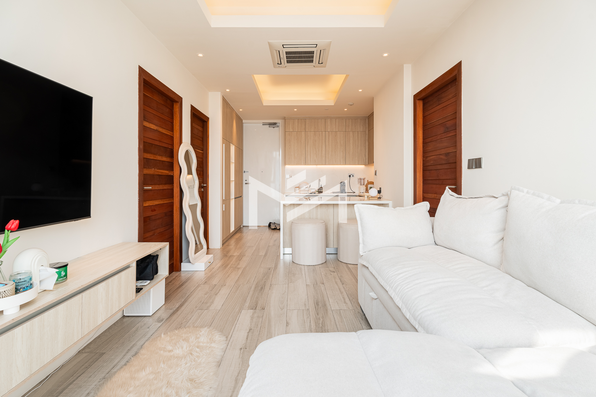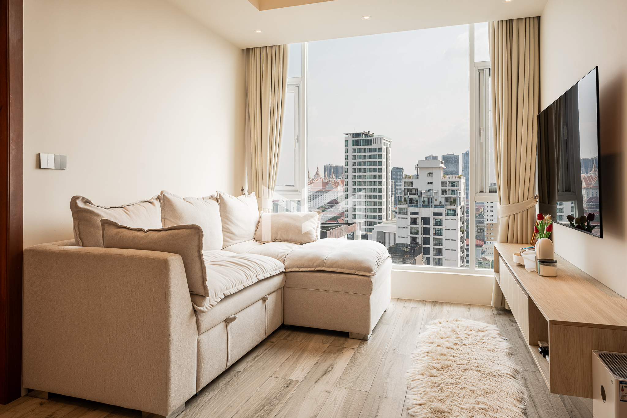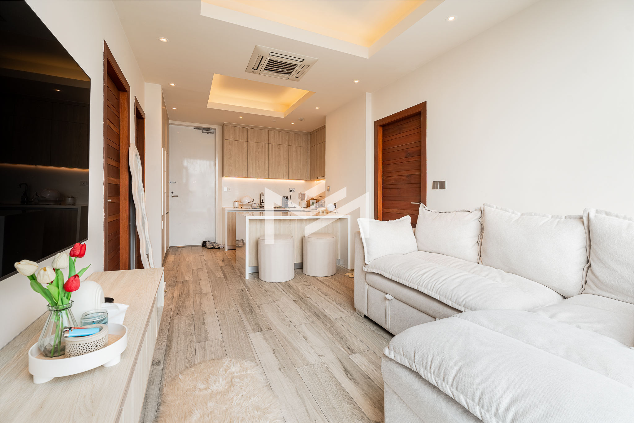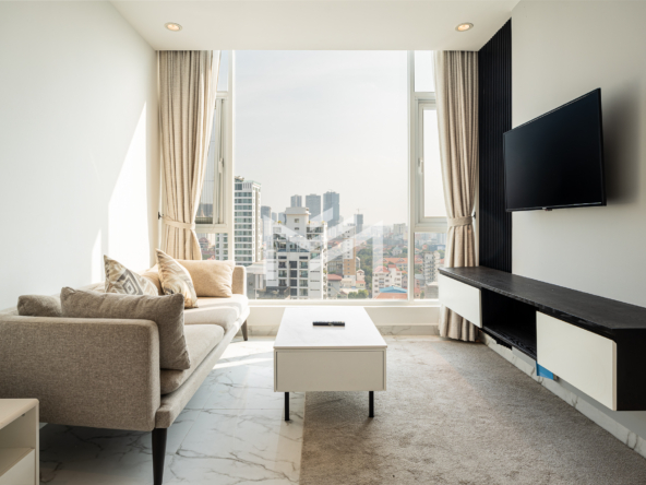 Fully renovated with wooden flooring, this unit offers a fresh, modern, and cozy atmosphere—distinctive and thoughtfully upgraded compared to other identical units in the building. Residents enjoy a full range of premium amenities, including a ground-floor information desk and a luxury lobby on the 24th floor featuring a café, convenience mart, children’s playground, and a designated smoking area. The 41st floor offers an indoor swimming pool and a fully equipped gym, while the rooftop infinity pool and sky bar provide stunning panoramic city views. Ideally located in the expat-friendly BKK1 area, the property is surrounded by cafés, restaurants, supermarkets, and daily conveniences all within walking distance—perfect for comfortable and convenient city living.