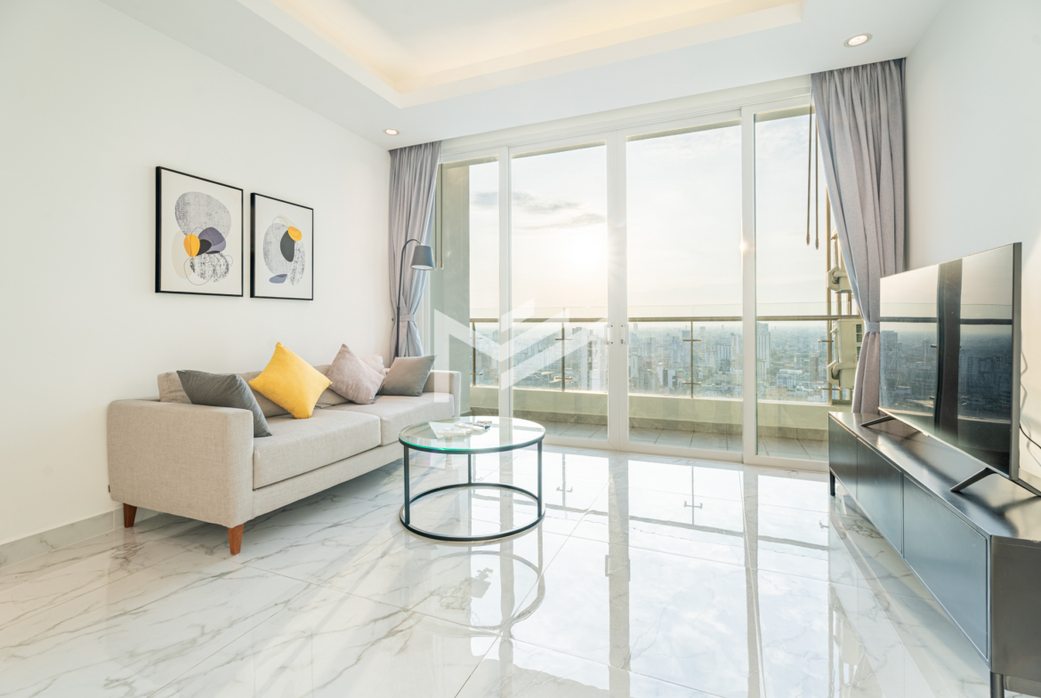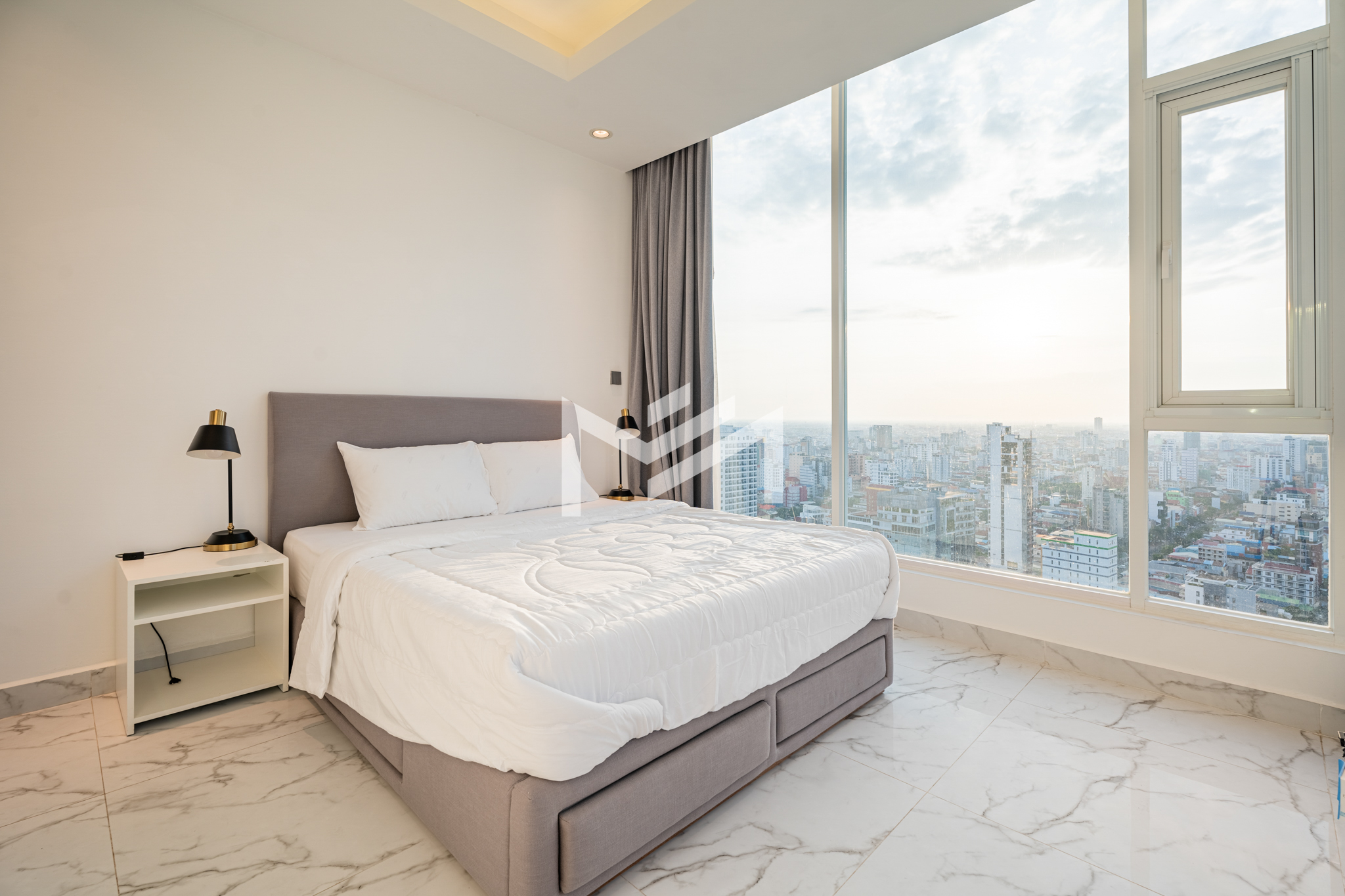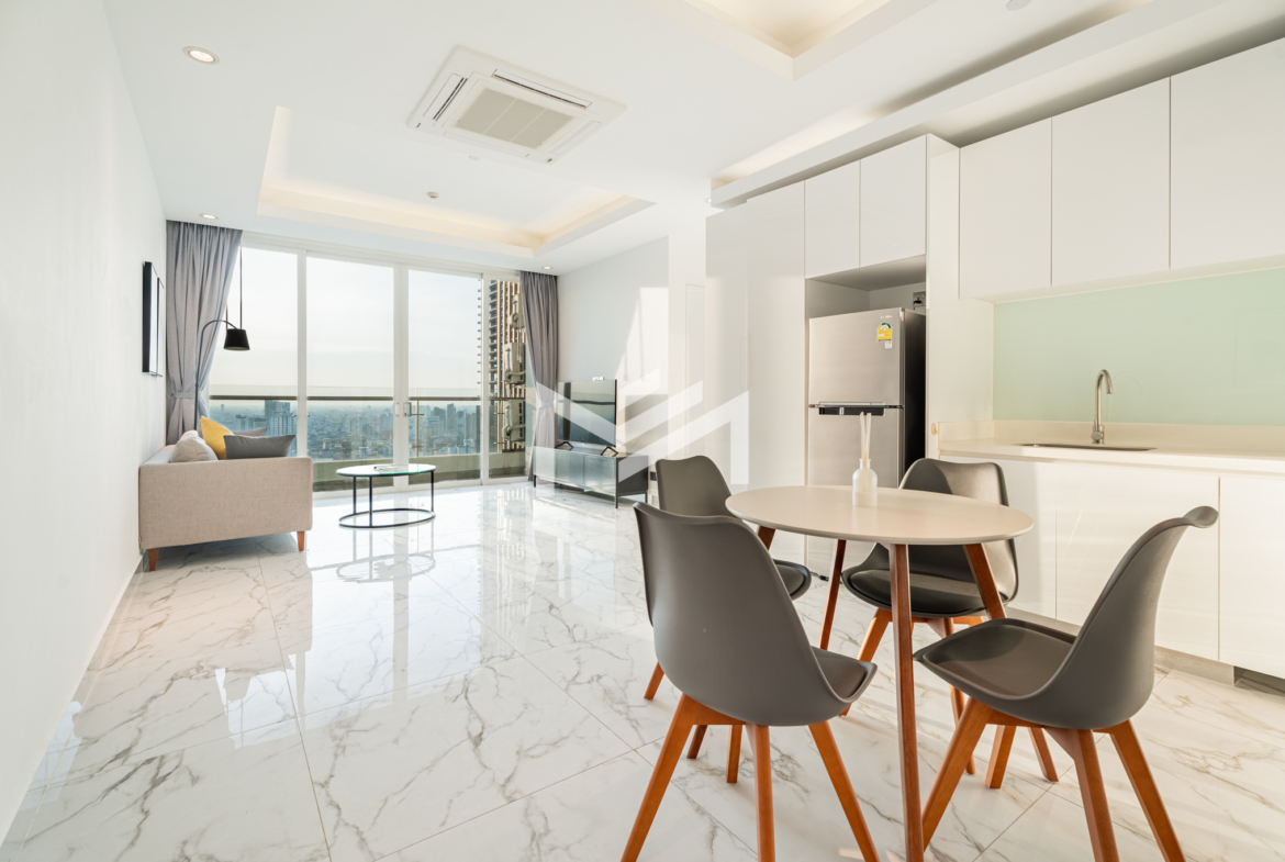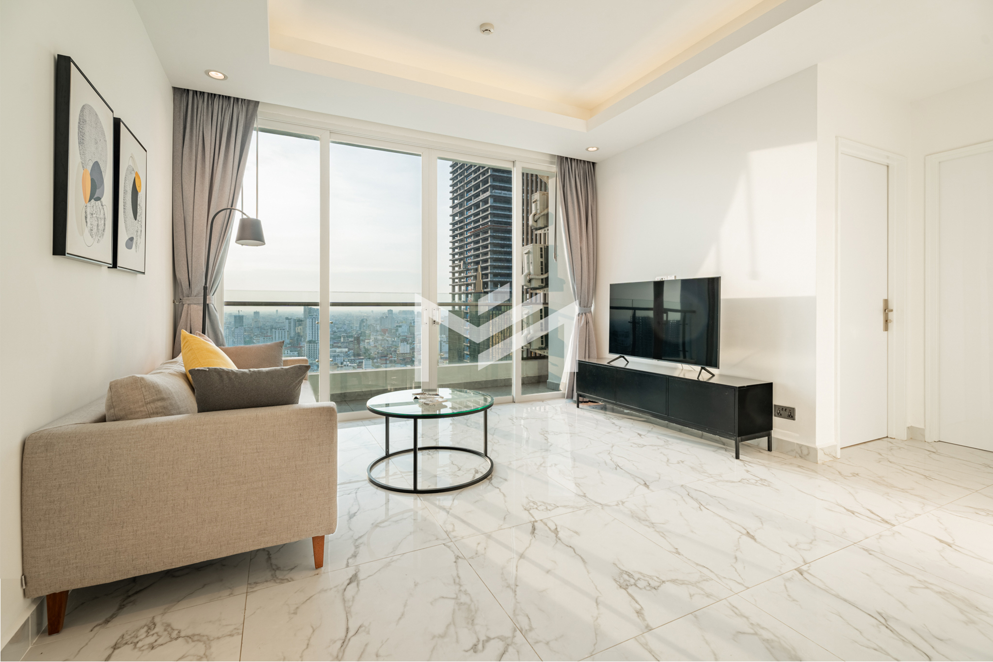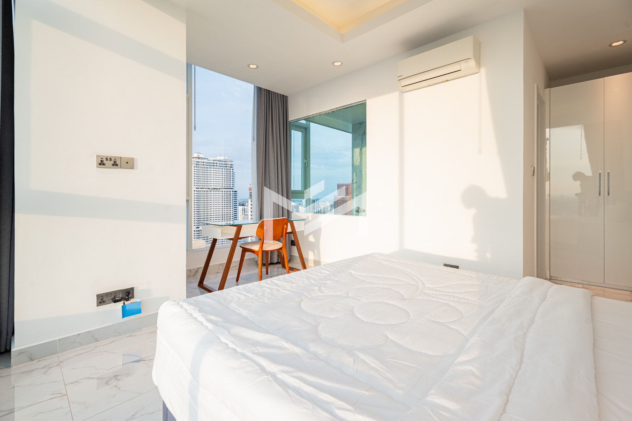 Corner unit facing North and West, filled with natural light and excellent air flow. Enjoy unobstructed views and an open-space living room that extends to a private balcony. The spacious master bedroom comes with an ensuite bathroom and a large closet area, while the second bedroom has access to a shared outside bathroom. Located in a well-managed, expat-friendly building in BKK1, offering a range of facilities and convenient access to restaurants, cafés, supermarkets, and all daily necessities — everything within walking distance.