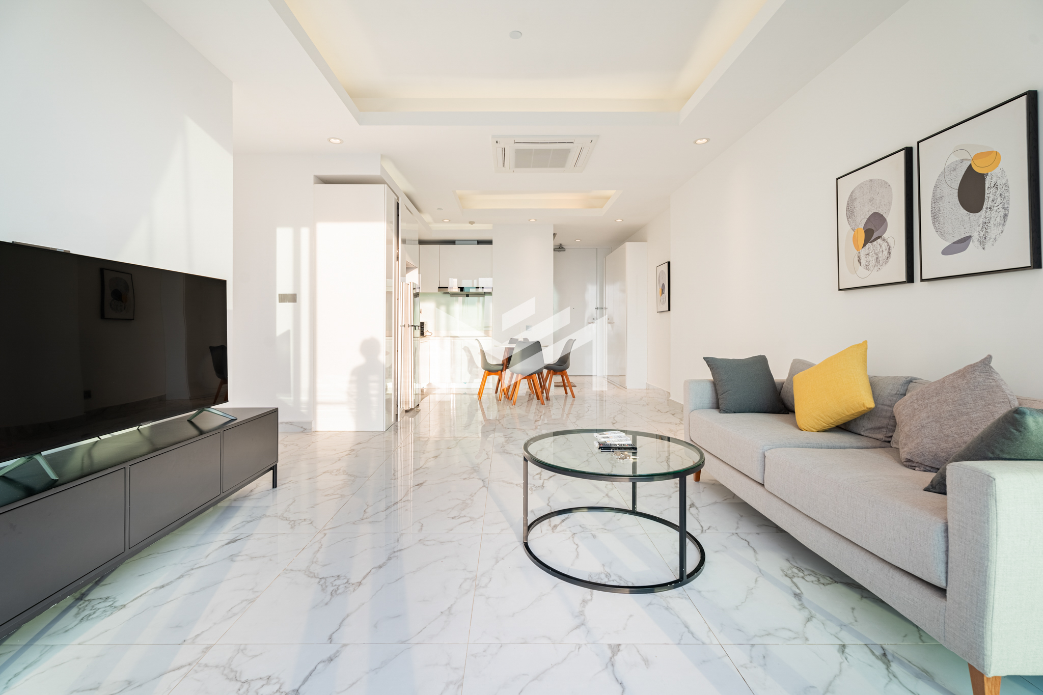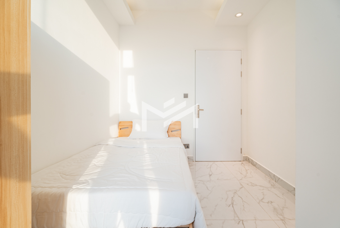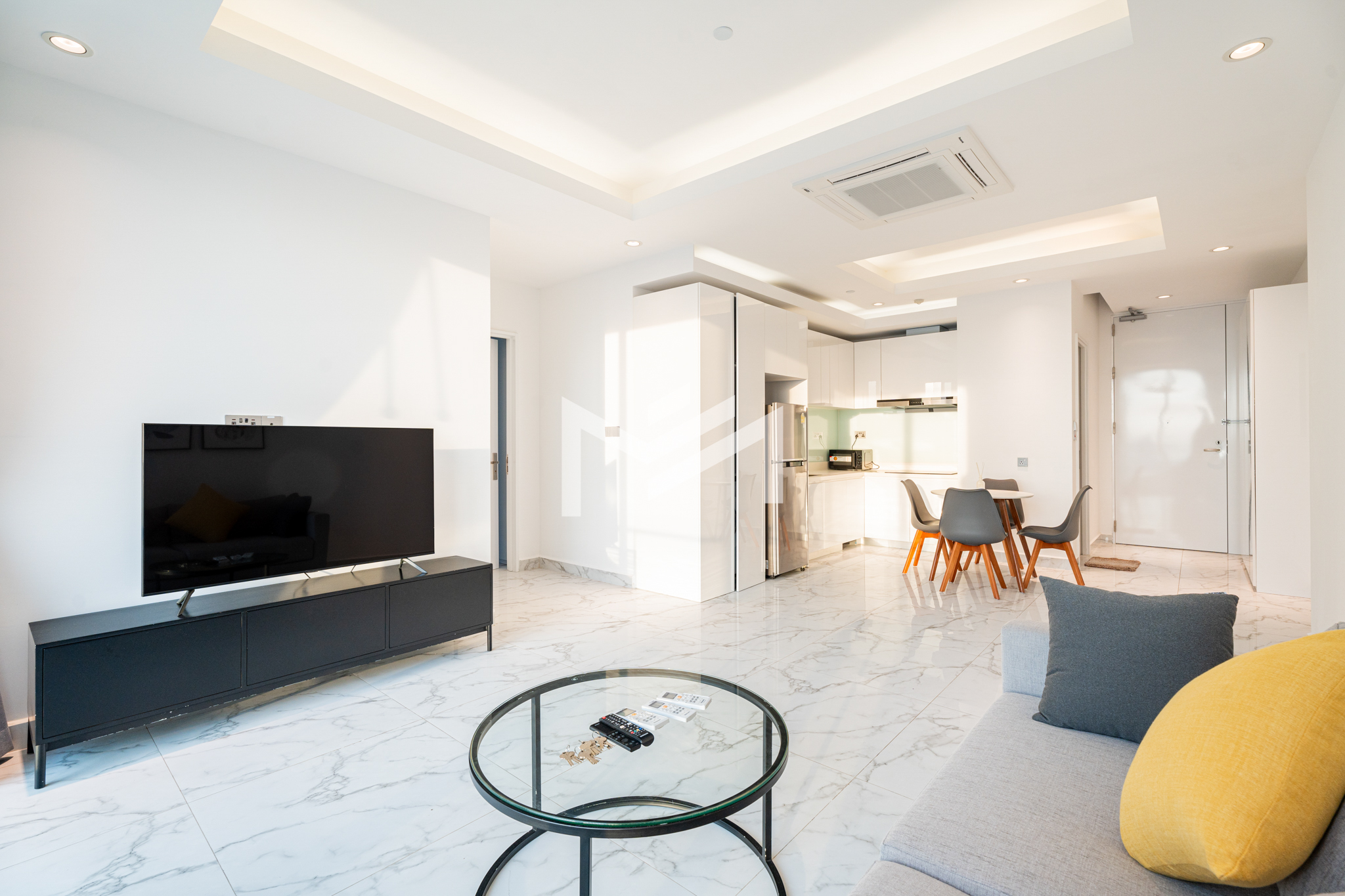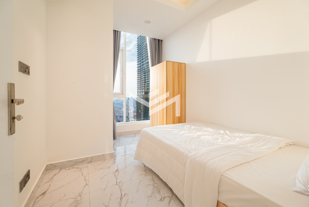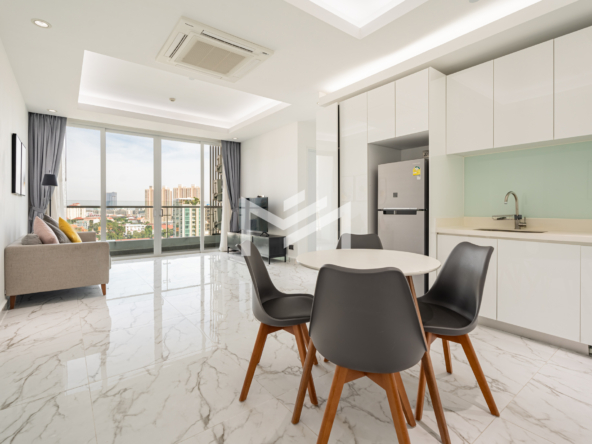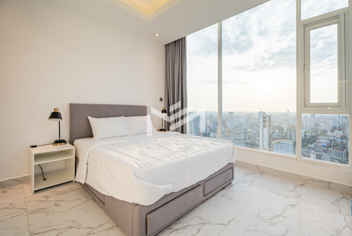 Corner unit facing North and West, filled with natural light and excellent air flow. Enjoy unobstructed views and an open-space living room that extends to a private balcony. The spacious master bedroom comes with an ensuite bathroom and a large closet area, while the second bedroom has access to a shared outside bathroom. Located in a well-managed, expat-friendly building in BKK1, offering a range of facilities and convenient access to restaurants, cafés, supermarkets, and all daily necessities — everything within walking distance.