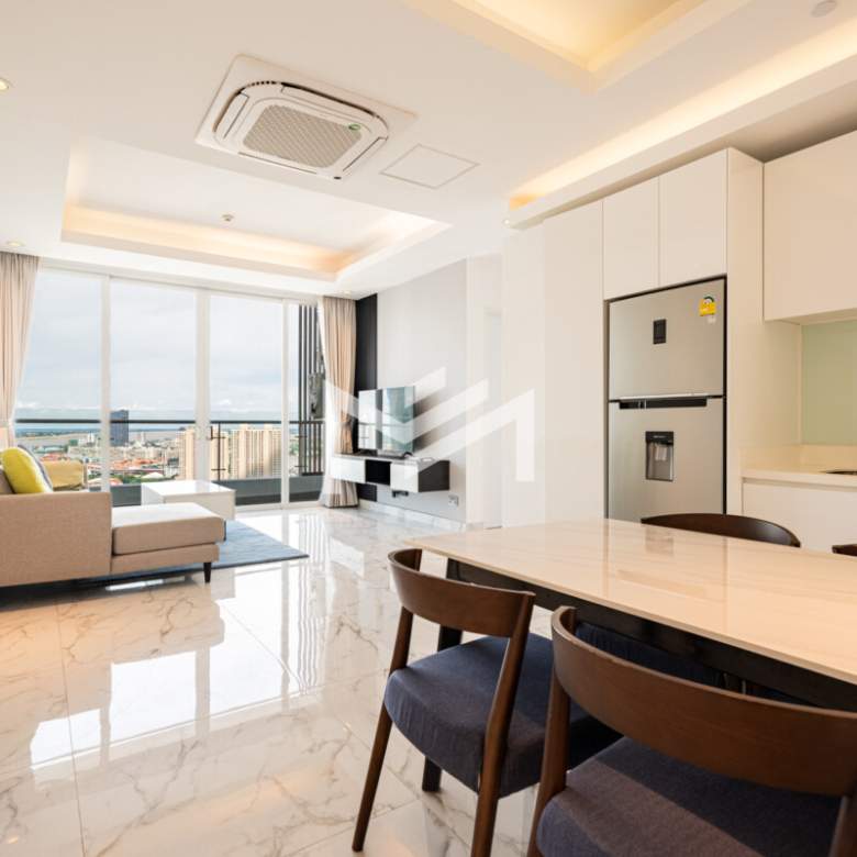 Southeast-facing corner unit on a high floor with stunning Mekong and Bassac River views. Enjoy the morning sun, natural brightness, and excellent airflow. The living room opens to a good-sized balcony, creating a welcoming open-space feel.