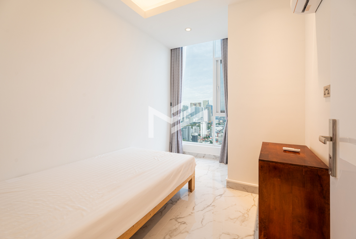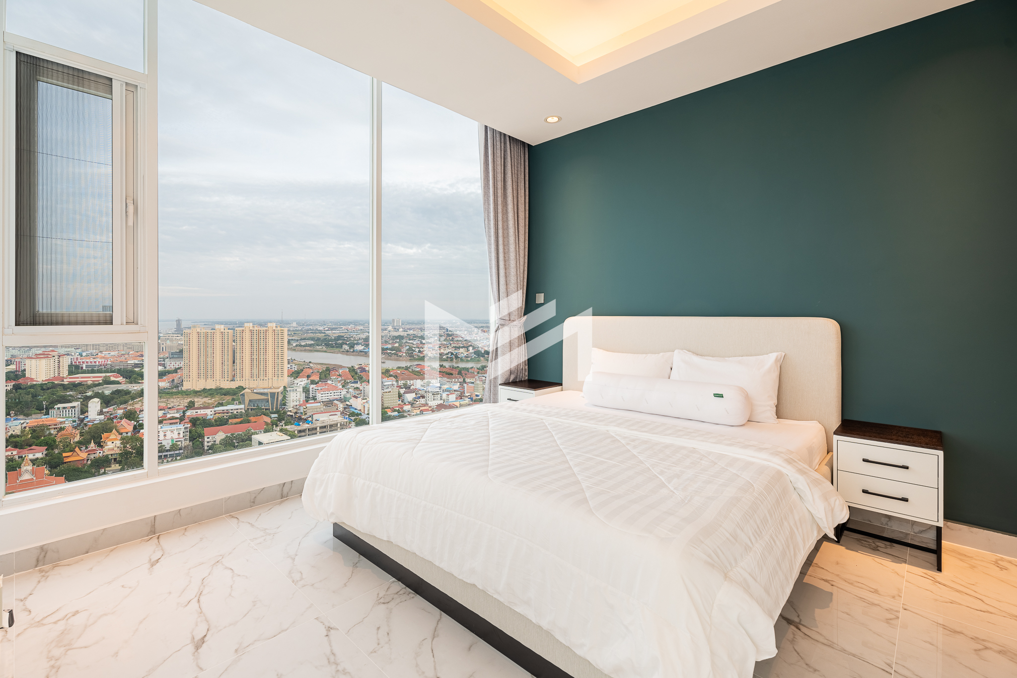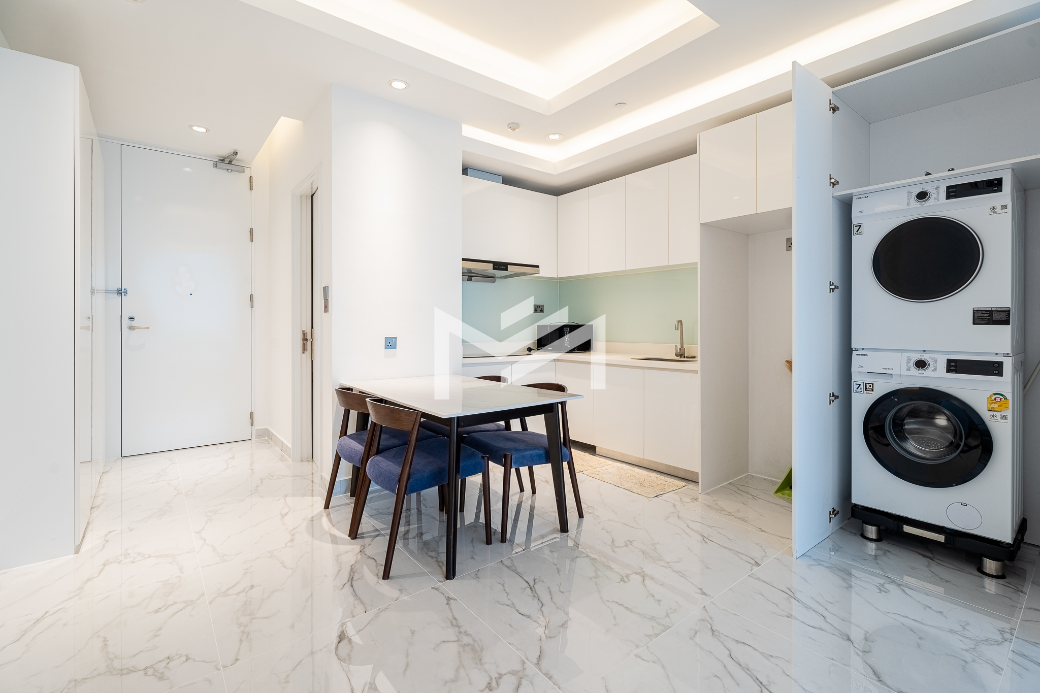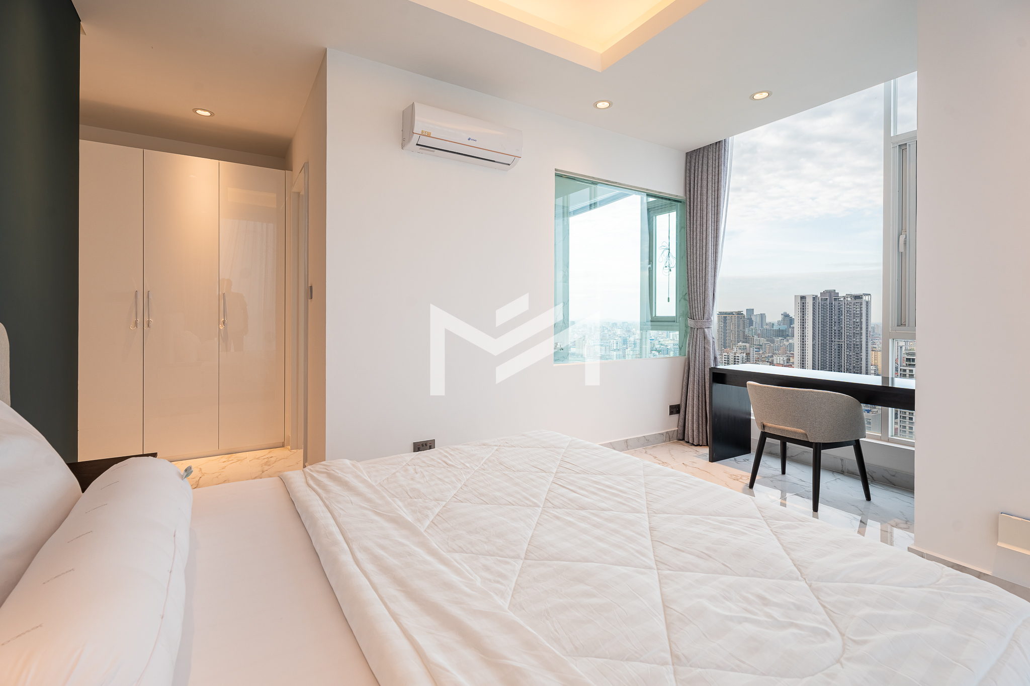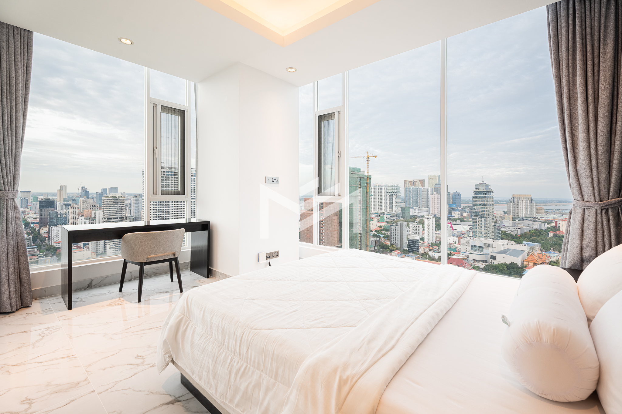 North-east facing high-floor unit with excellent open views, widely regarded as the most desirable orientation for enjoying natural light while minimizing heat exposure. The unit is fully furnished and features a spacious living room opening onto a private balcony, ideal for relaxing and entertaining. The large master bedroom offers a generous closet and an en-suite bathroom with a bathtub and city views. The second room is flexible—perfect as a guest bedroom, home office, or study—with good built-in storage. The residence is professionally managed by a Japanese management company, ensuring high standards of maintenance and service. Residents enjoy a full range of premium amenities, including a ground-floor information desk, a luxury lobby on the 24th floor with café, convenience mart, children’s playground, and designated smoking area, as well as an indoor swimming pool and fully equipped gym on the 41st floor. An infinity pool and sky bar on the rooftop provide exceptional city views. Located in the expat-friendly BKK1 area, with cafés, restaurants, supermarkets, and daily conveniences all within walking distance—ideal for comfortable city living.