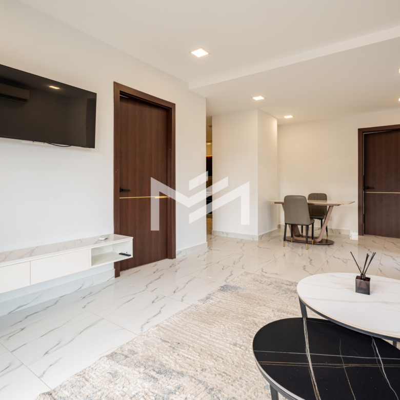 Modern design with an open living space and balcony. The kitchen comes fully equipped with a built-in oven. Large windows throughout the unit bring in plenty of natural light. Residents can enjoy access to a rooftop swimming pool, 24-hour security, and cleaning service. Located just south of BKK1 (about a 5-minute drive), this apartment offers great value — an ideal choice for singles or small families seeking a comfortable, modern home at a more economical price compared to the main expat area.