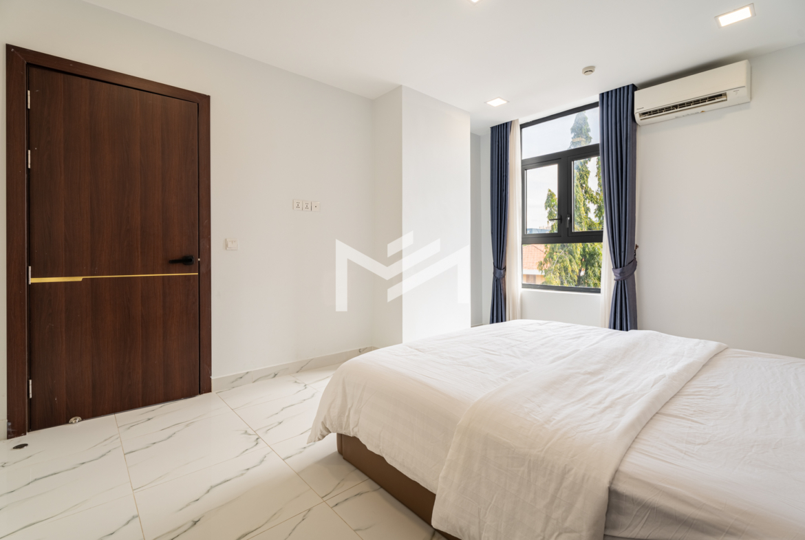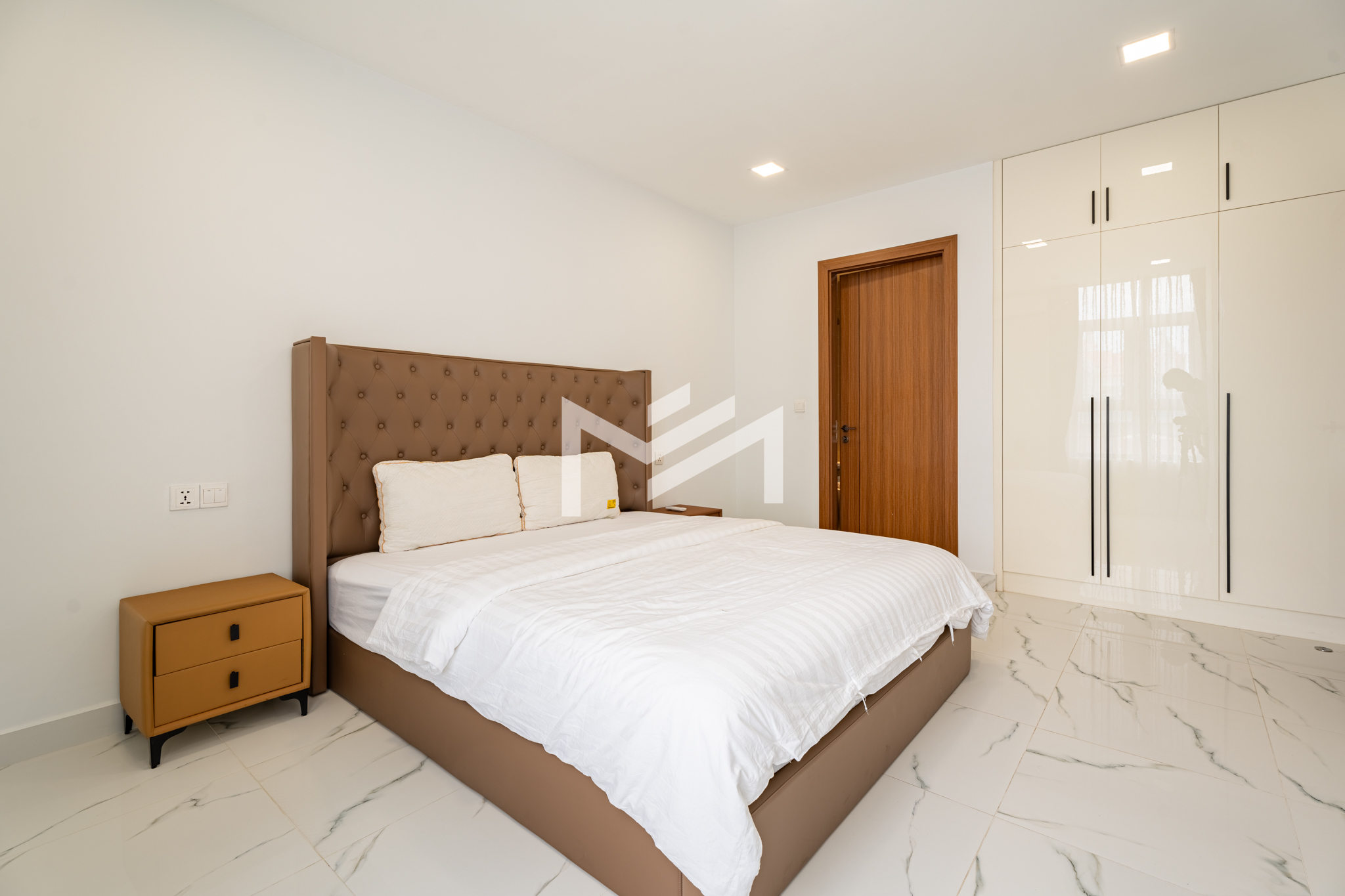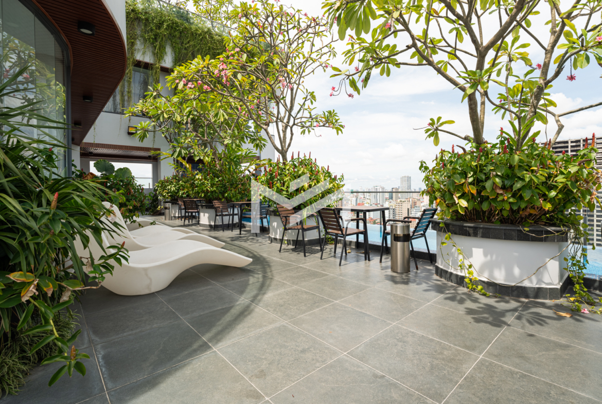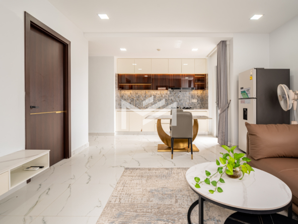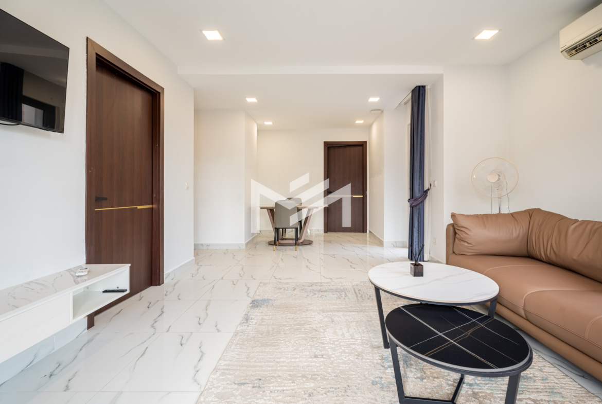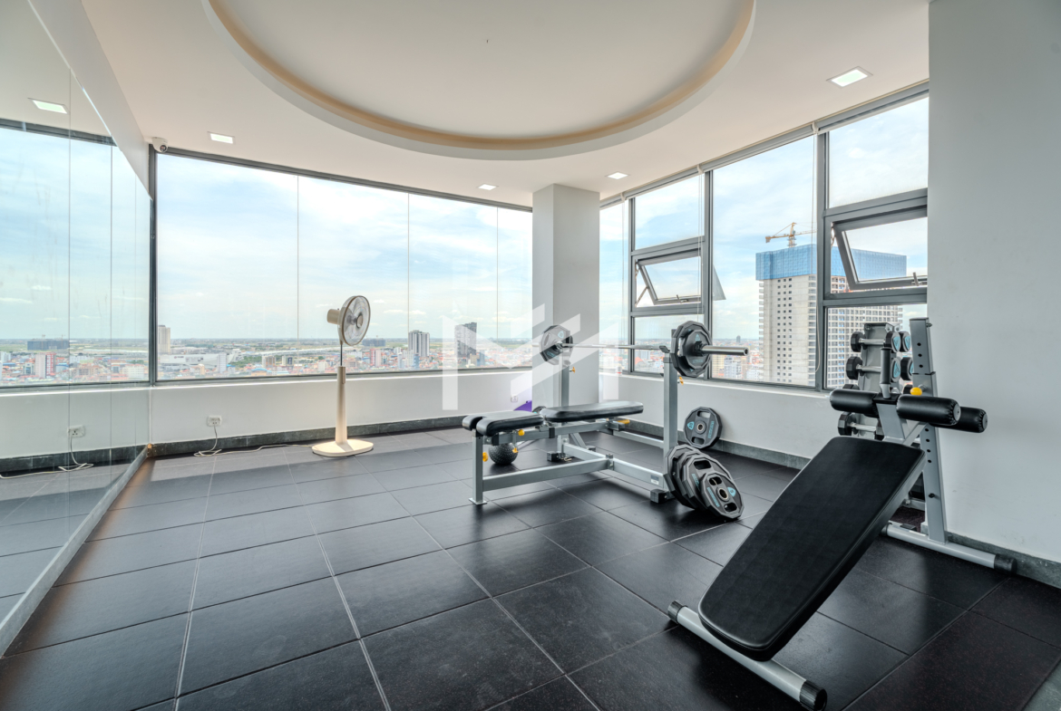 Modern design with an open living space and balcony. The kitchen comes fully equipped with a built-in oven. Large windows throughout the unit bring in plenty of natural light. Residents can enjoy access to a rooftop swimming pool, 24-hour security, and cleaning service. Located just south of BKK1 (about a 5-minute drive), this apartment offers great value — an ideal choice for singles or small families seeking a comfortable, modern home at a more economical price compared to the main expat area.